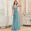 Vestido de Noche de Banquete para Anfitrión con Cuello en V de Manga Larga y Falda de Cola de Pez con Lentejuelas Vestido Largo Femenino Vestido de Dama de Honor Vestido para Brindis