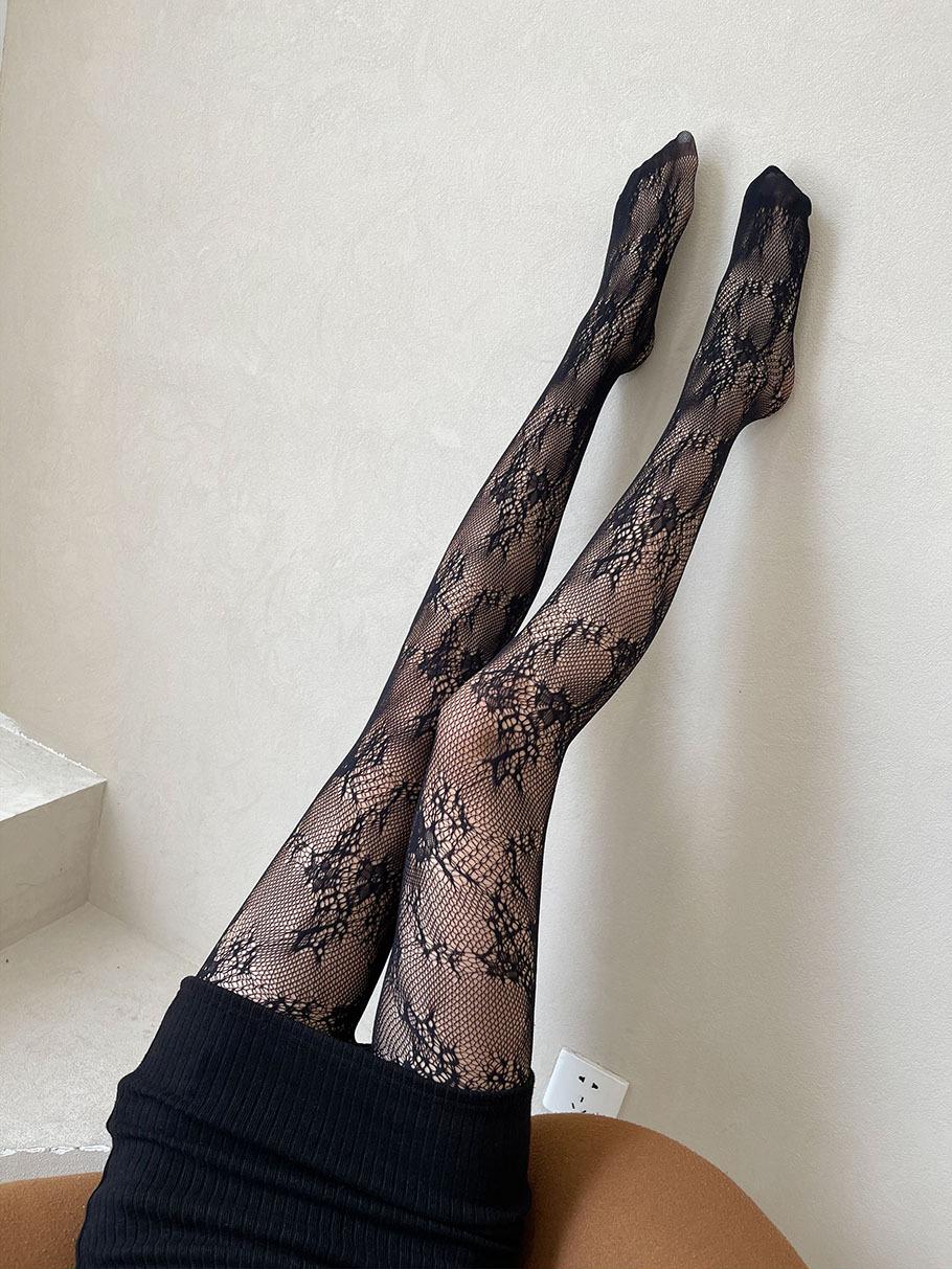 Medias de rejilla blancas con encaje de mariposas negras, nuevas, de Internet, con estampado retro de celebridades, pantimedias blancas, pantimedias de fondo.