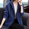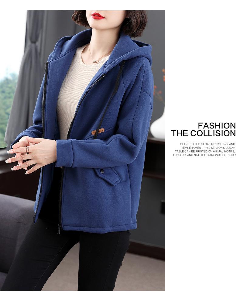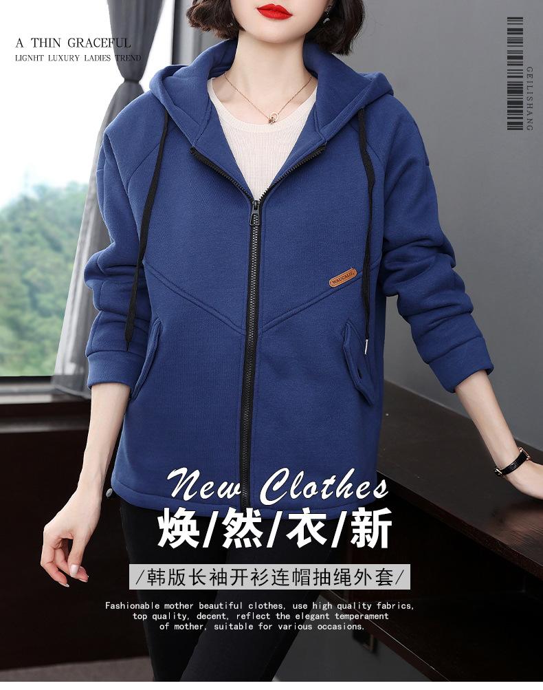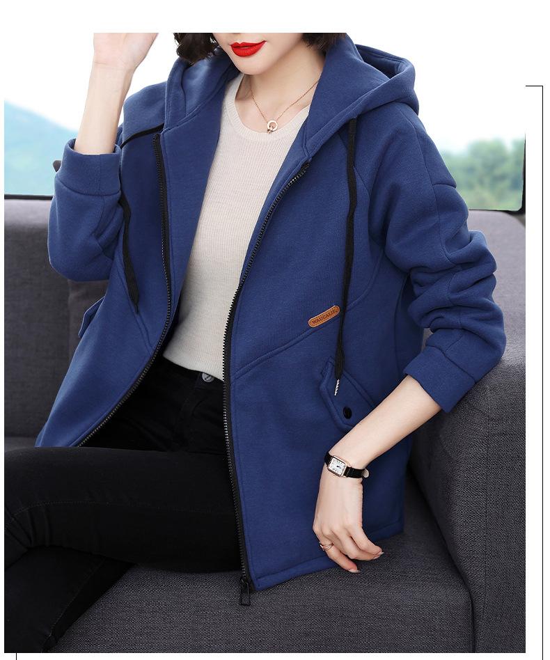 Top Casual Holgado para Madre de Mediana Edad y Talla Grande para Mujer, Cárdigan Grueso de Color Sólido, Chaqueta de Manga Larga con Capucha