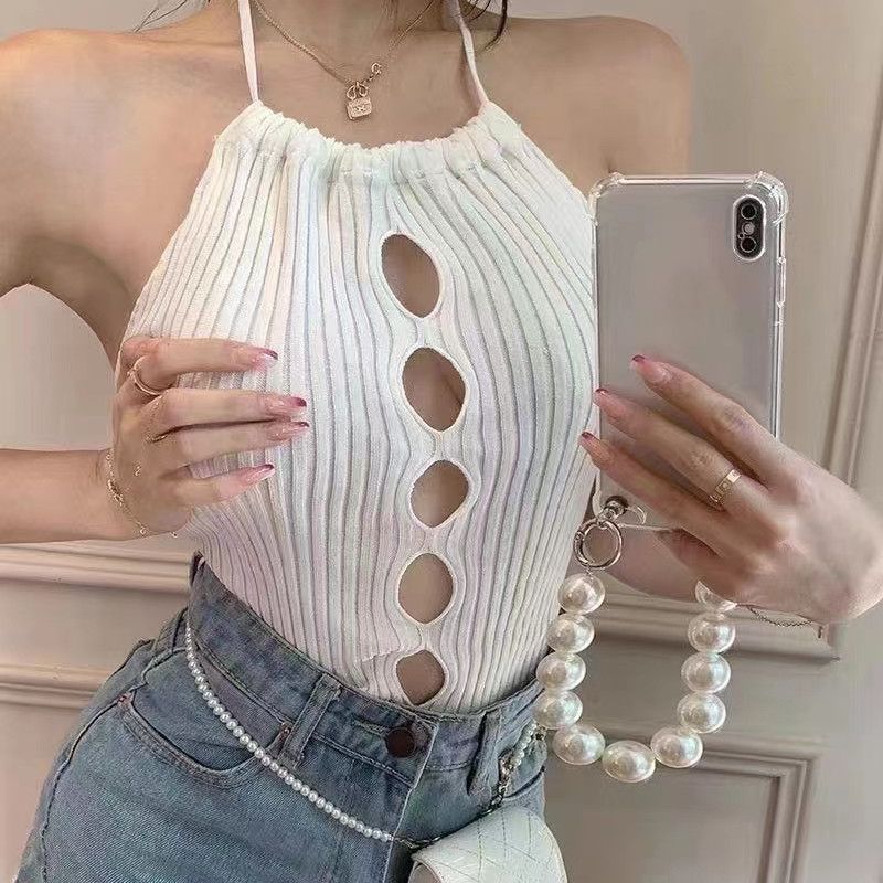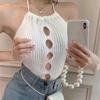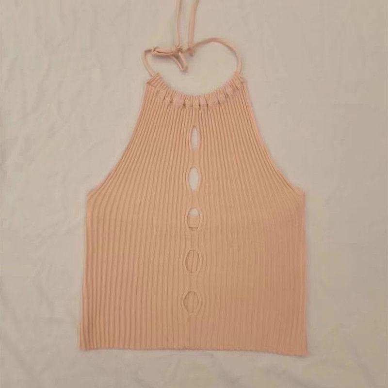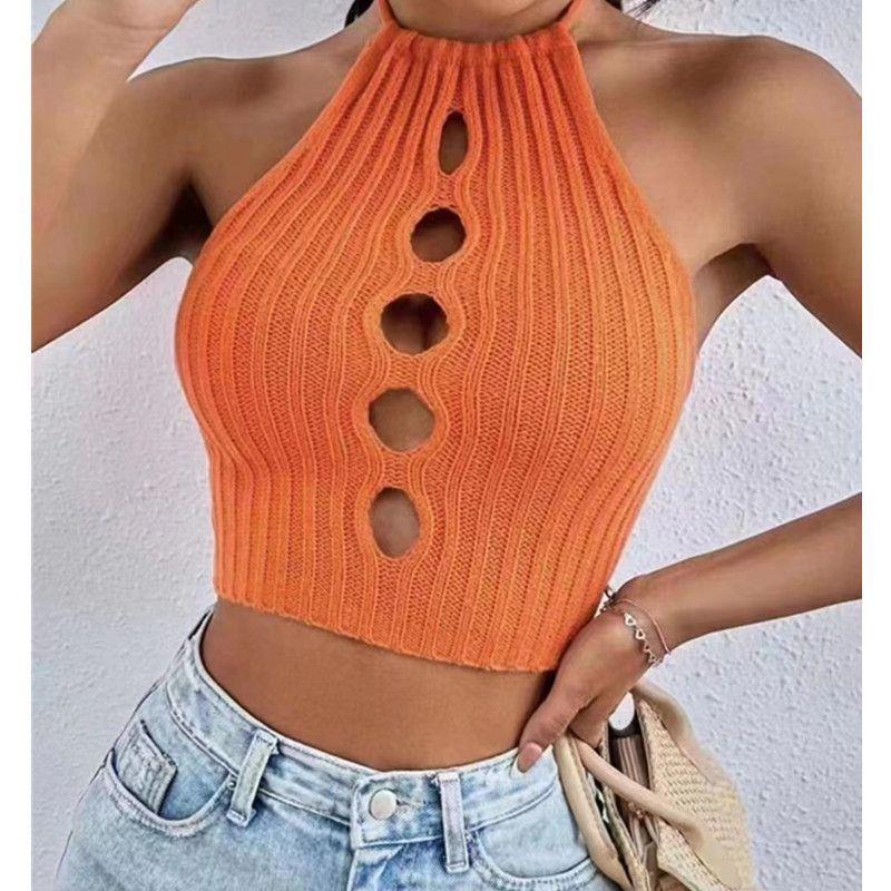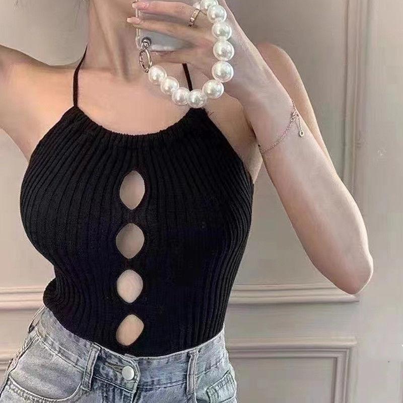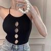 Chaleco de verano sexy con huecos y tirantes, prenda exterior entallada, de punto, diseño de top corto sin mangas