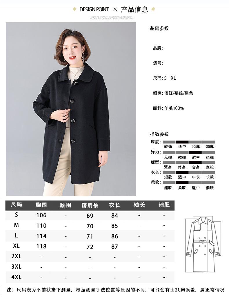 Abrigo de cachemira de doble cara para mamá, otoño e invierno, para mujer de mediana edad, nuevo abrigo holgado de lana de doble cara de alta gama de talla grande 2022