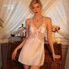 Seda de Morera Lencería Sexy Femenina Encaje Sexy Transparente Estilo Negro Tirantes Huecos Pijama Camisón Set