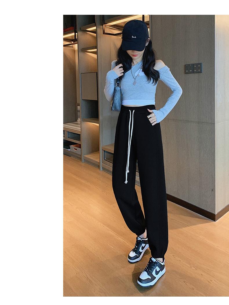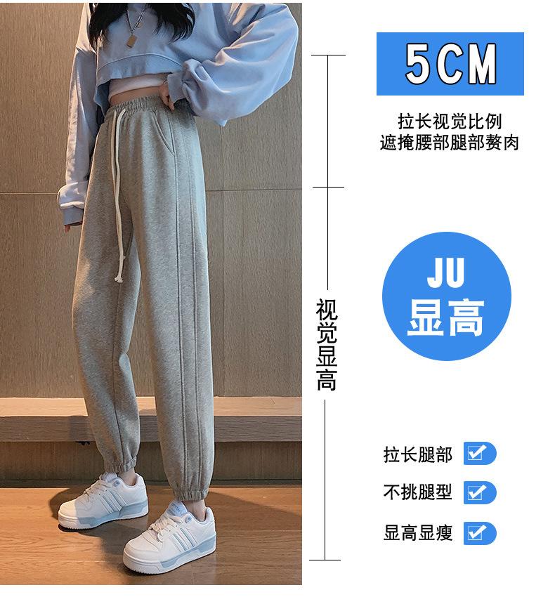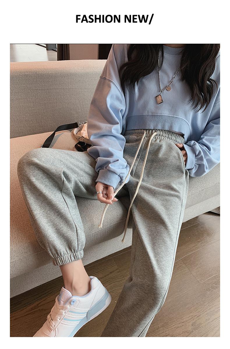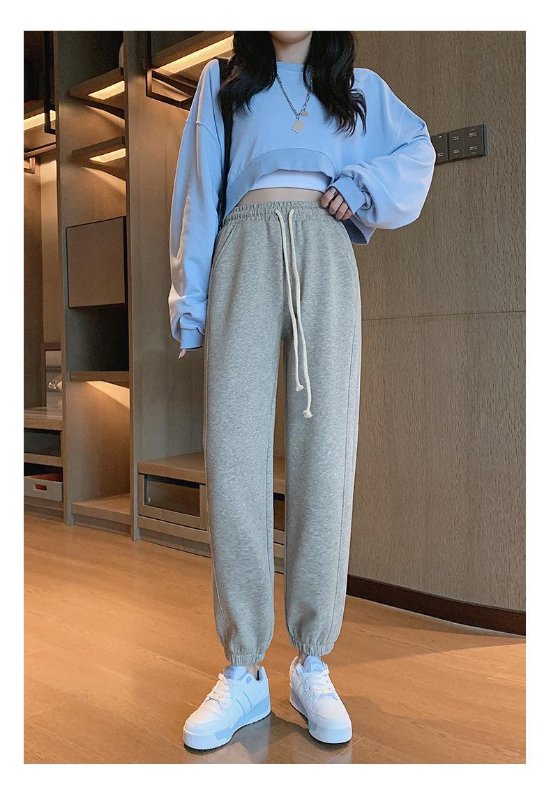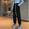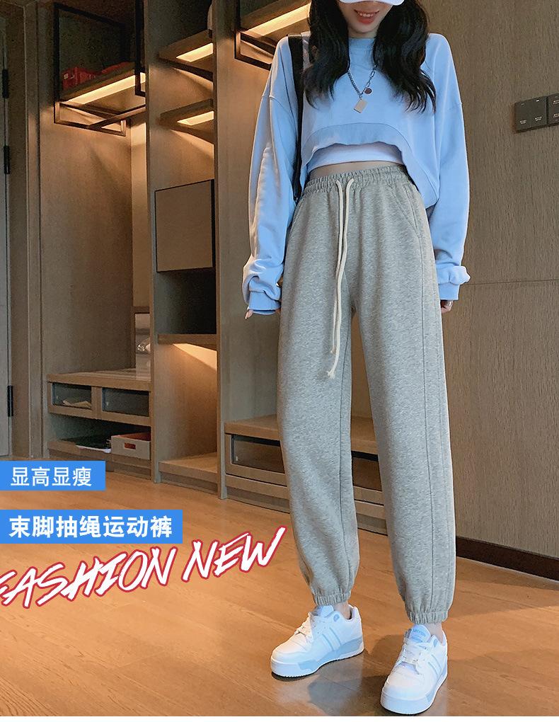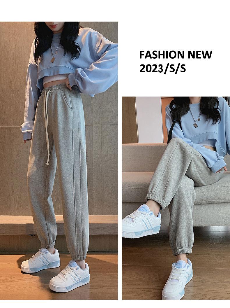 Pantalones de chándal de primavera y otoño para mujer, pantalones harem grises casuales de cintura alta, realzantes, con cordones, holgados, de algodón, para deportes