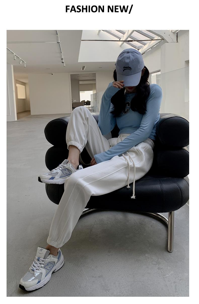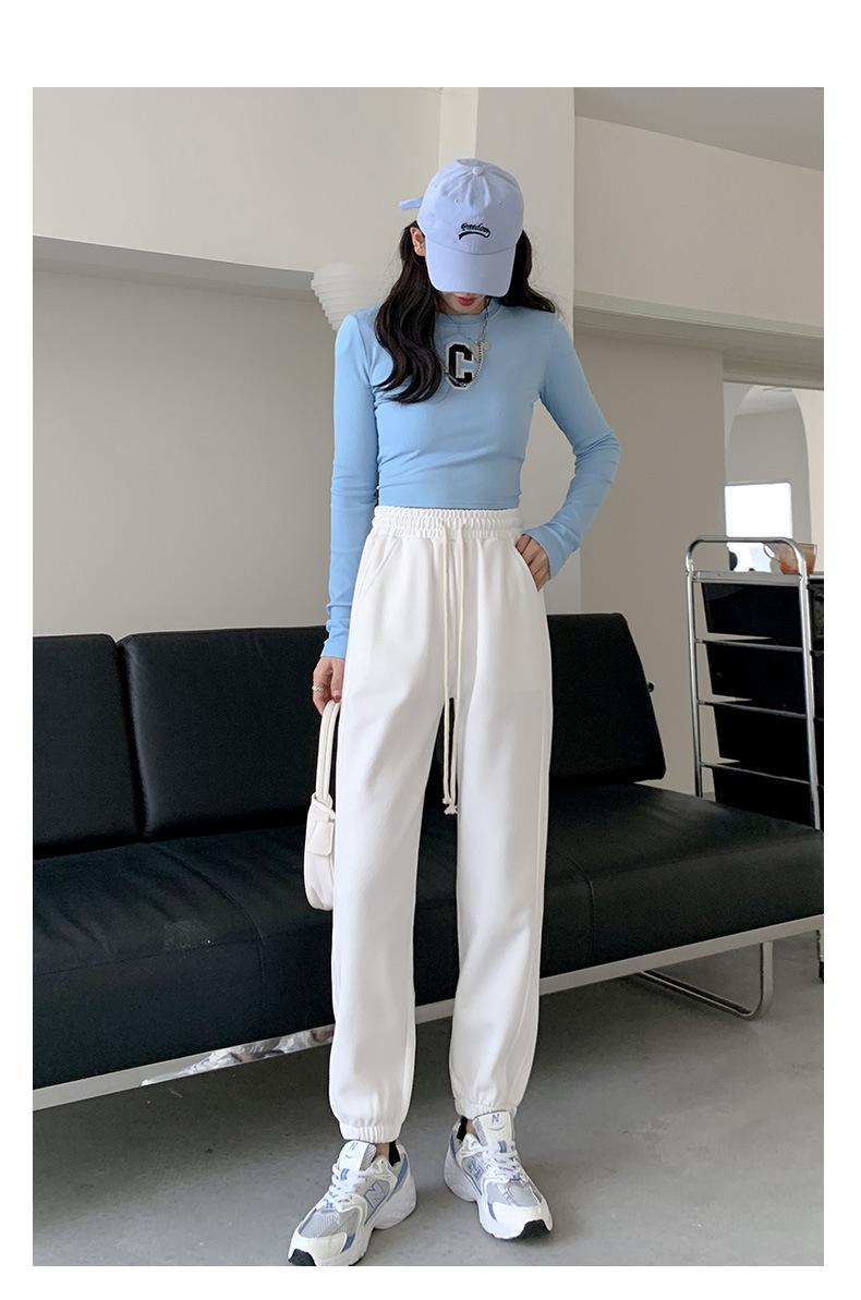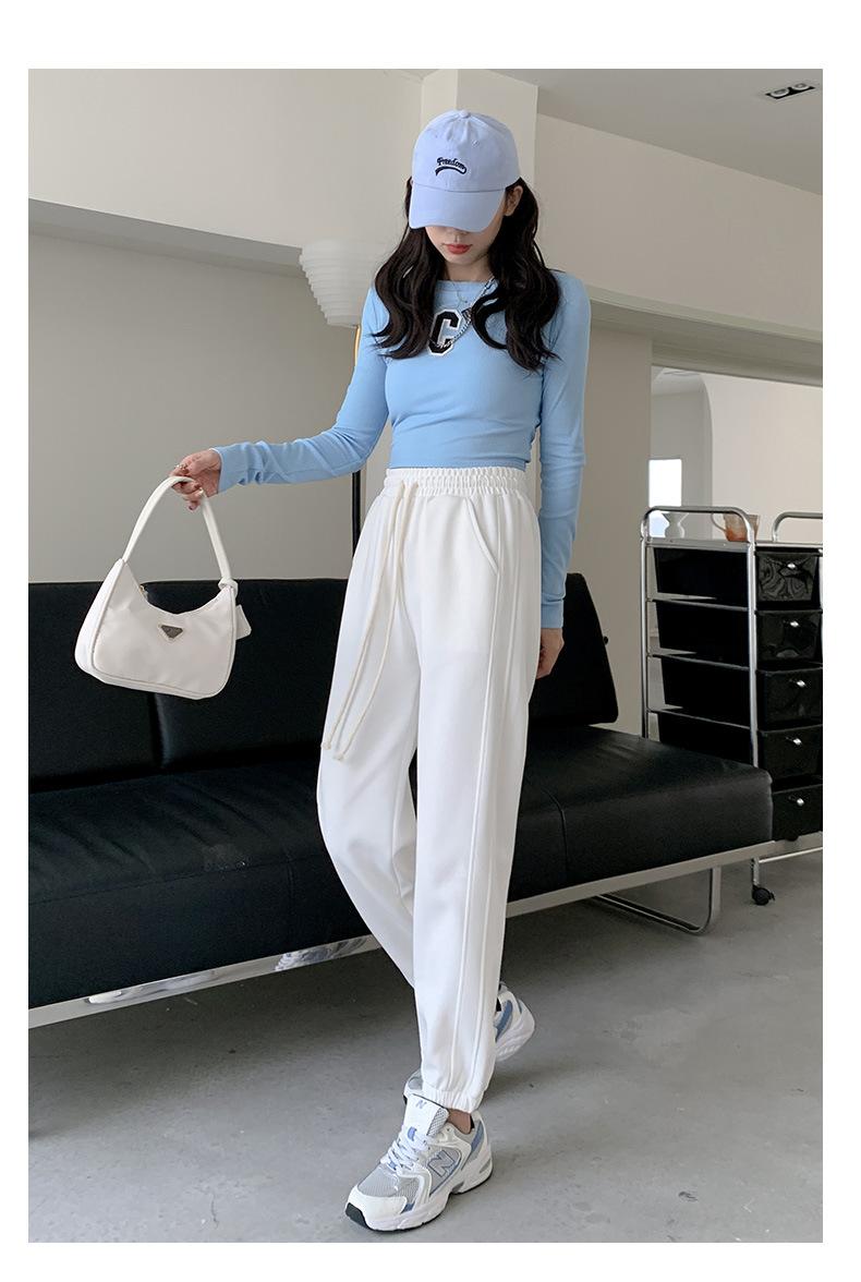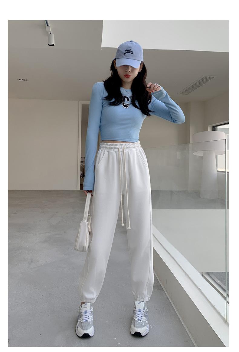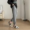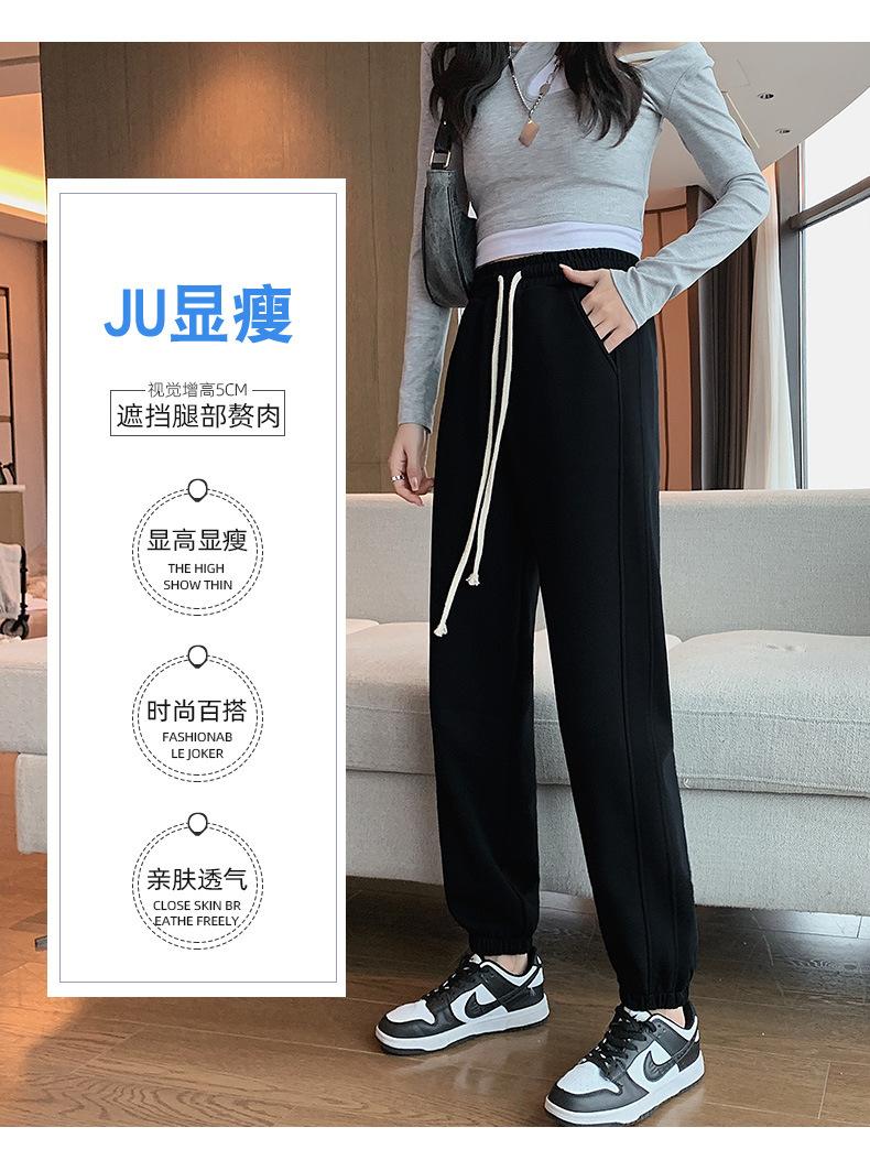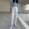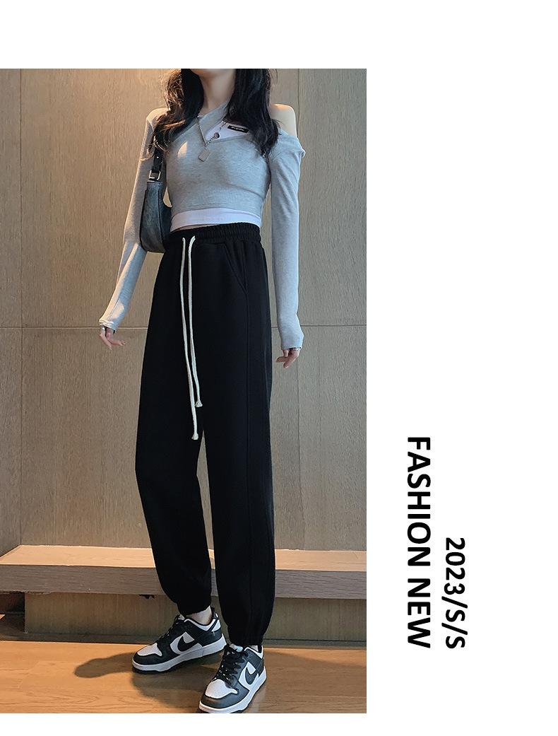Pantalones de chándal de primavera y otoño para mujer, pantalones harem grises casuales de cintura alta, realzantes, con cordones, holgados, de algodón, para deportes