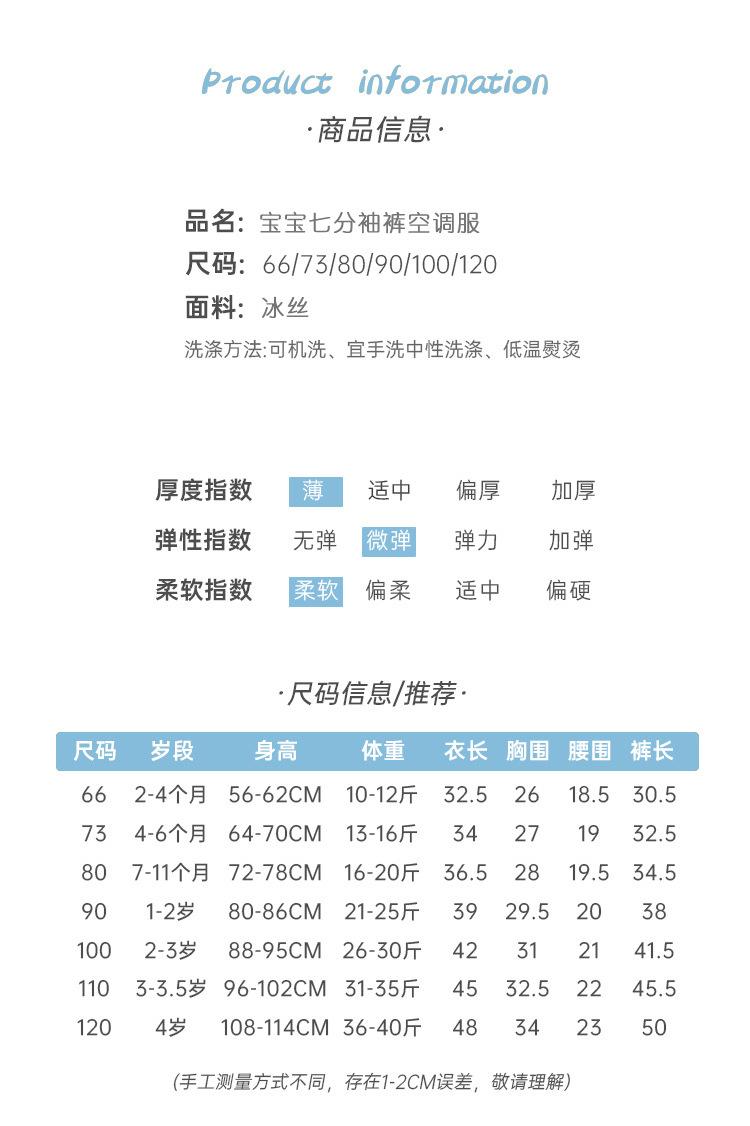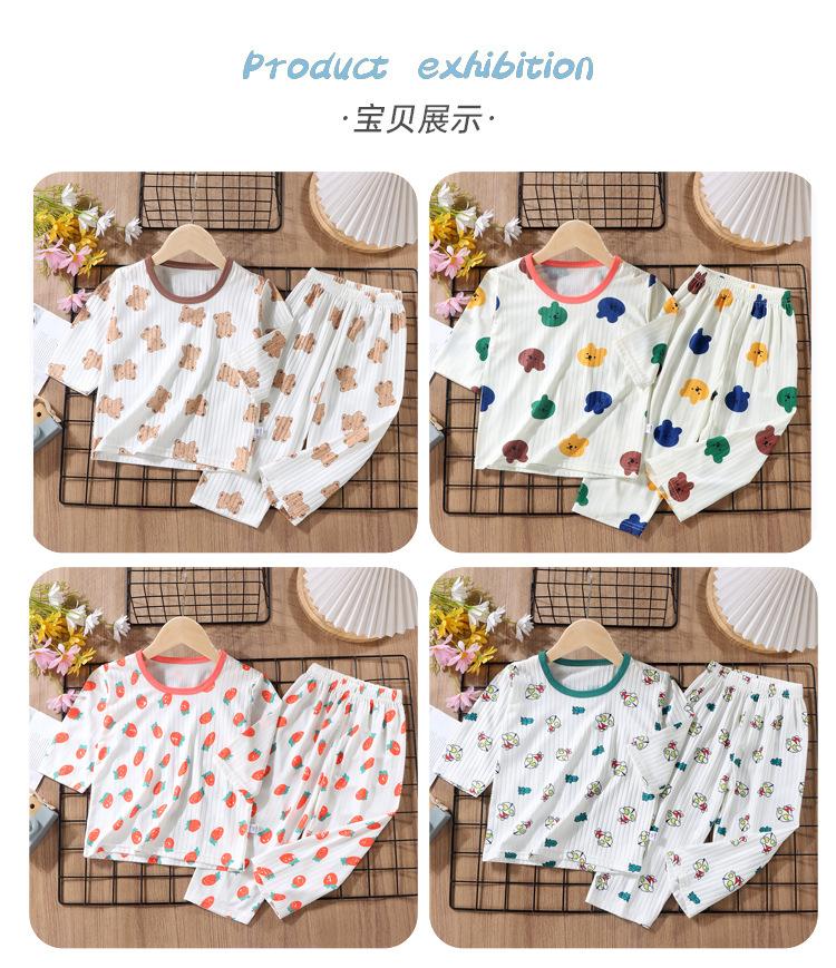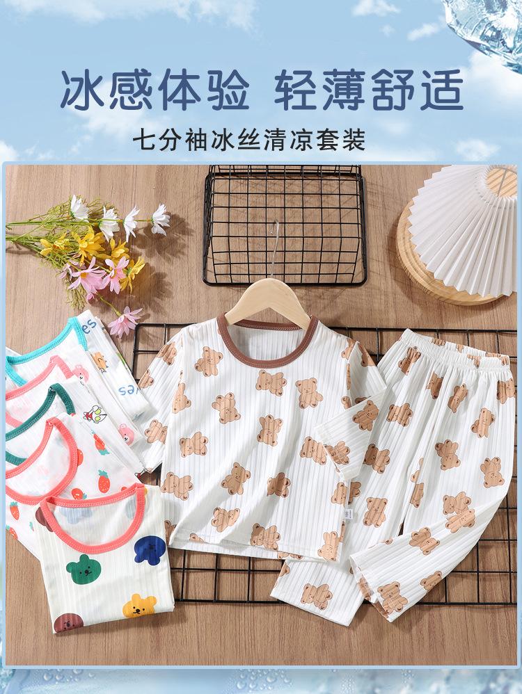 Ropa de Verano Acondicionada para Niños, Ropa de Descanso de Manga Tres Cuartos para Niñas, Conjunto de Pijama Delgado y Transpirable para Bebé, Absorbe la Humedad y el Sudor