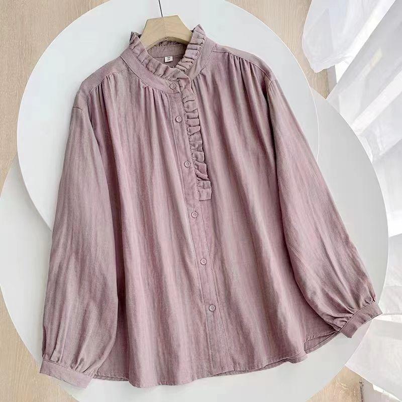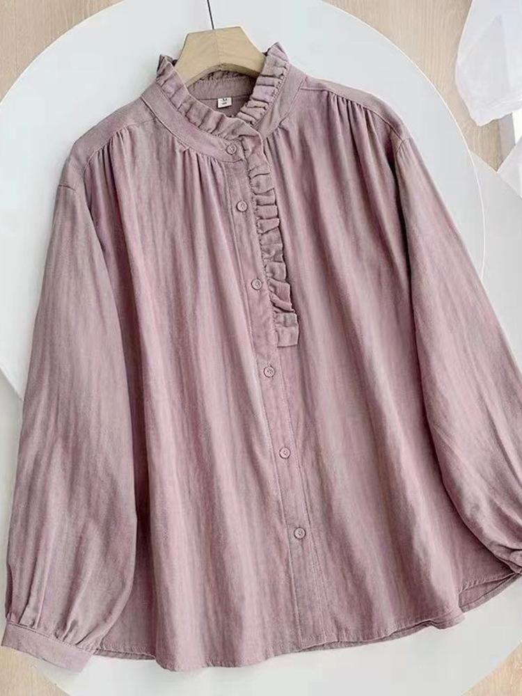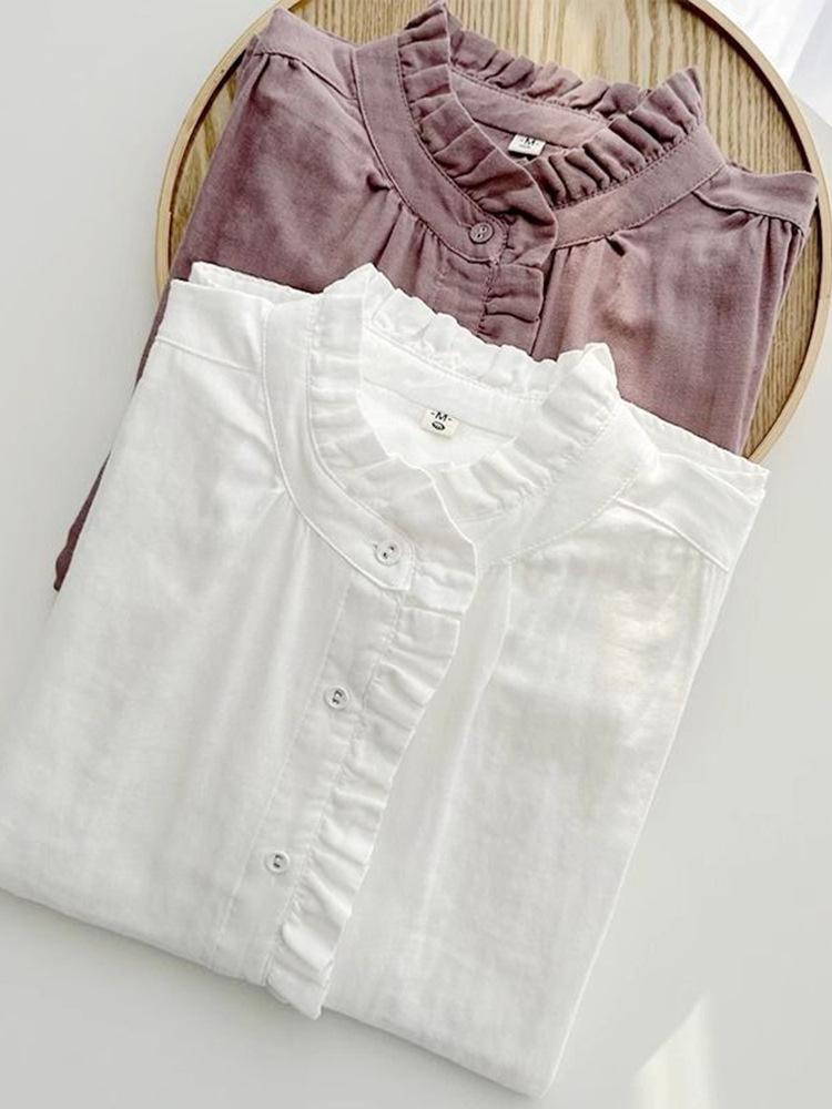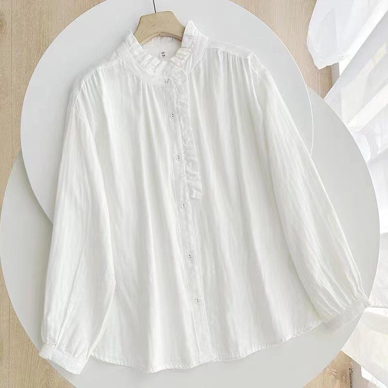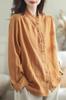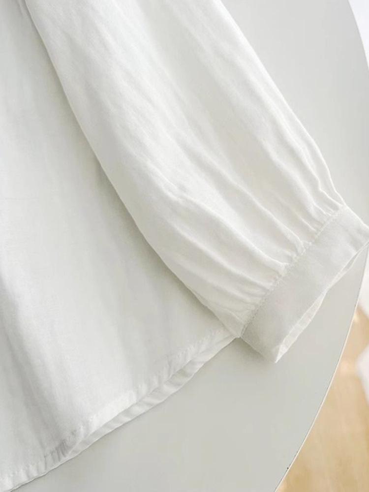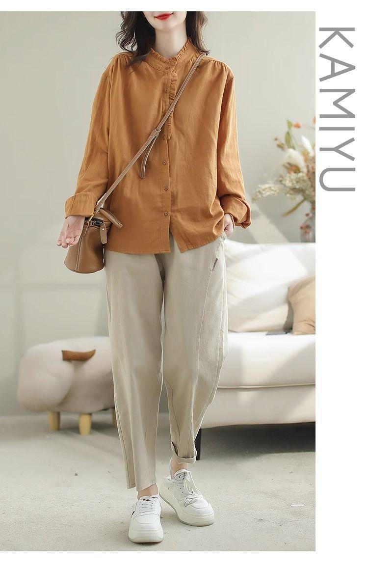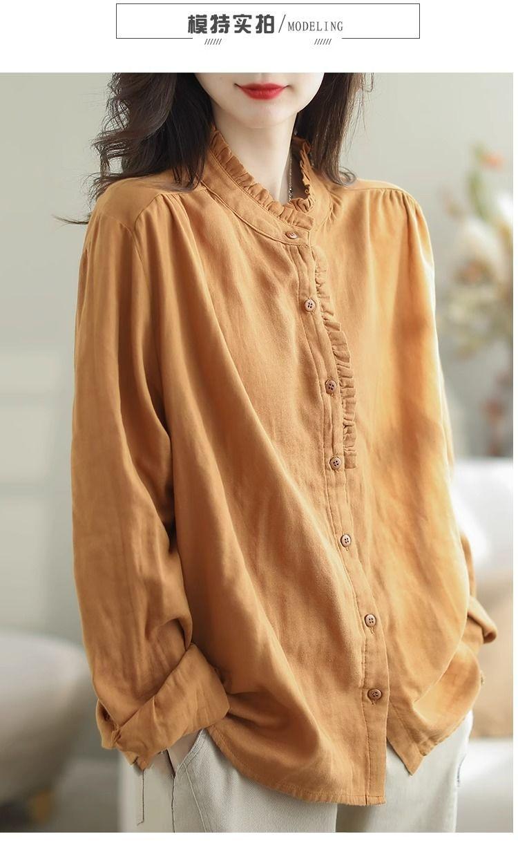 Camisa de manga larga de lino y algodón para mujer, estilo retro, holgada, de color liso, con costuras a la moda, combina con todo, para primavera y otoño.