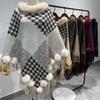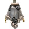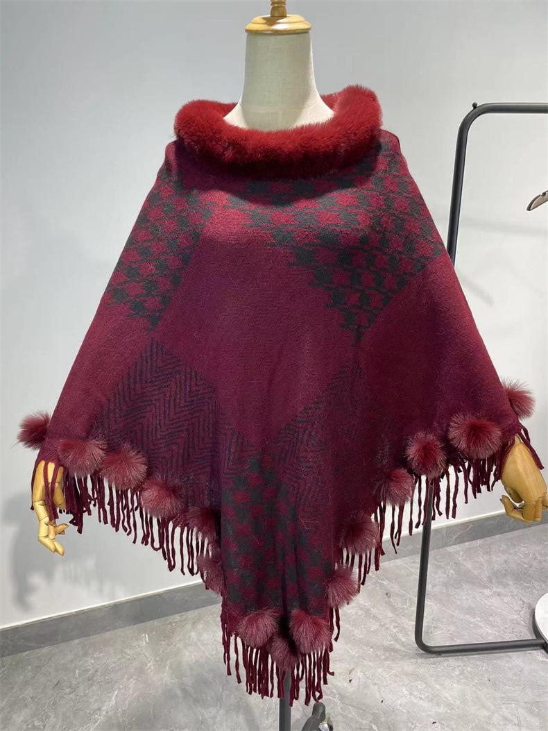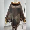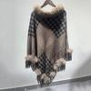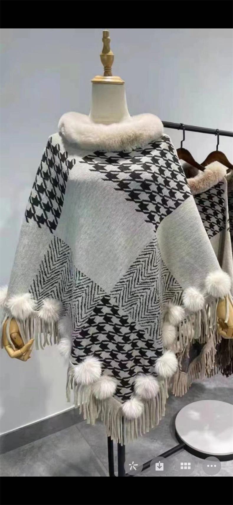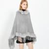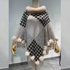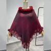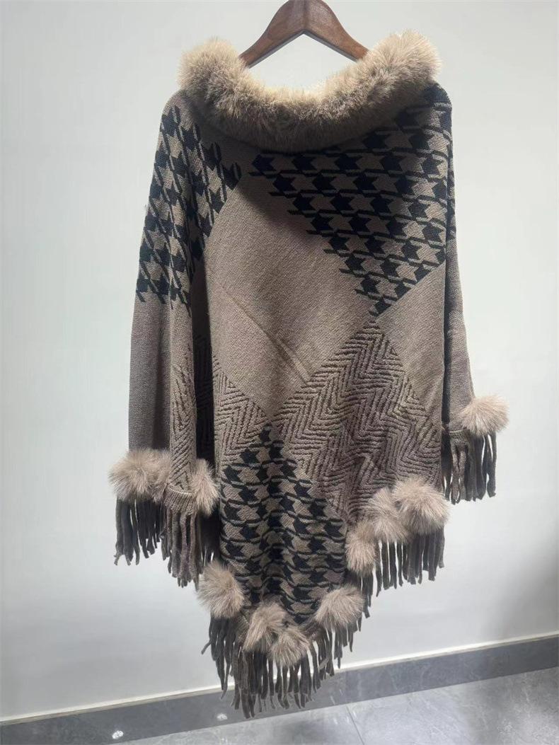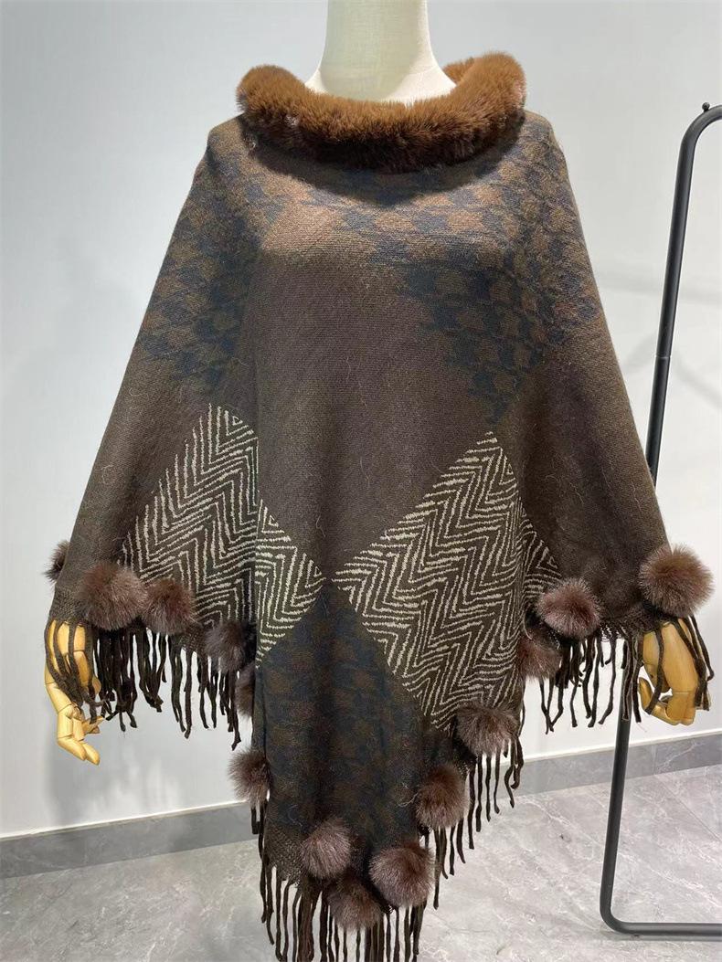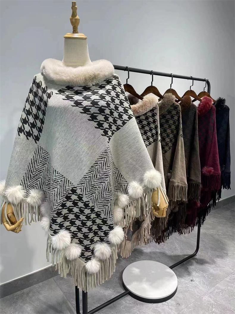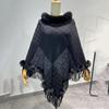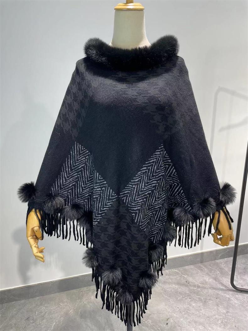 Nuevo jersey tipo chal con costuras de pata de gallo y pelo de conejo de imitación de talla grande transfronterizo europeo y americano, capa de punto con dobladillo y borlas, prenda exterior