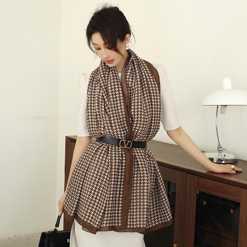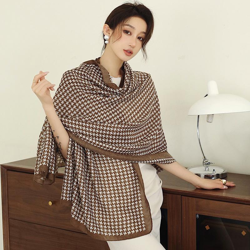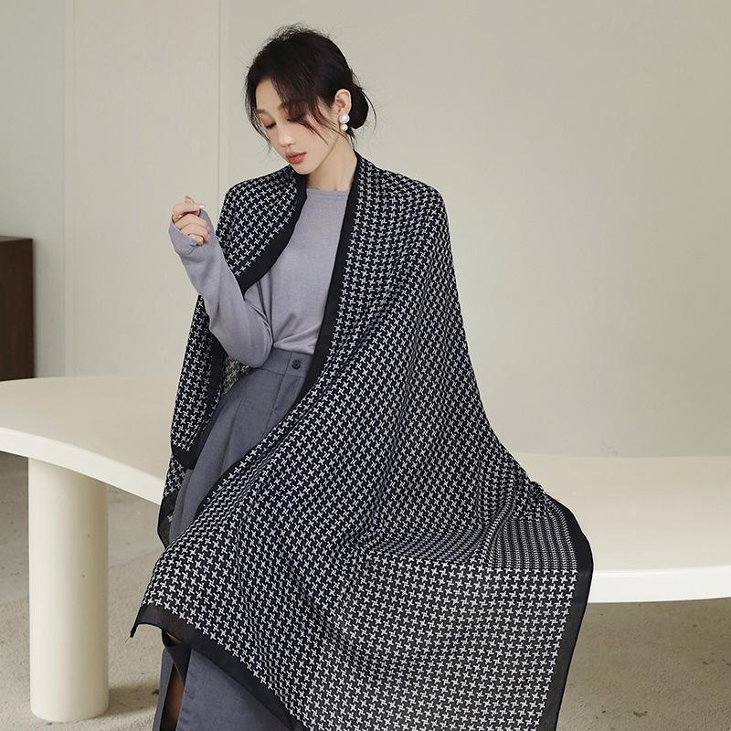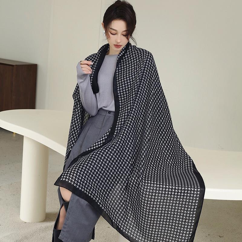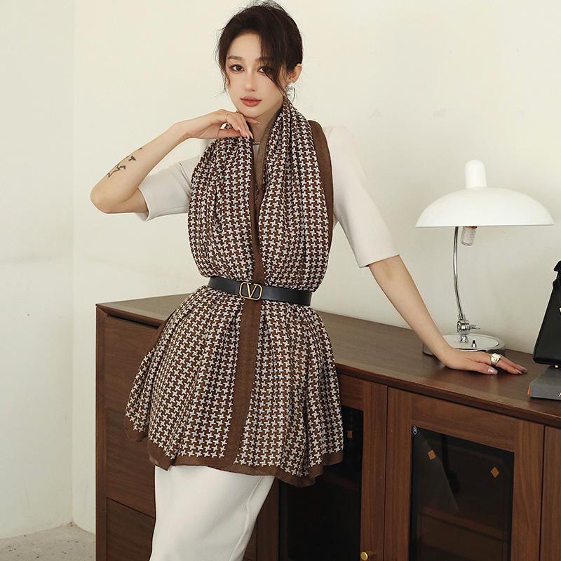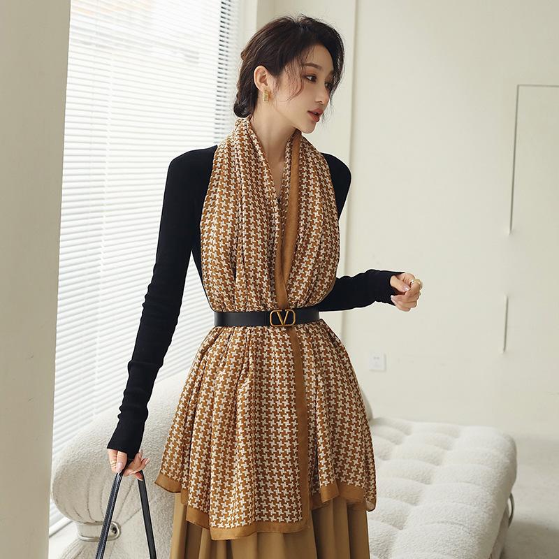 Bufanda cálida nueva de otoño e invierno para mujer, elegante chal de algodón y lino con estampado a mano, toalla de playa decorativa de moda coreana