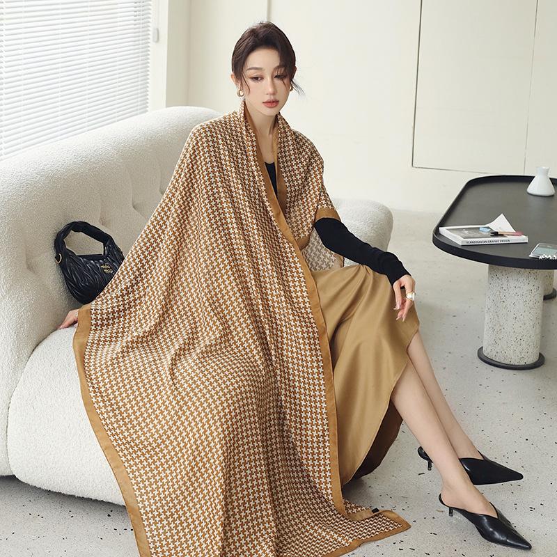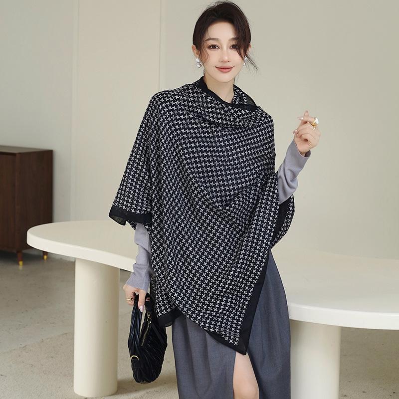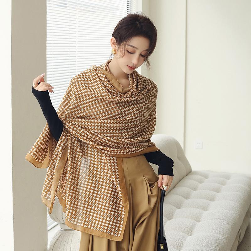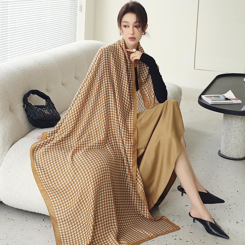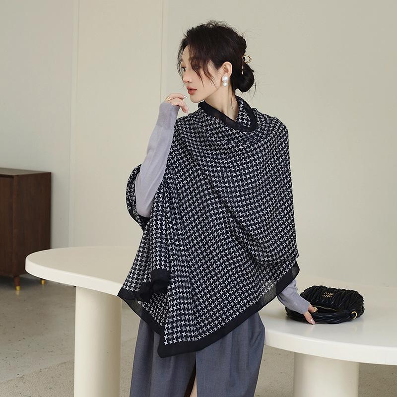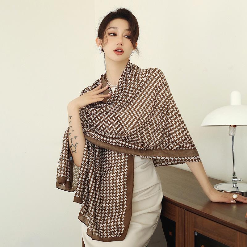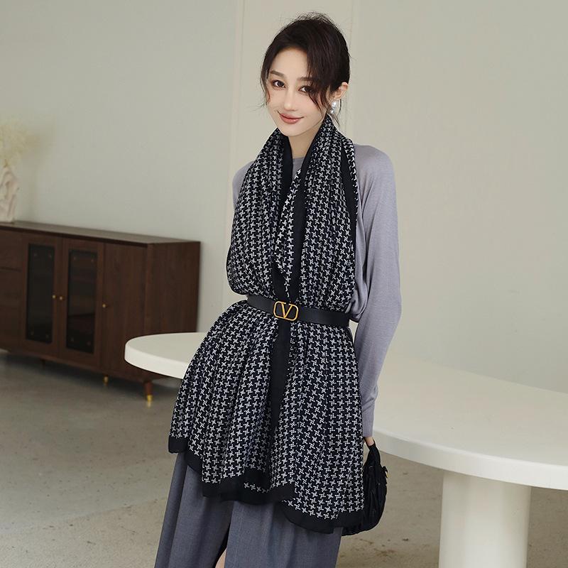 Bufanda cálida nueva de otoño e invierno para mujer, elegante chal de algodón y lino con estampado a mano, toalla de playa decorativa de moda coreana