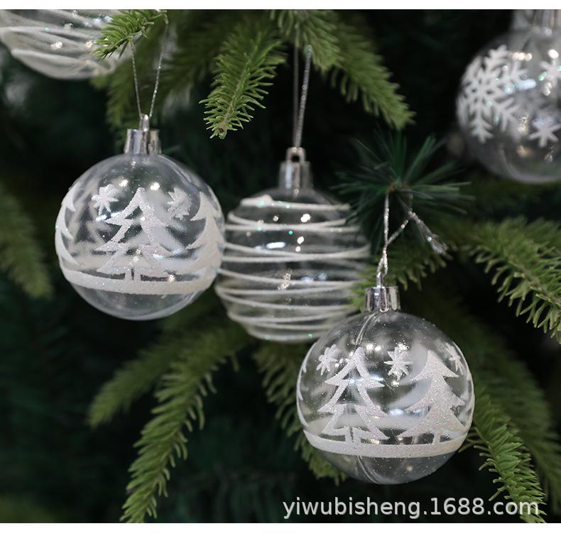 Bola decorativa colgante para árbol de Navidad, bola colgante en espiral de rayas blancas, nueva bola navideña con borde cruzado, bola pintada en blanco transparente