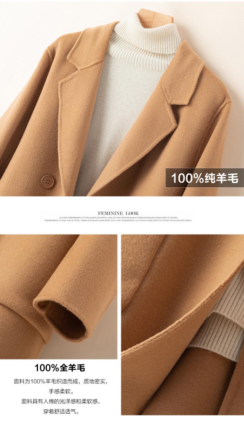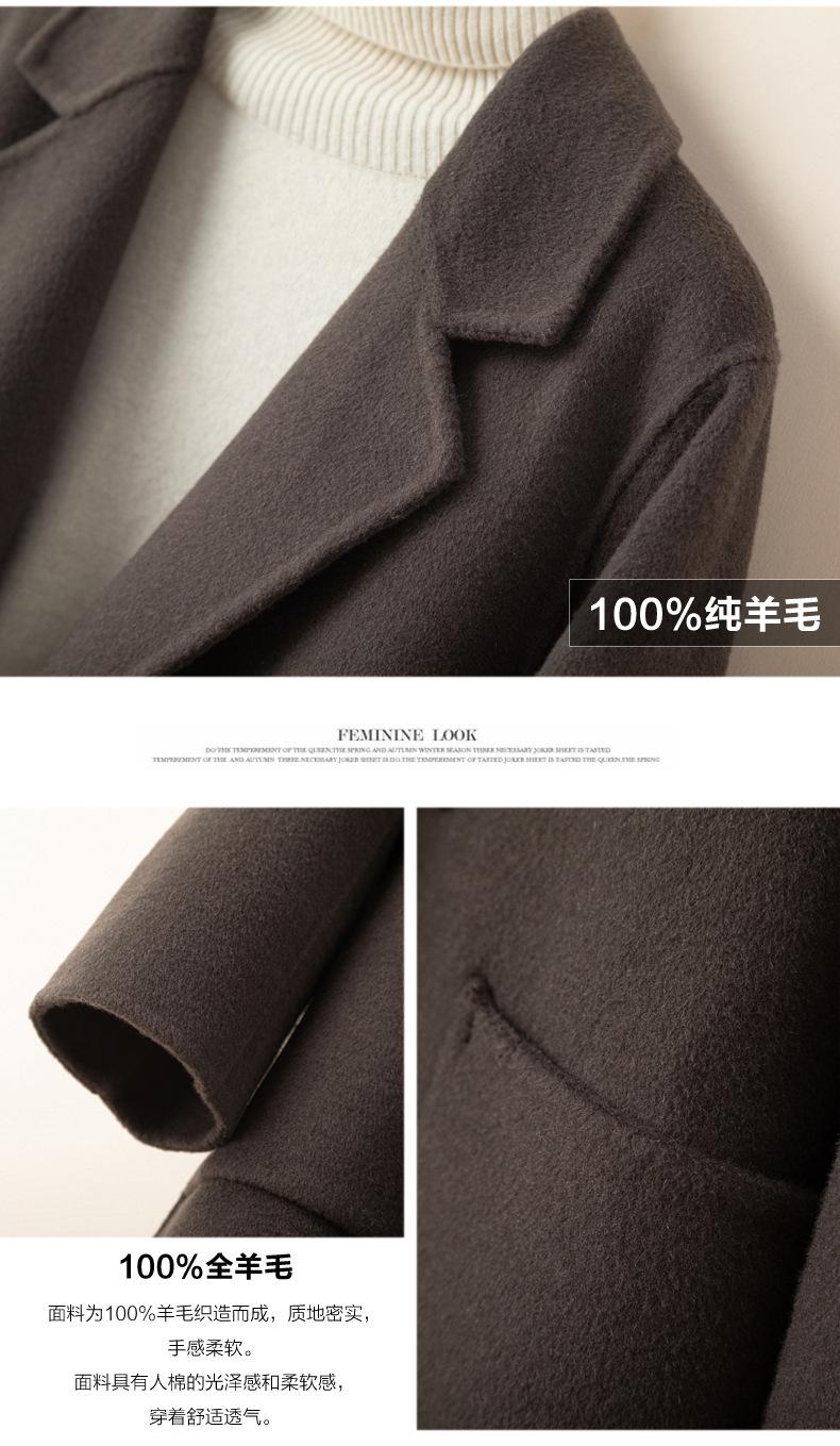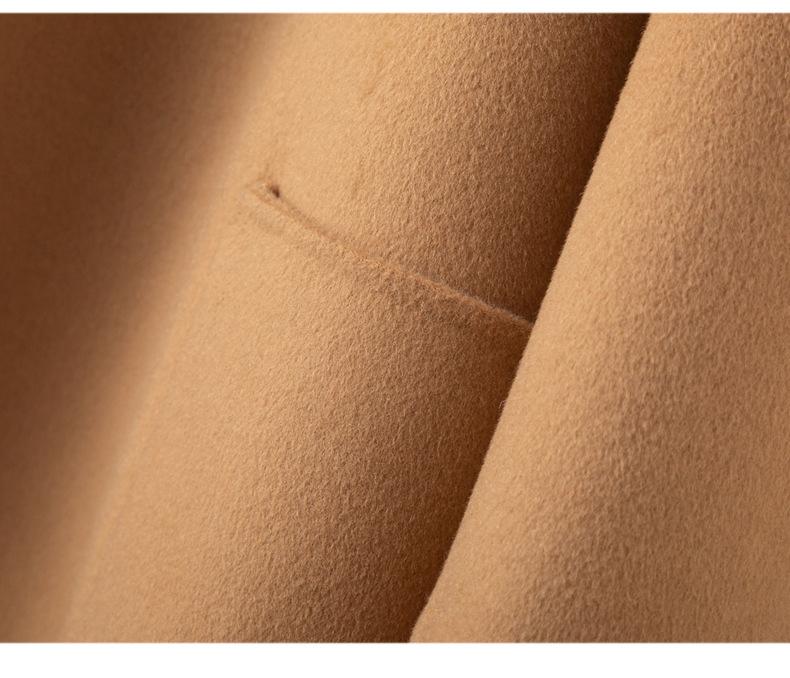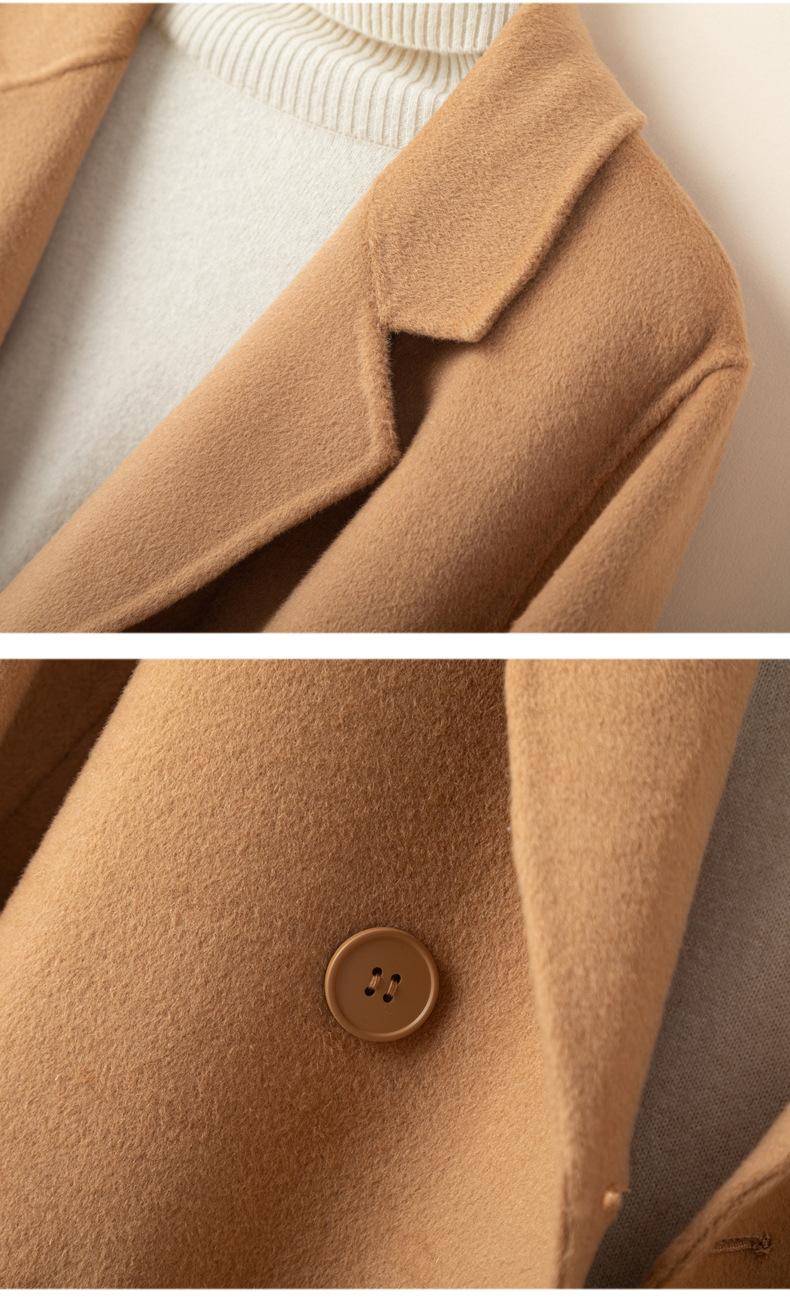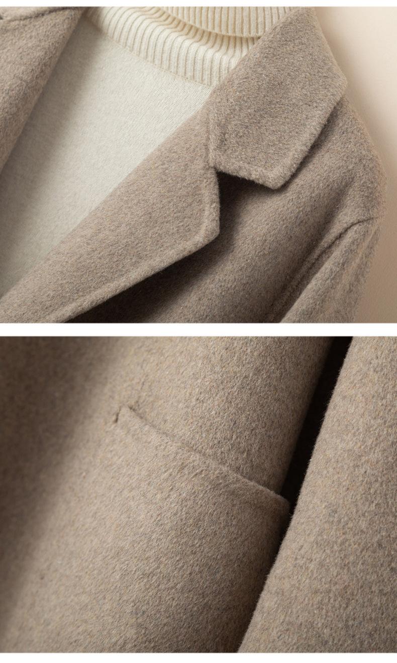 Abrigo de lana de doble cara, otoño e invierno, recién llegado, pequeño, color sólido, cruzado, bolsillo grande, abrigo informal de moda de longitud media.