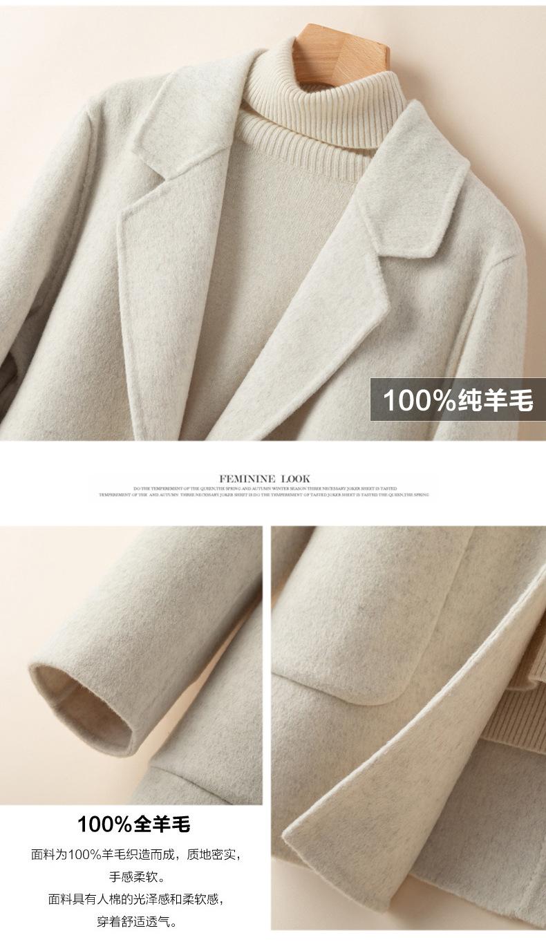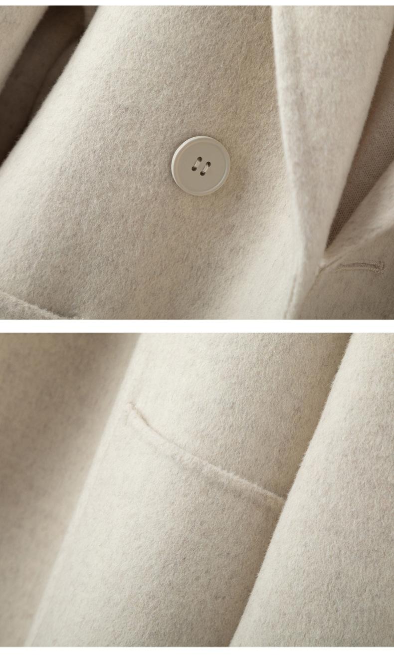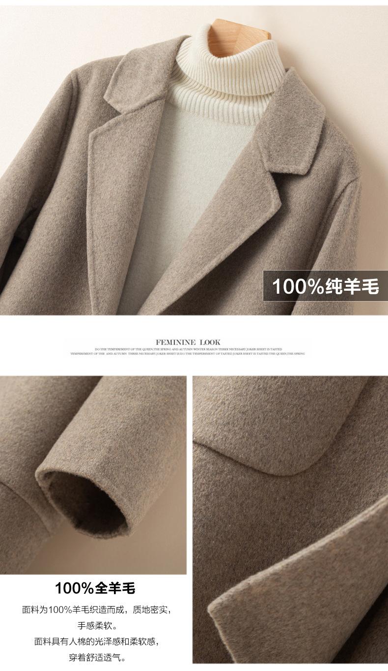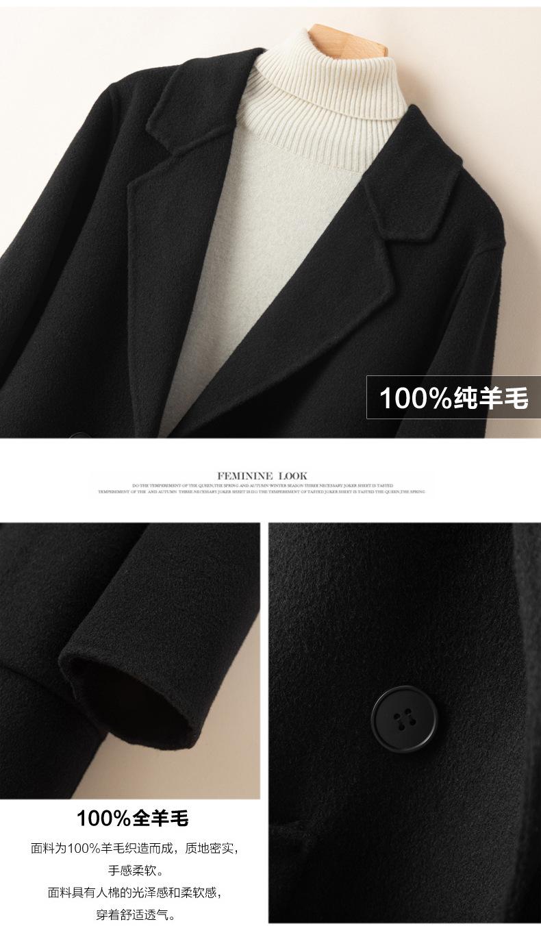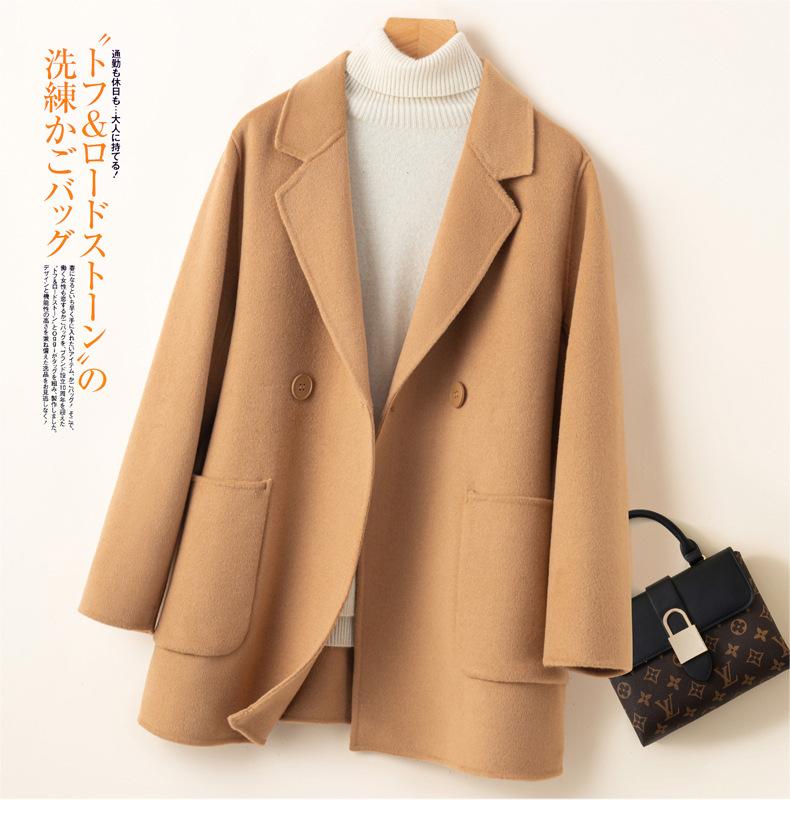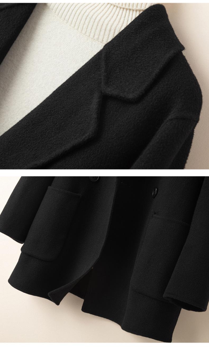 Abrigo de lana de doble cara, otoño e invierno, recién llegado, pequeño, color sólido, cruzado, bolsillo grande, abrigo informal de moda de longitud media.