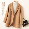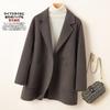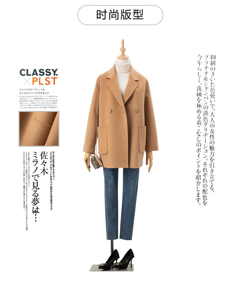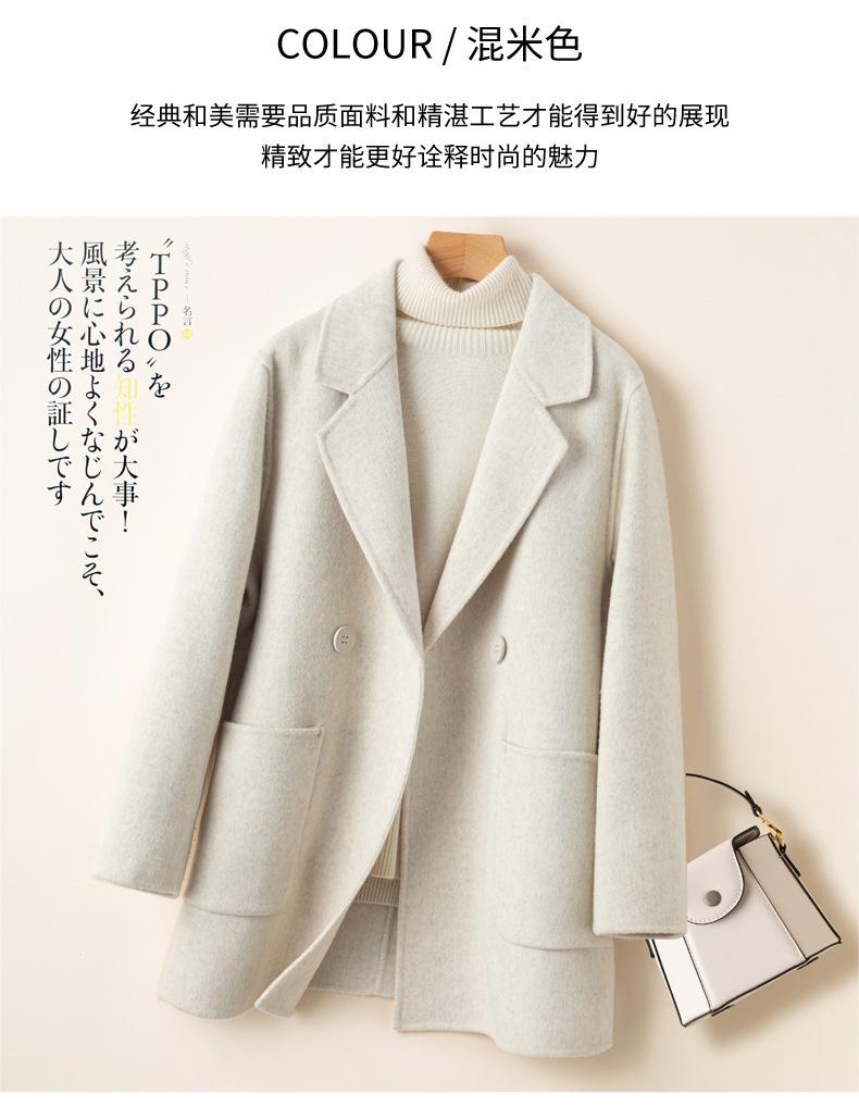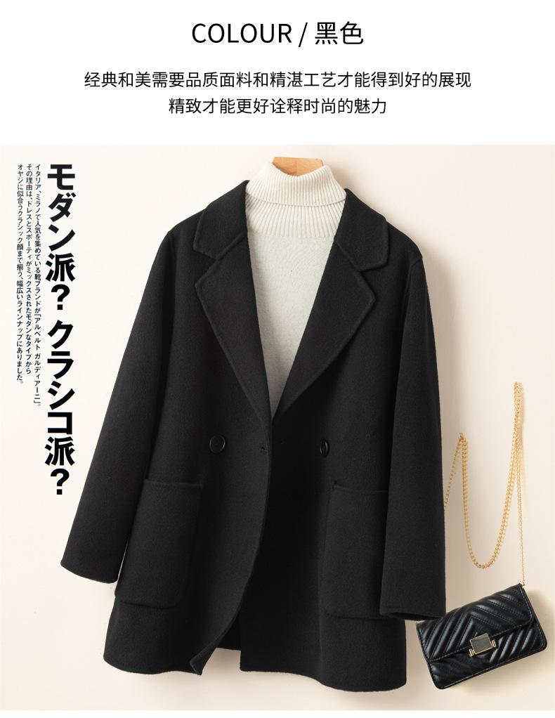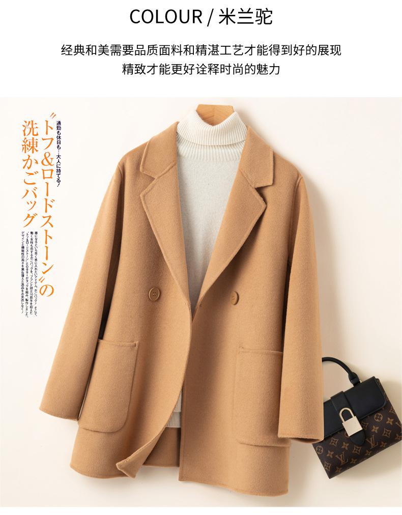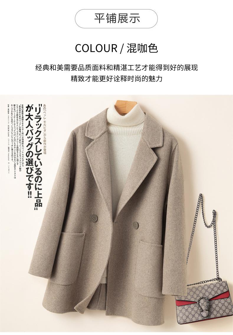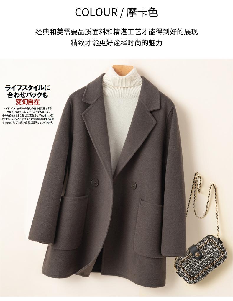 Abrigo de lana de doble cara, otoño e invierno, recién llegado, pequeño, color sólido, cruzado, bolsillo grande, abrigo informal de moda de longitud media.