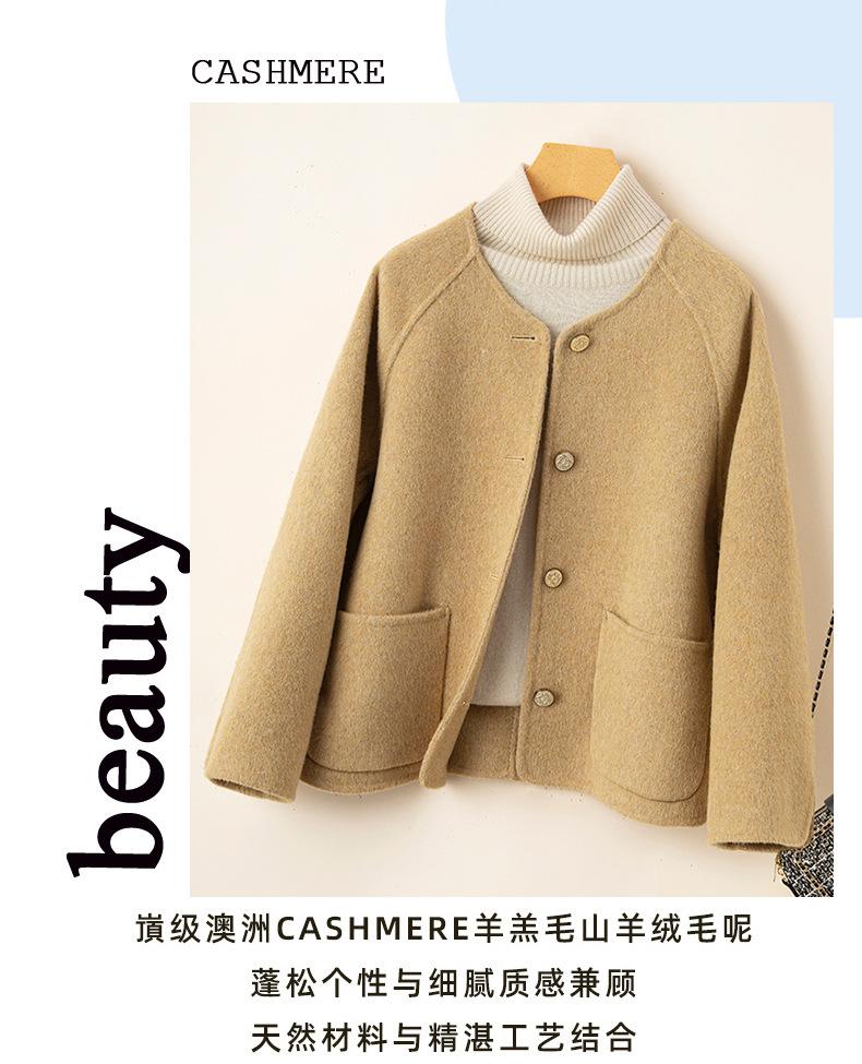 Abrigo de cachemira de doble cara para mujer, nuevo abrigo de lana estilo Chanel, corto, holgado, de alta gama, estilo coreano, para otoño e invierno.