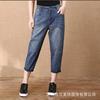 Pantalones zanahoria de cintura elástica, Pantalones capri para mujer, Nuevos pantalones harem de verano, Jeans holgados de ocho puntos, Cintura alta y adelgazantes