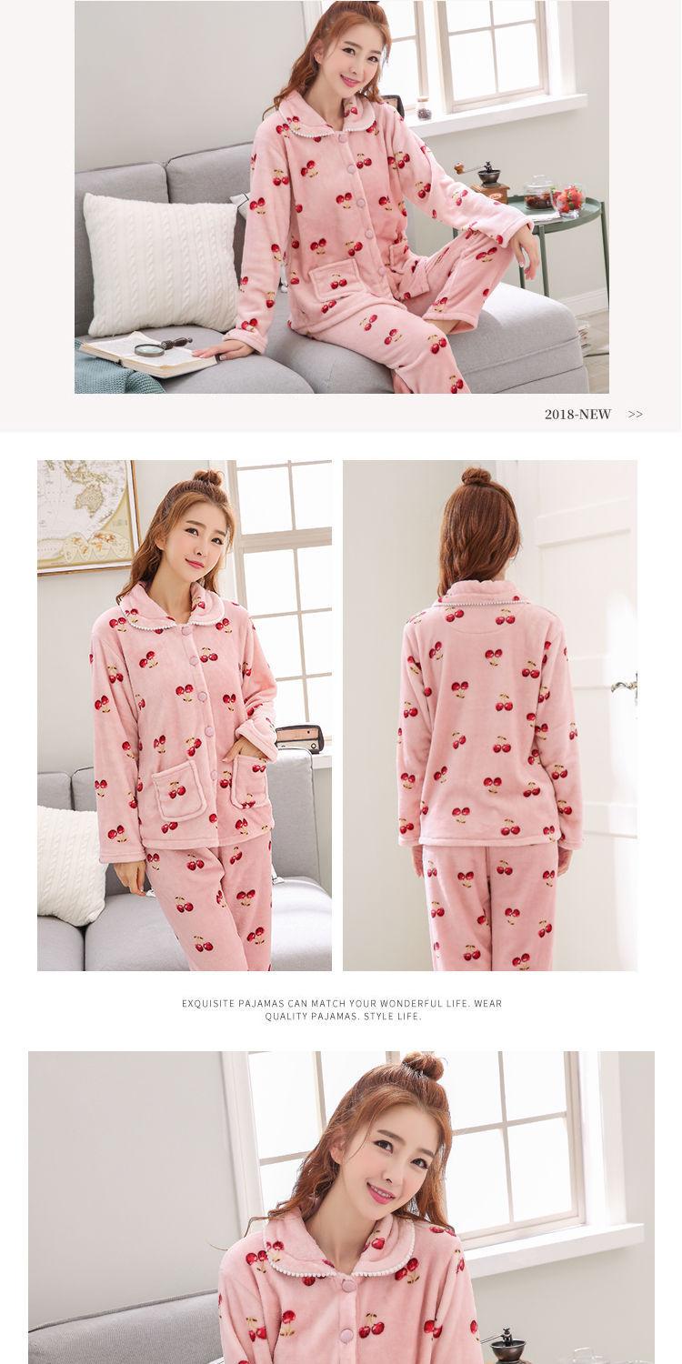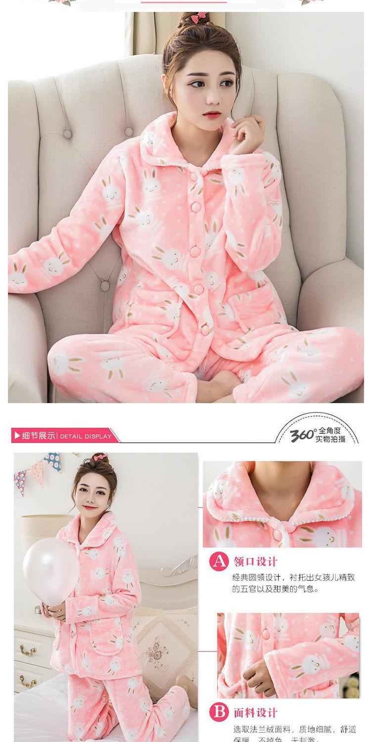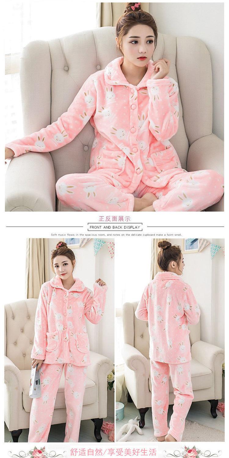 Pijamas para mujer otoño e invierno forro polar de coral lindo engrosado estilo coreano franela cálido caricatura talla grande ropa para el hogar traje de invierno