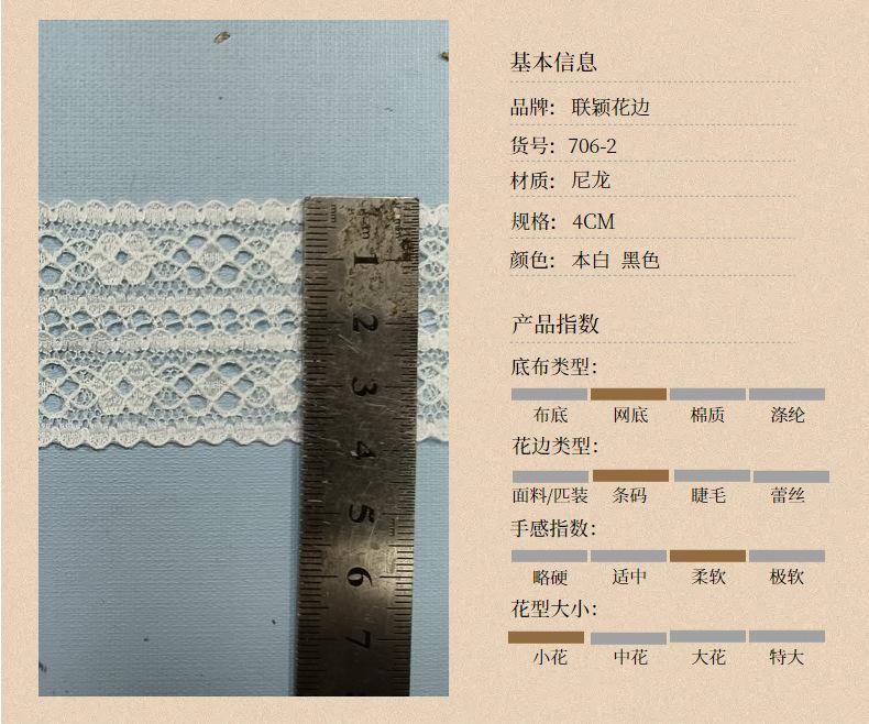 Encaje de nailon no elástico de 4 cm, malla ligera de un solo lado, accesorios de ropa hechos a mano, fabricante de códigos de barras DIY