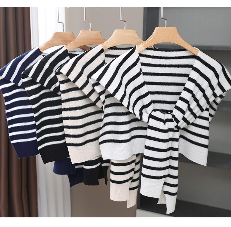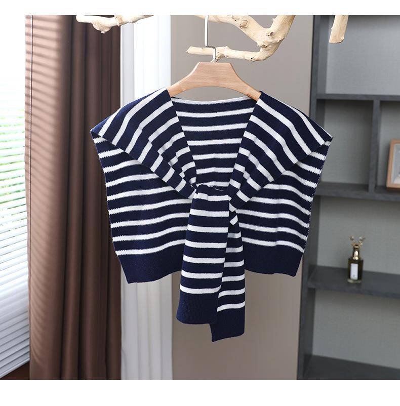 Chal pequeño artístico para primavera y verano, prenda exterior de lana pura coreana, hombrera de punto, bufanda cruzada para habitación con aire acondicionado, hombrera estilo azul marino