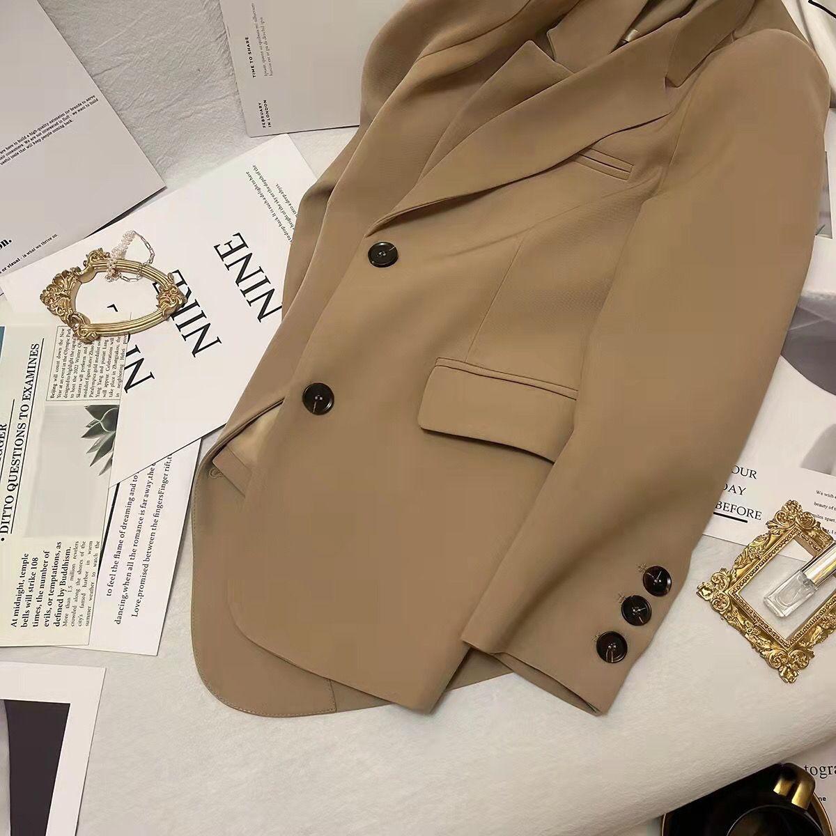Chaqueta de traje pequeña color caqui de principios de otoño transfronterizo para mujer, estilo coreano informal, chaqueta de moda para estudiantes de primavera y otoño, nueva