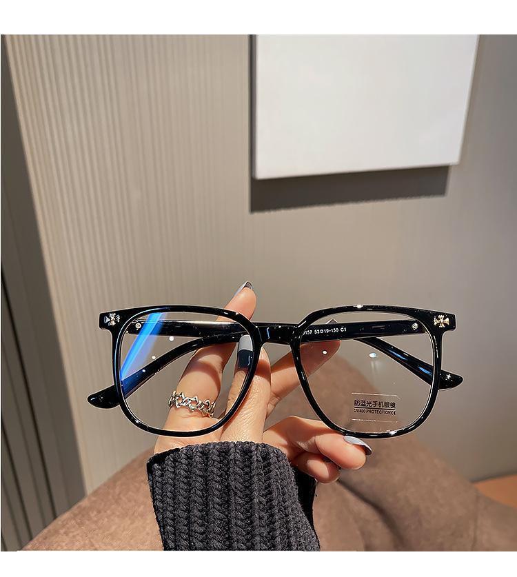 Montura Grande Gruesa Negra Lisa Espejo Cara Redonda Cara Grande Aspecto Adelgazante Montura de Lentes para Mujer Luz Azul Cuadrada Estudiante Montura Plana Estilo para Hombre