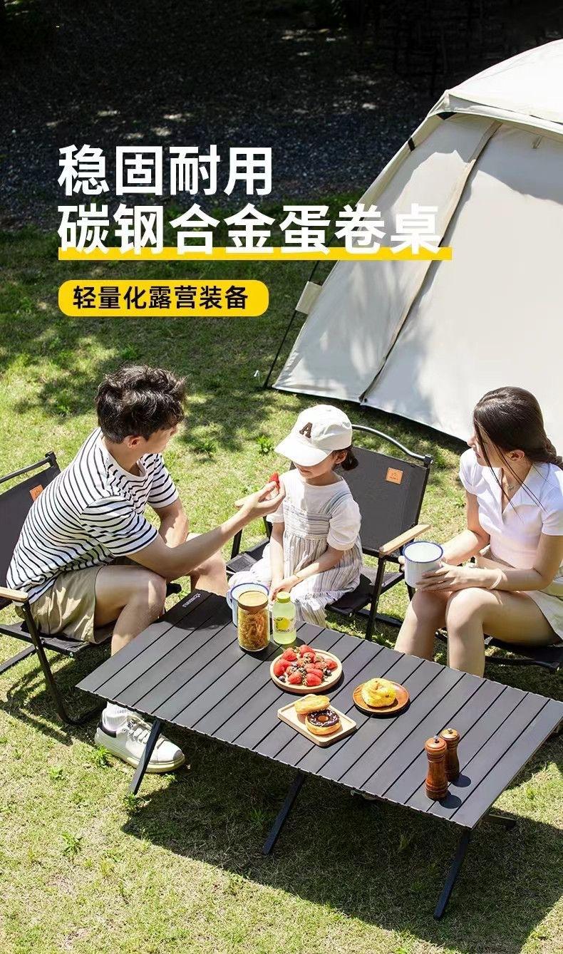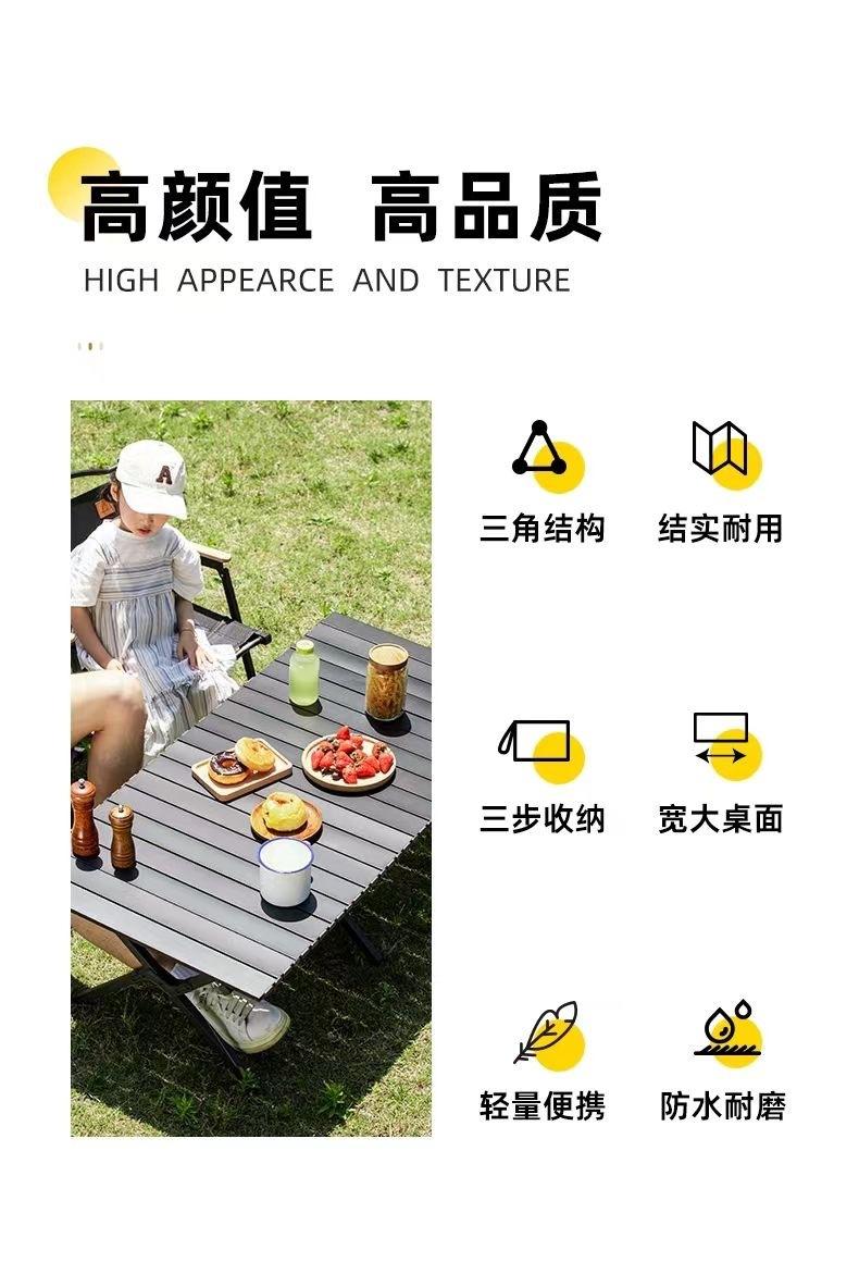 Mesa plegable para exteriores con forma de huevo, portátil, ultraligera, para acampar, para picnic, ligera, con veta de madera, para exteriores