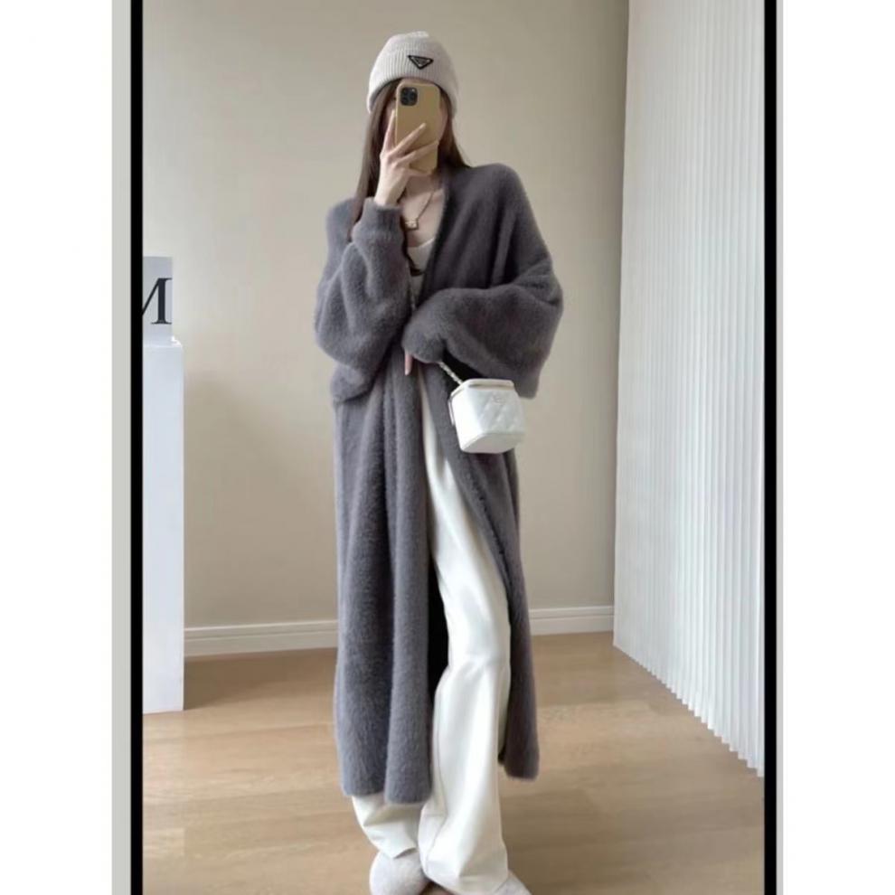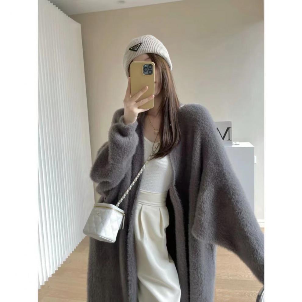 Chaqueta tipo suéter de terciopelo de imitación de visón, estilo perezoso, de longitud media por encima de la rodilla, para mujer, cárdigan holgado vintage de moda para otoño e invierno, 2023