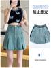 Falda corta de mezclilla para mujer, de verano, fina, de cintura alta, falsa, de dos piezas, antideslizante, de pierna ancha, corte A, hasta la cadera, pantalones de media falda