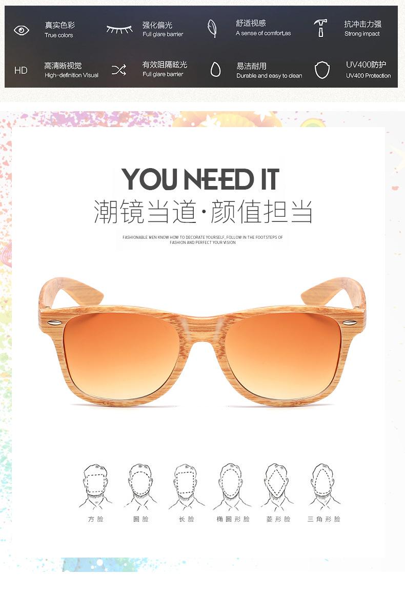 Moda europea y americana beige uña caja de gafas de sol retro grano de madera gafas de sol para mujer para conducir a prueba de rayos UV venta al por mayor