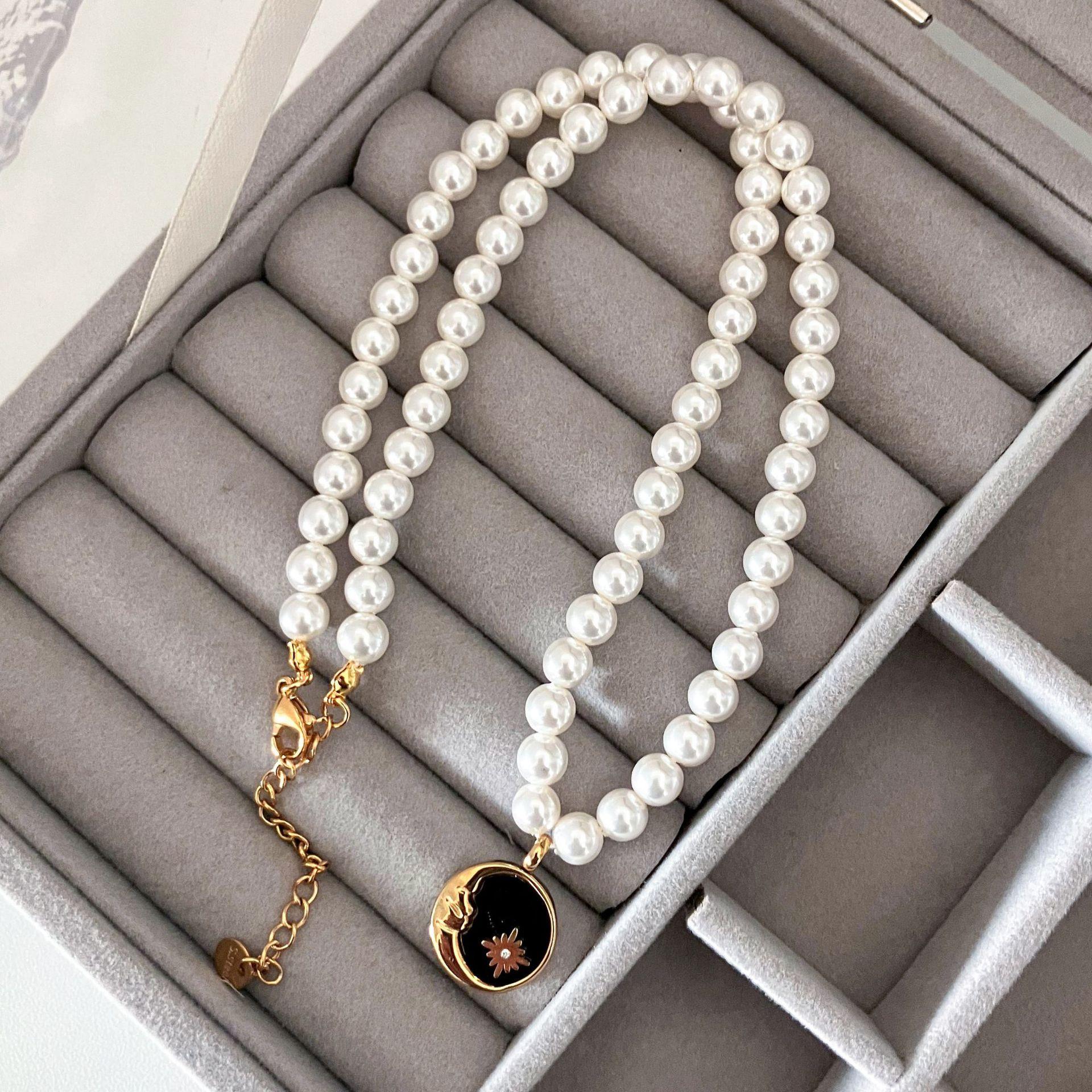 Collar con colgante de perla coreana, temperamento hecho a mano, nicho Joker, cadena de clavícula dulce y fresca, venta al por mayor