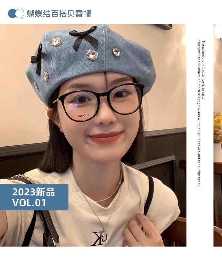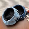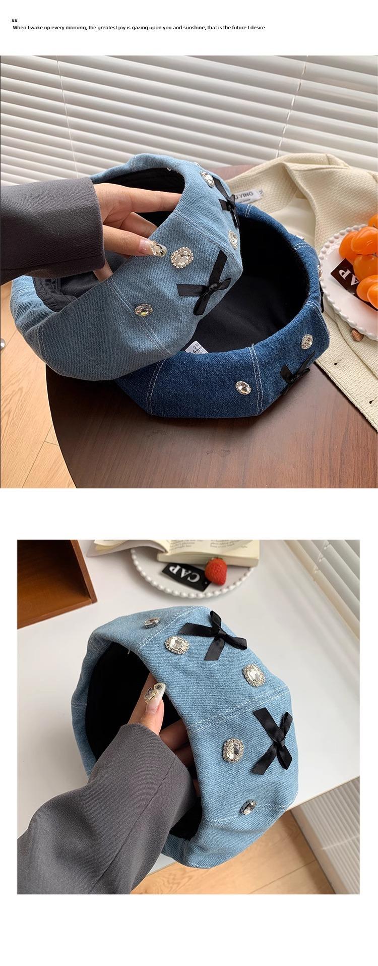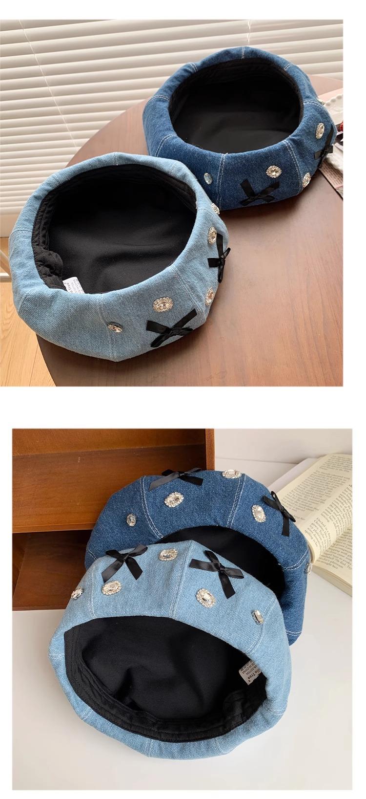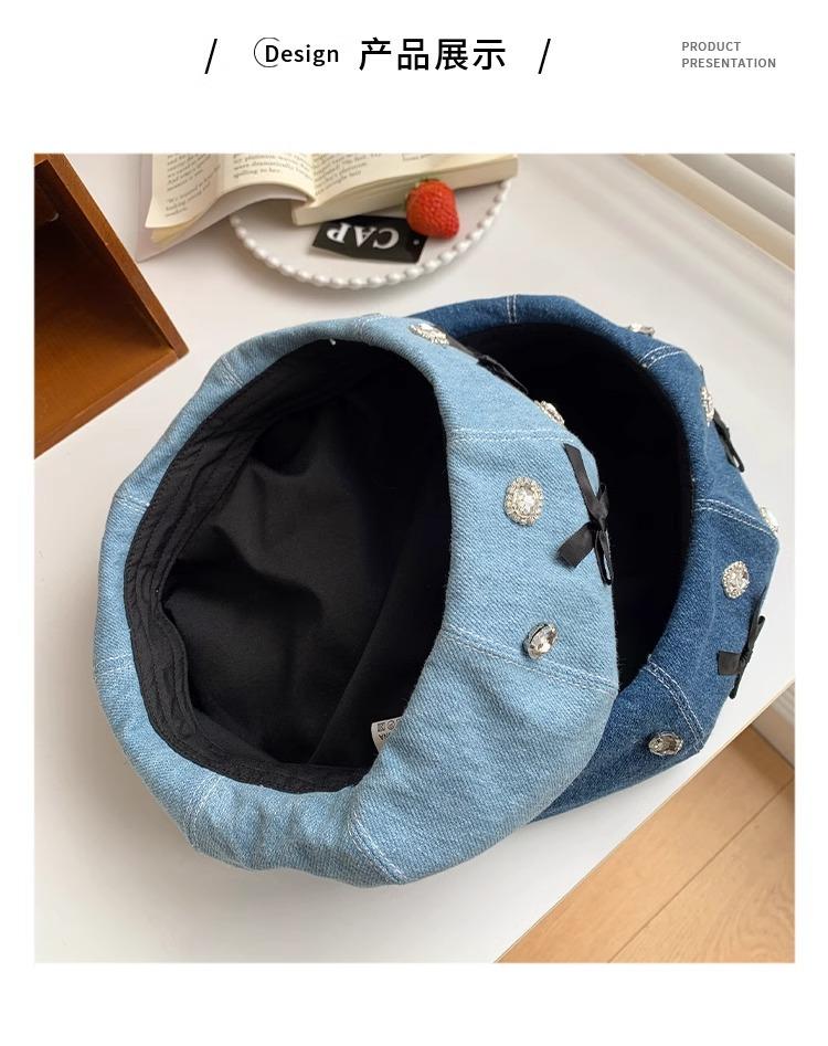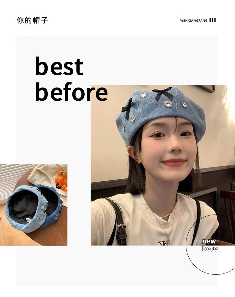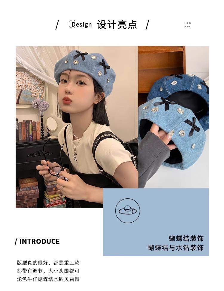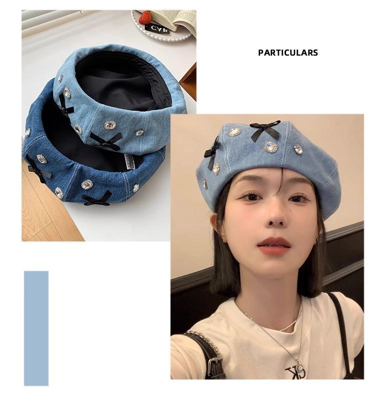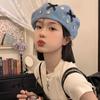 Boina de Vaquero con Pedrería para Mujer Primavera y Verano Estilo K que Muestra el Rostro Sombrero de Pintor de Botoncito Sombrero para Cabeza Grande Trendy