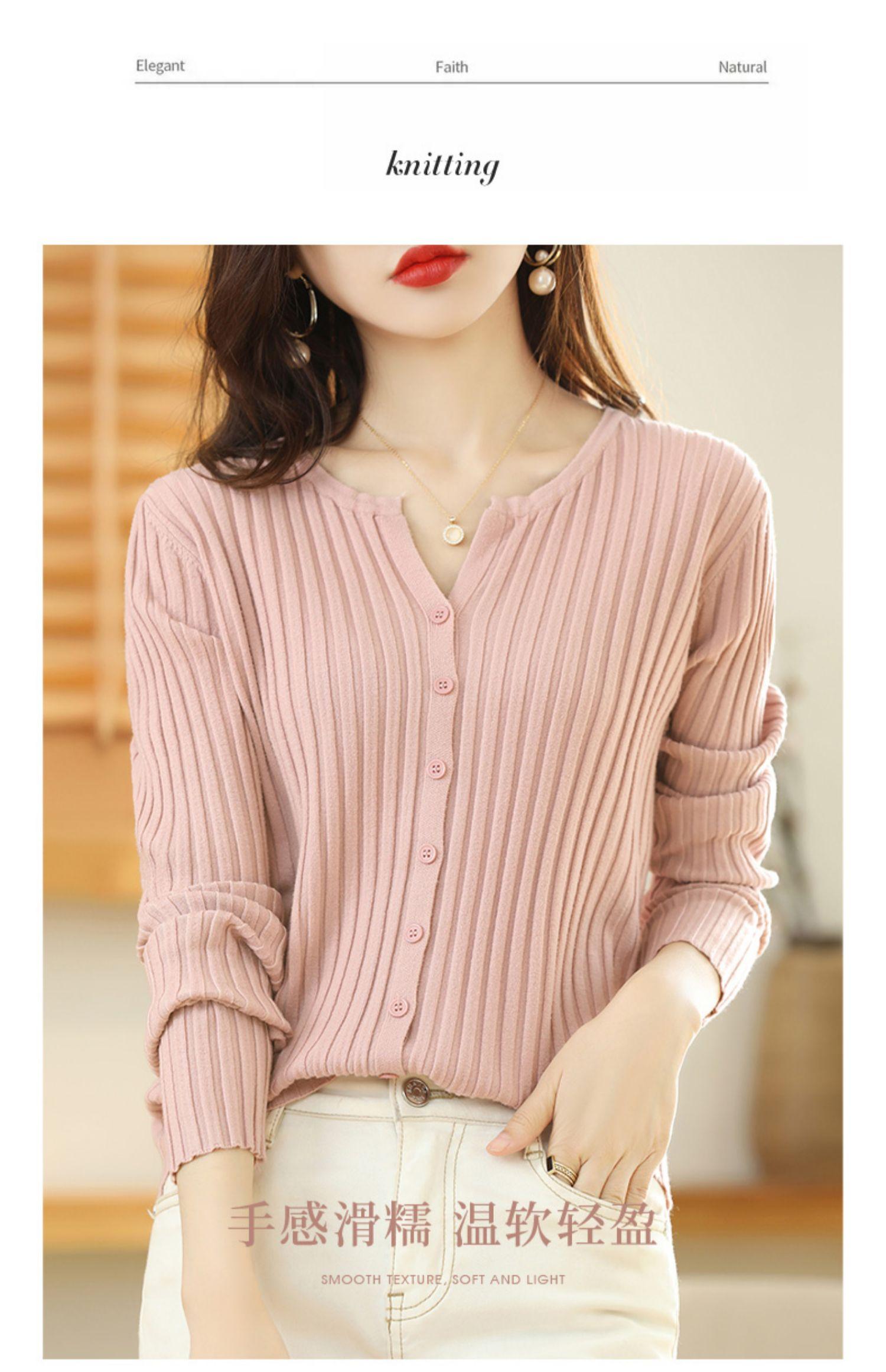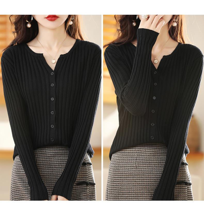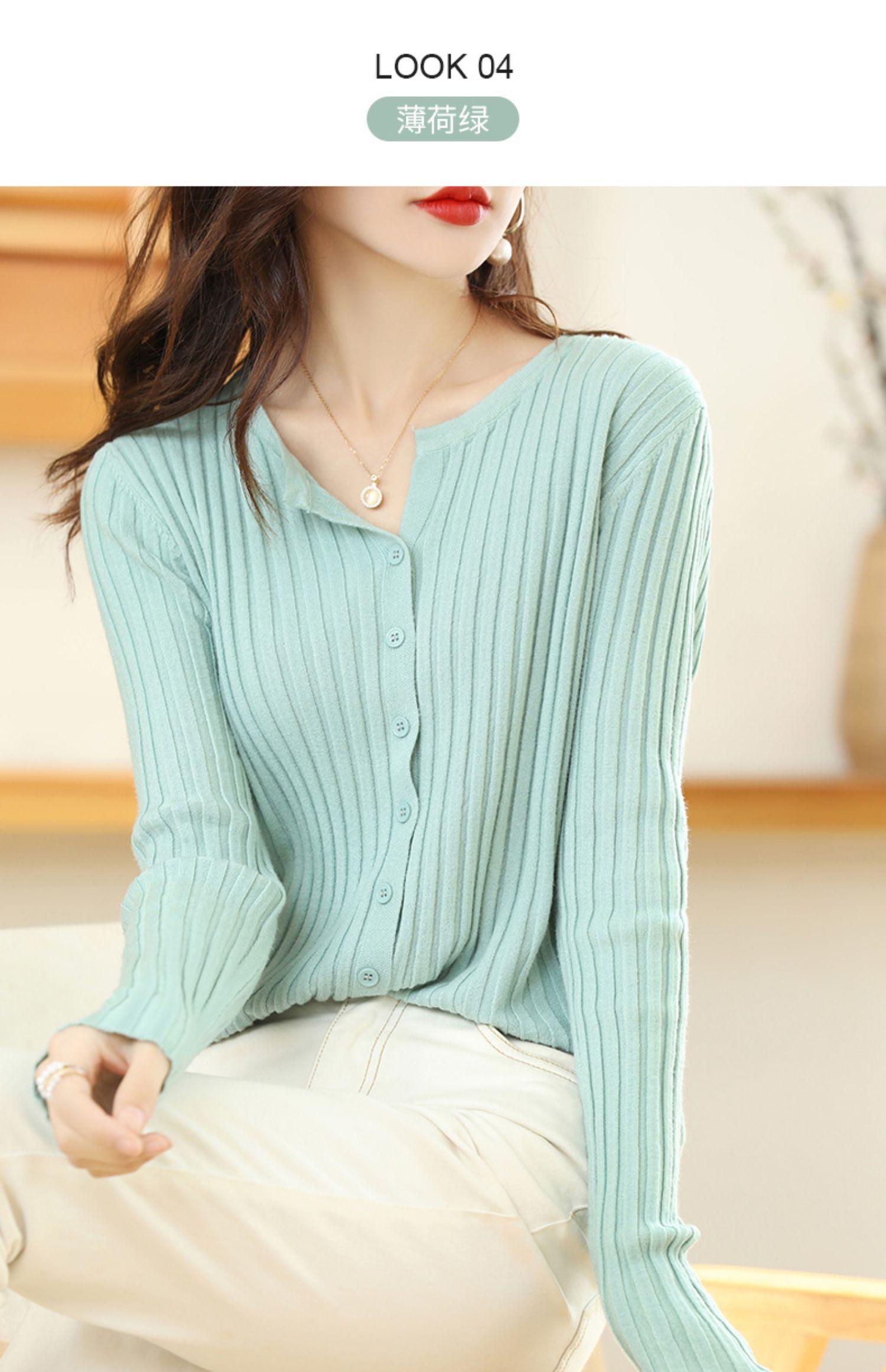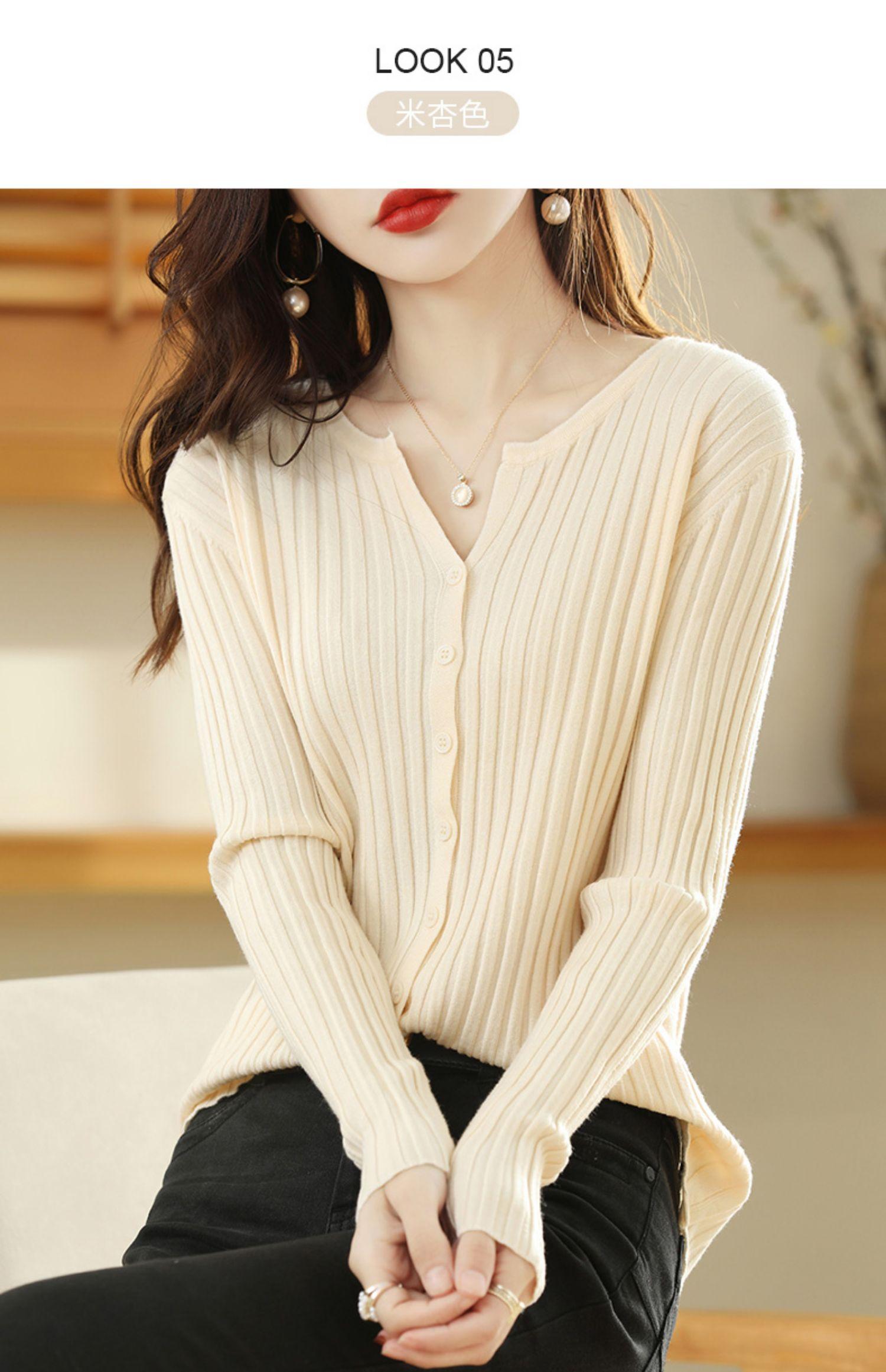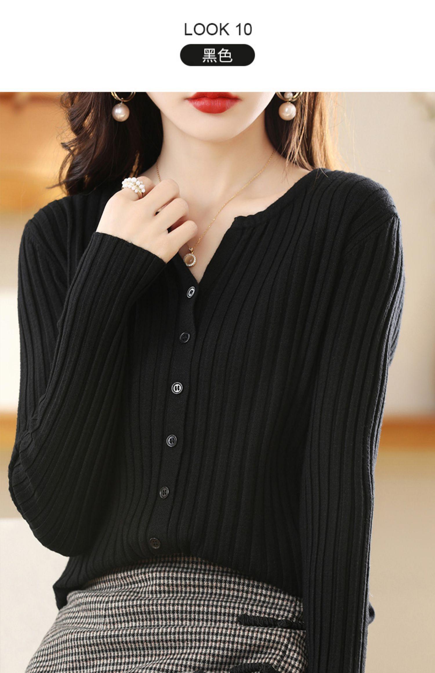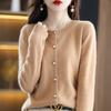 Nuevo Cárdigan de Lana de Color Sólido Abrigo Suéter de Cachemira de Cuello Redondo para Mujer Suéter Camiseta de Punto de Fondo Chaqueta