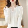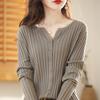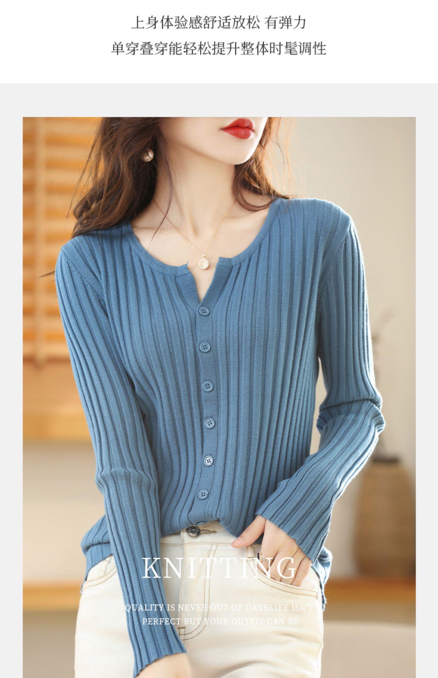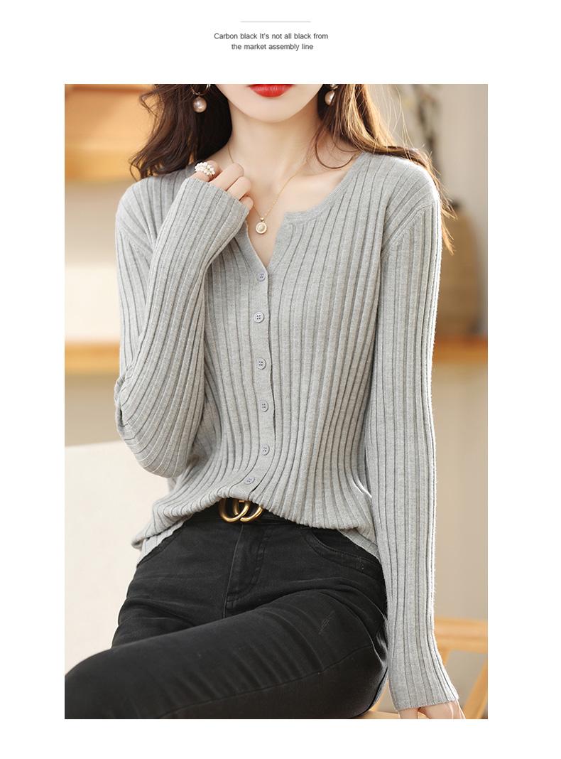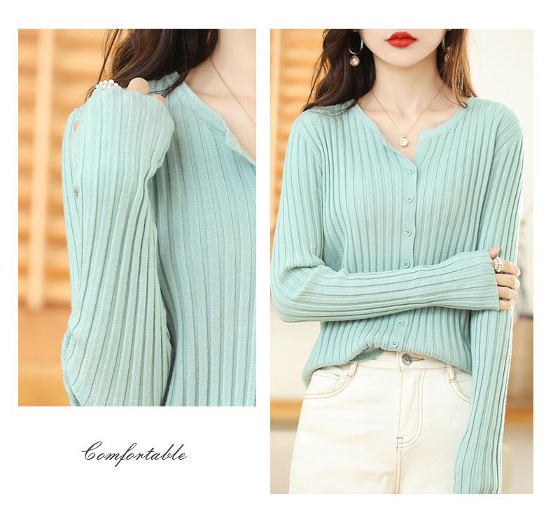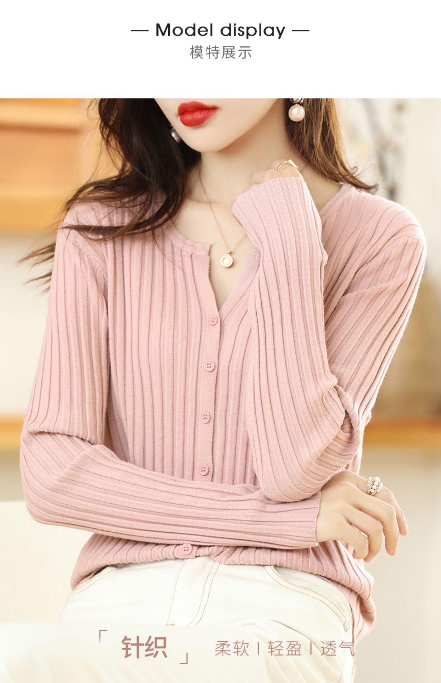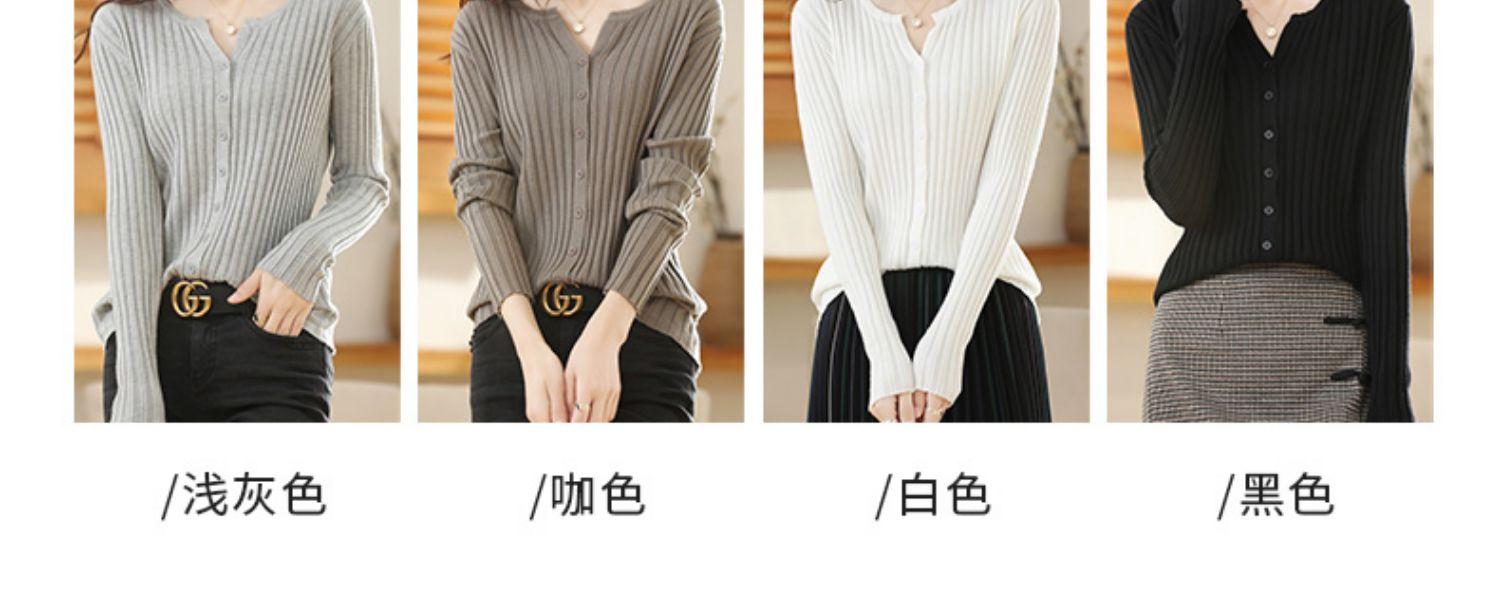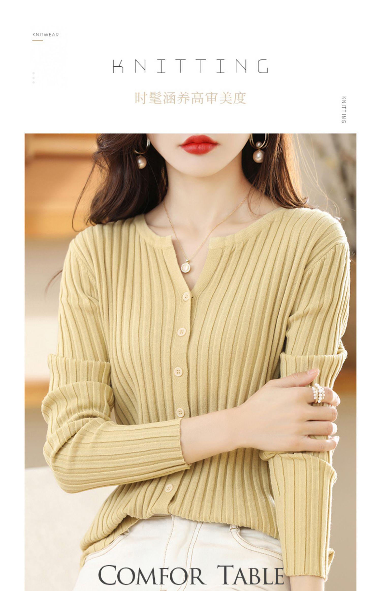 Nuevo Cárdigan de Lana de Color Sólido Abrigo Suéter de Cachemira de Cuello Redondo para Mujer Suéter Camiseta de Punto de Fondo Chaqueta