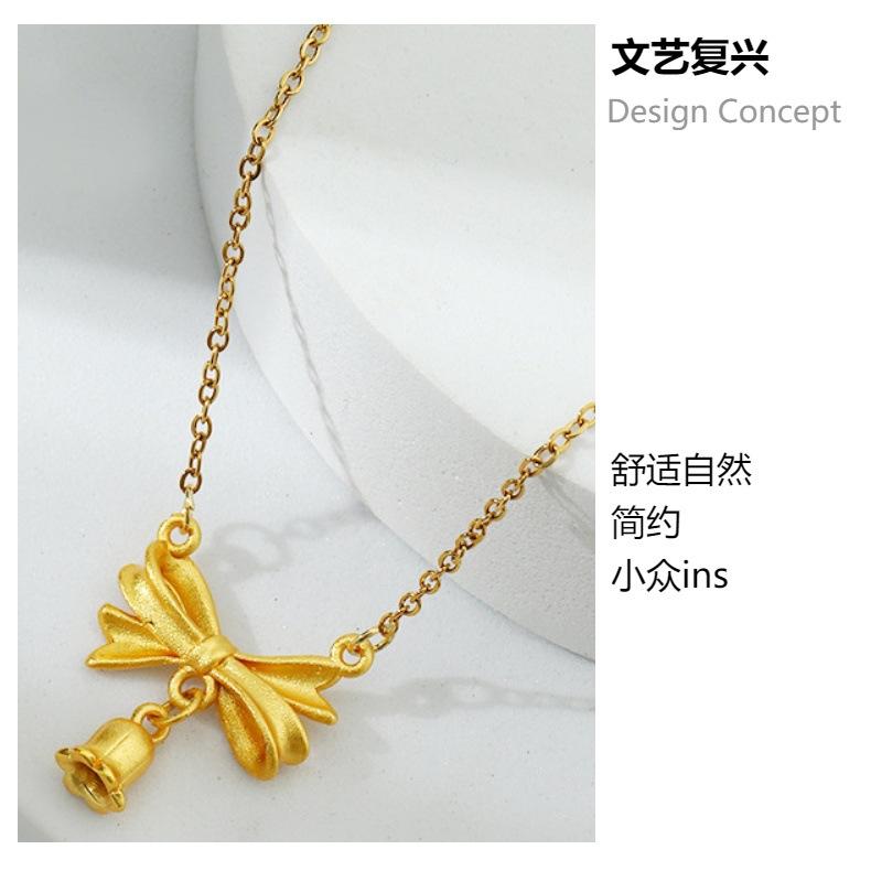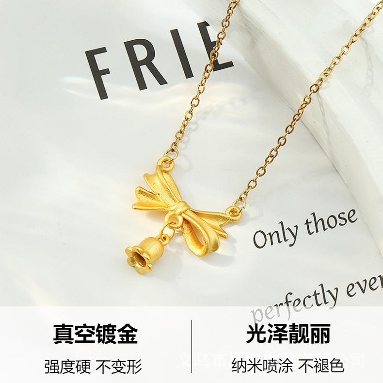 Collar de princesa popular de oro arena de Vietnam para mujer, colgante de campana de lazo retro de estilo lujoso y ligero, cadena de clavícula de acero de titanio