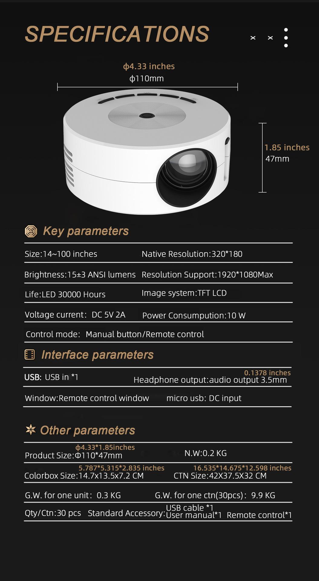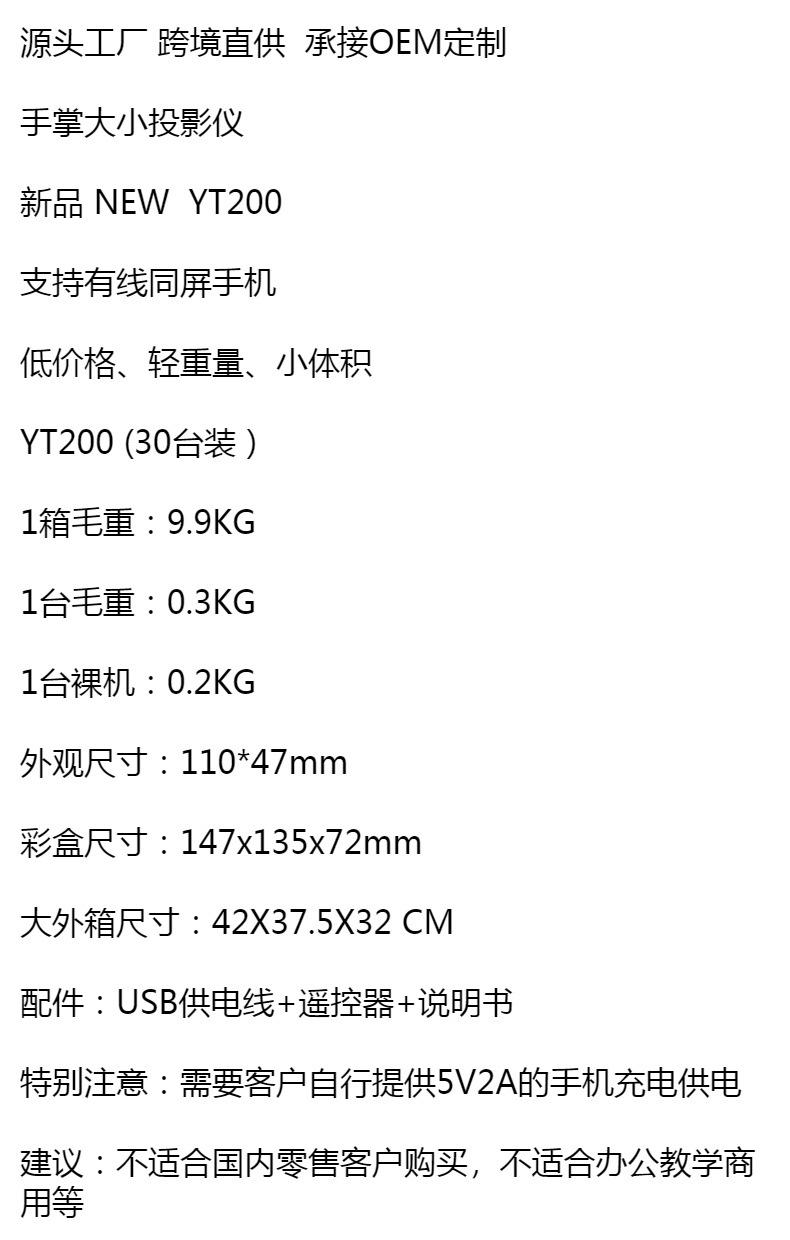 Nuevo proyector de teléfono móvil YT200 transfronterizo, miniproyector doméstico, miniatura para niños, familia, portátil, HD