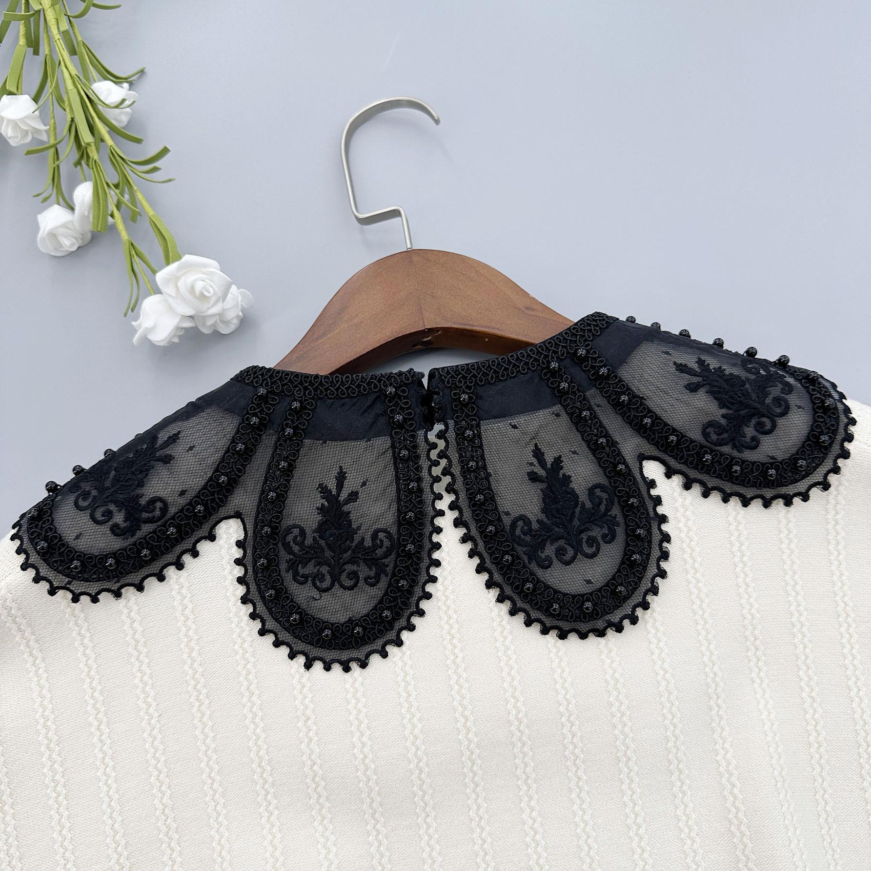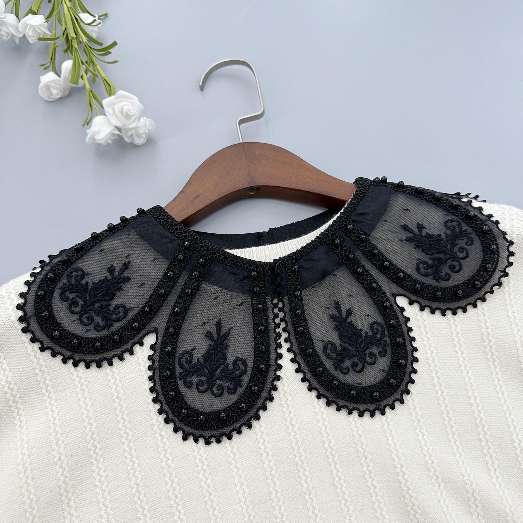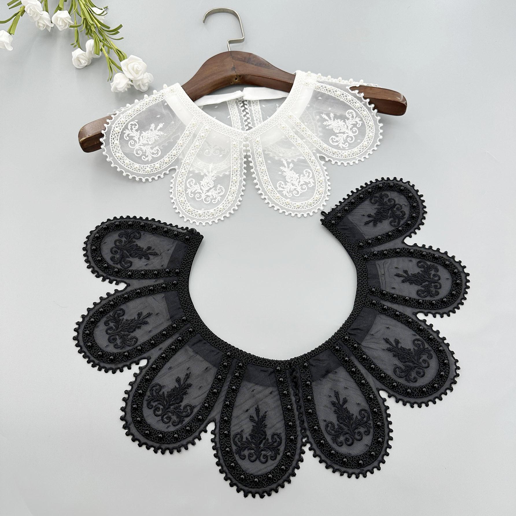 Fabricante Especializado en la Producción de Ropa Versátil y a la Moda Cuello Redondo Pétalo Encaje Bordado Pedrería Industria Pesada Cuello Falso