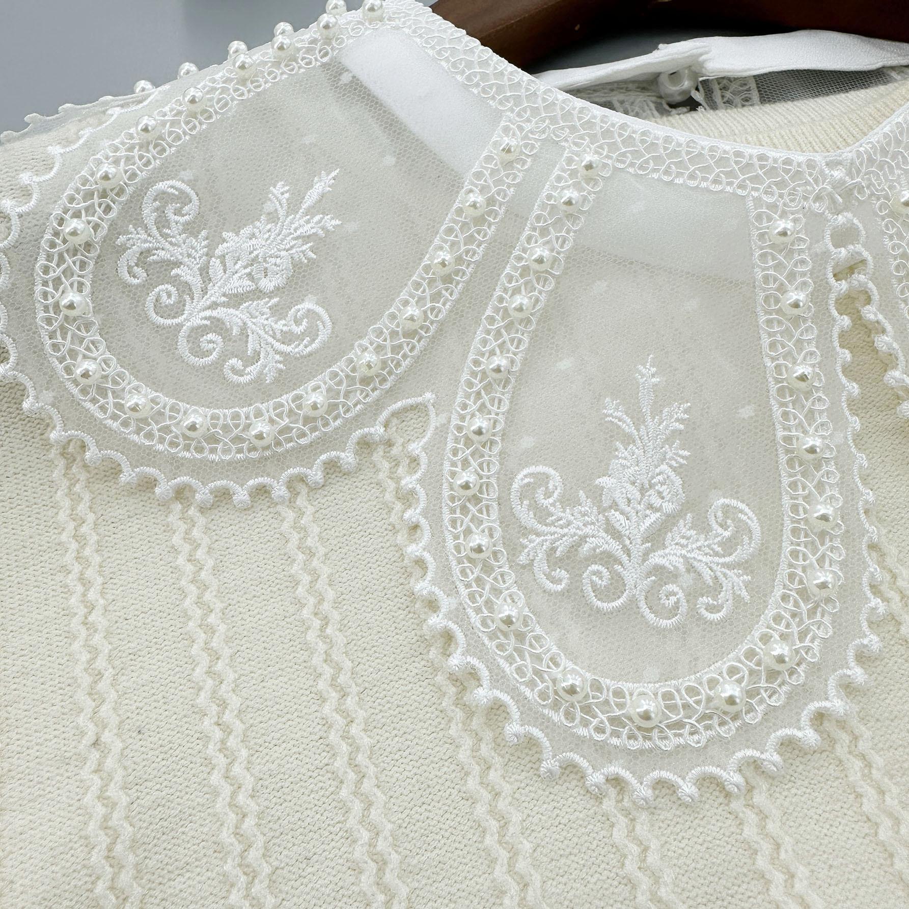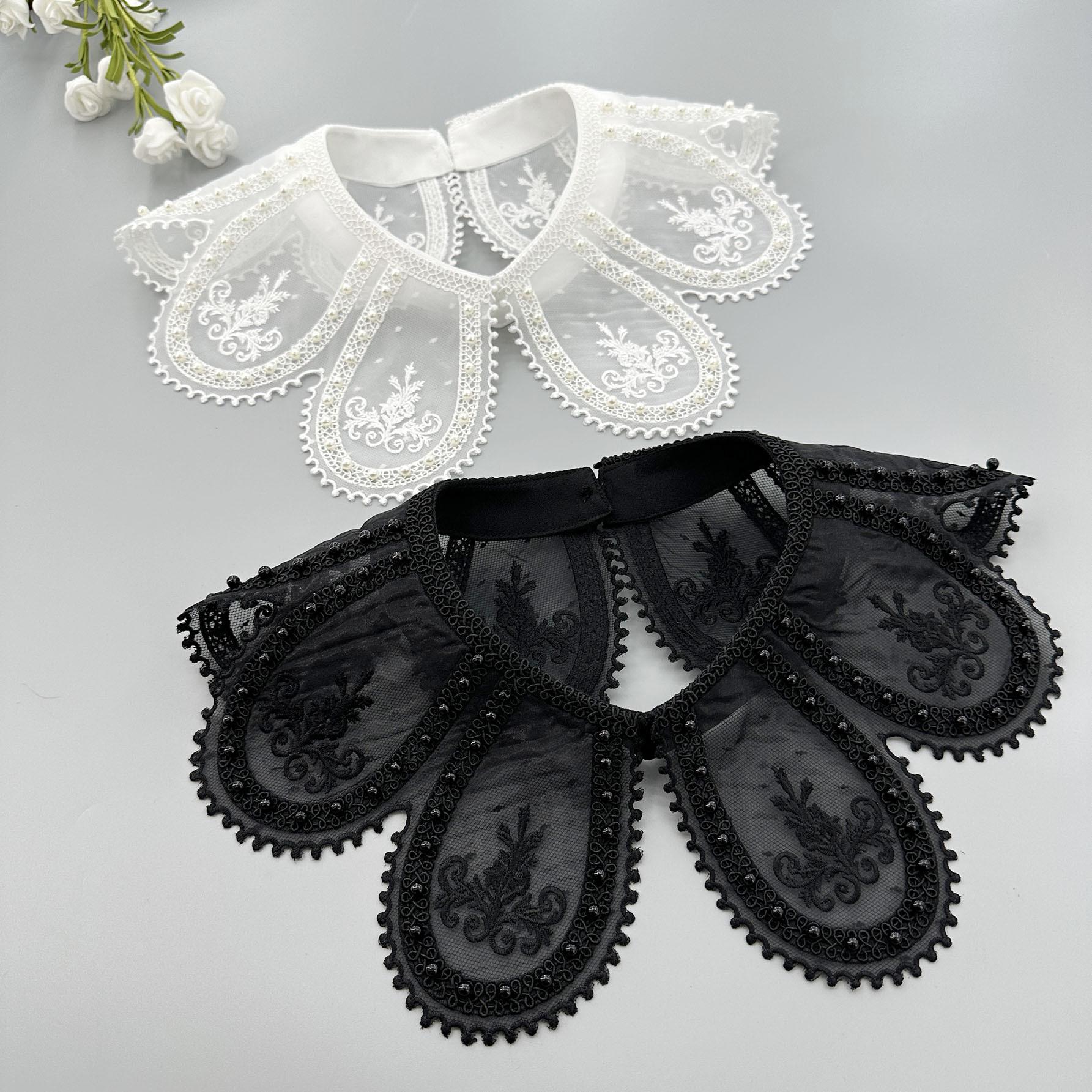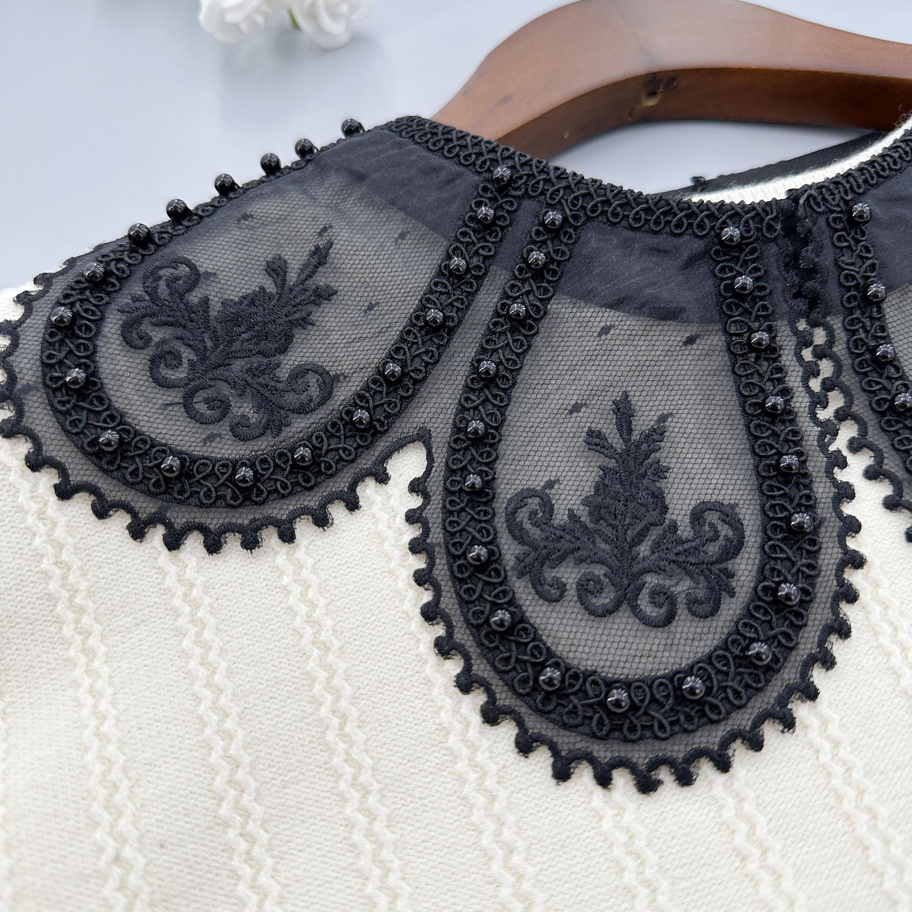 Fabricante Especializado en la Producción de Ropa Versátil y a la Moda Cuello Redondo Pétalo Encaje Bordado Pedrería Industria Pesada Cuello Falso