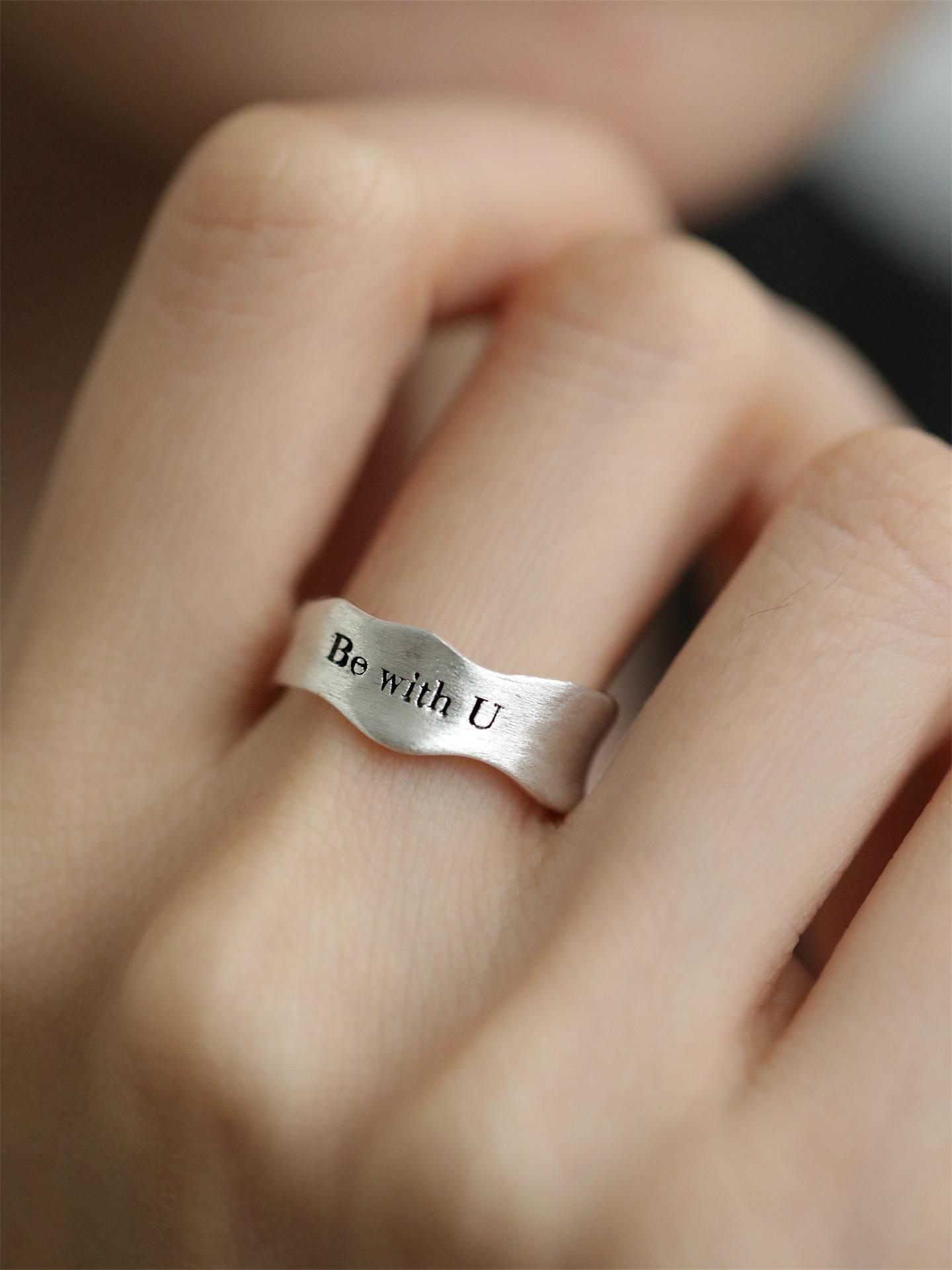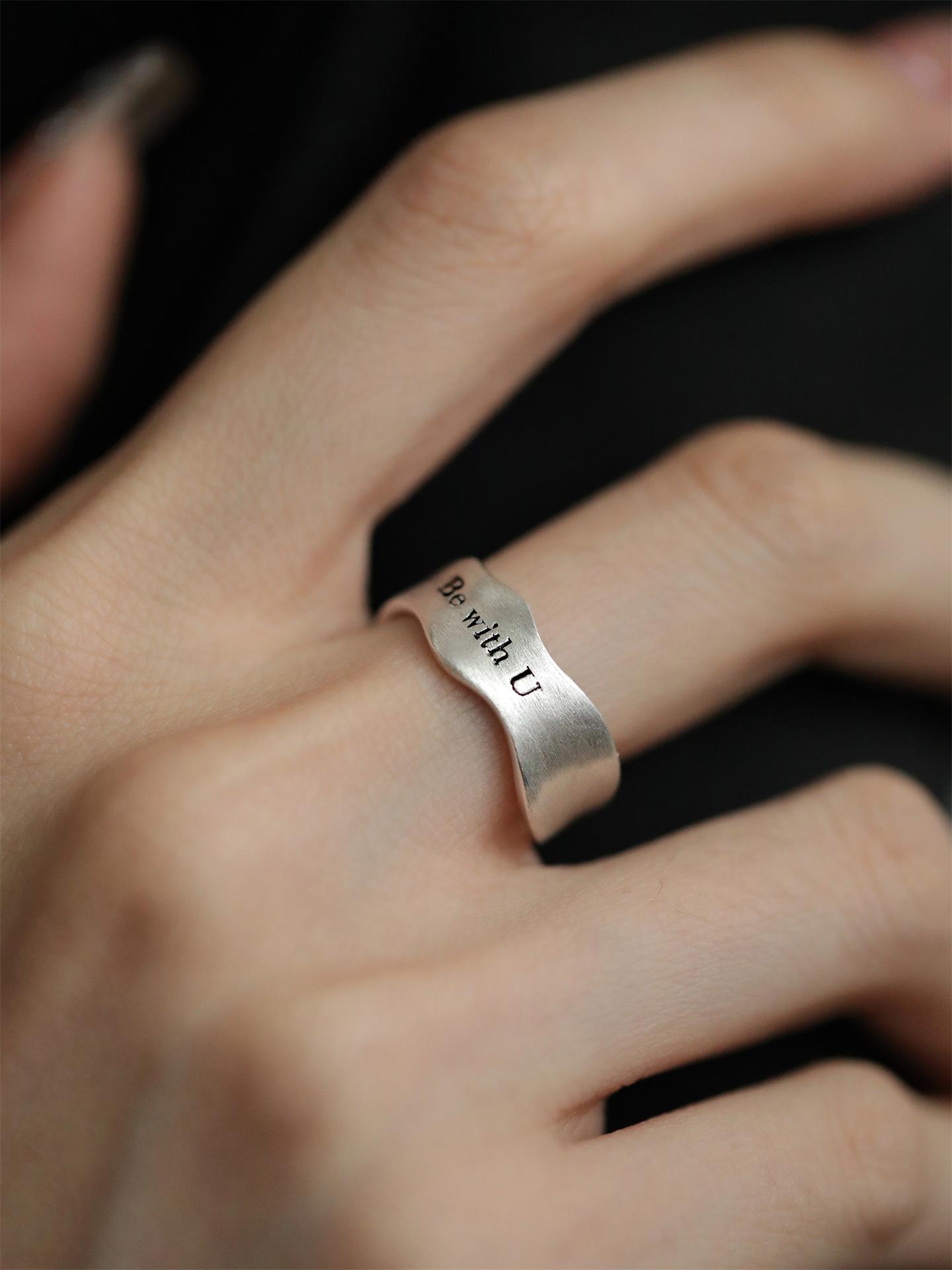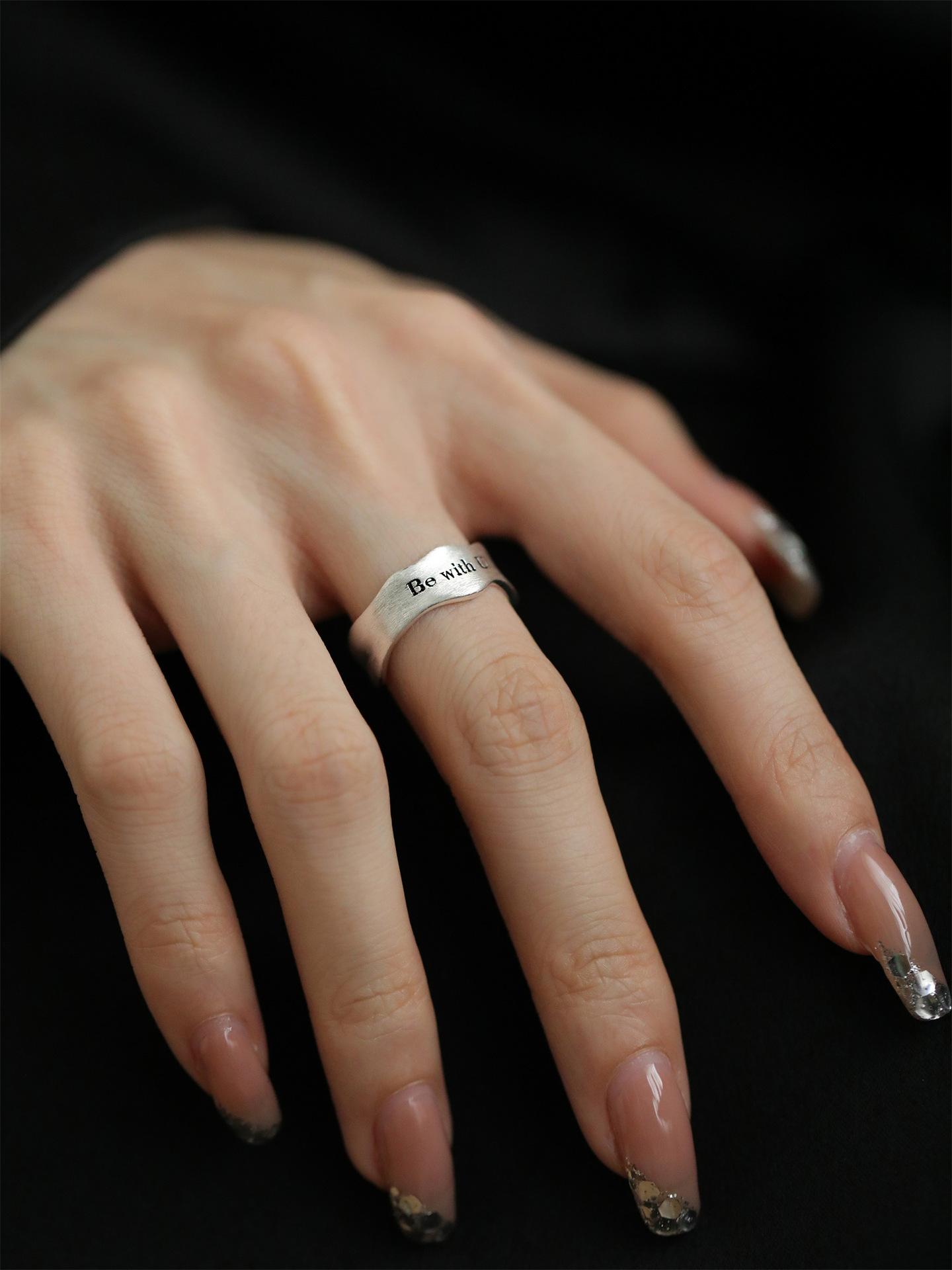 Anillo Simple de Letra Escarchada para Mujer Anillo Abierto de Plata S925 Geométrico Ondulado Estilo Frío Elegante Anillo de Dedo Hip-hop