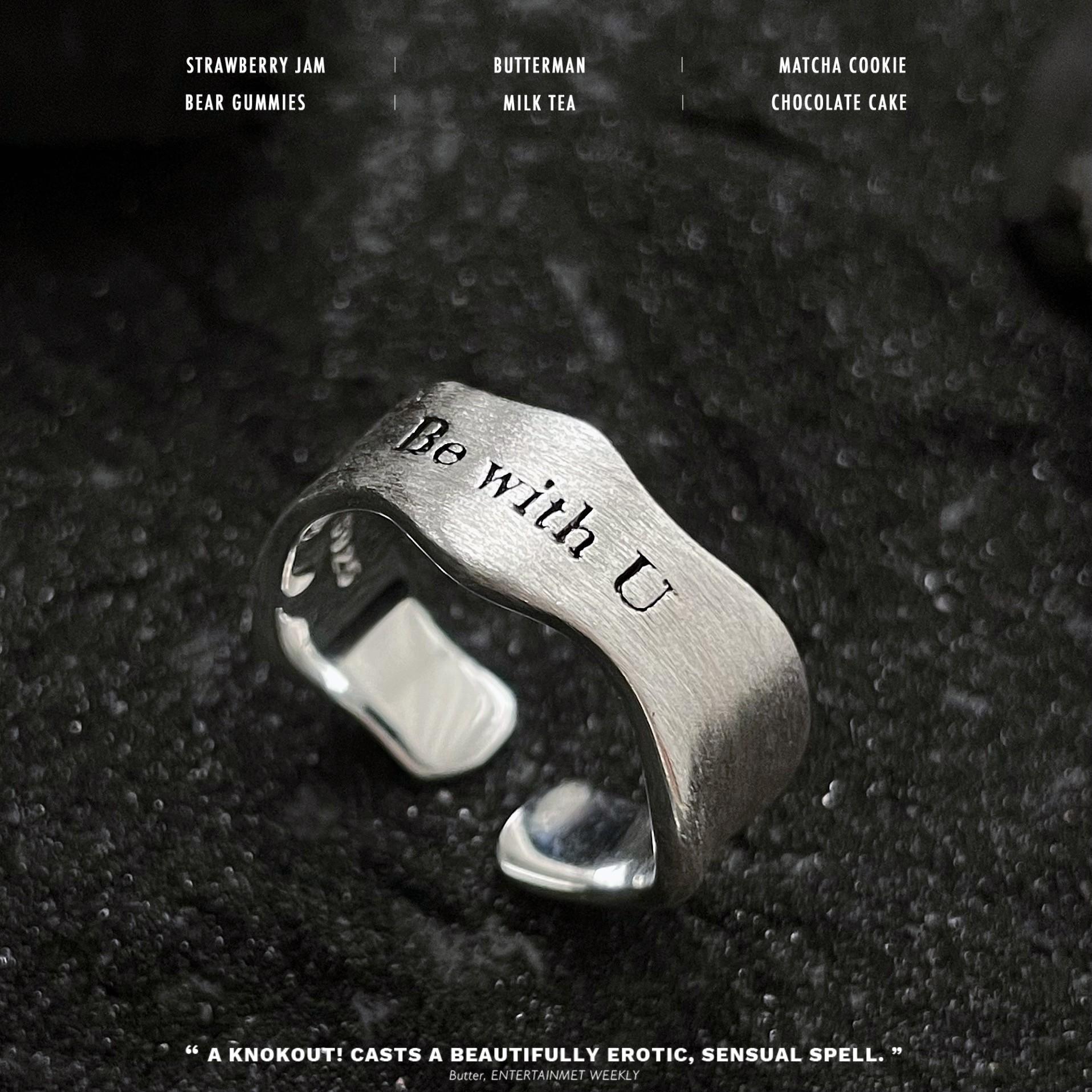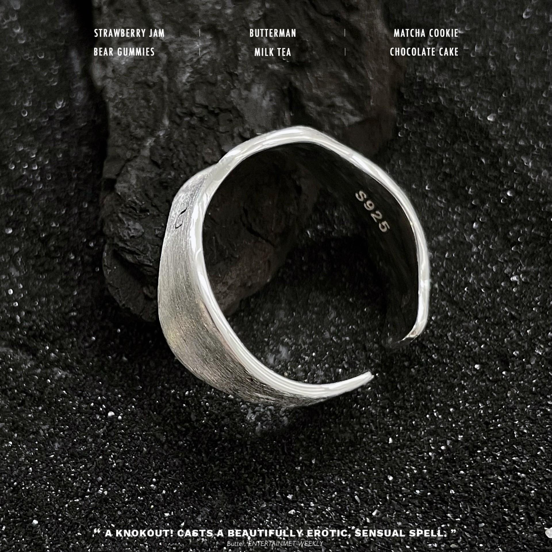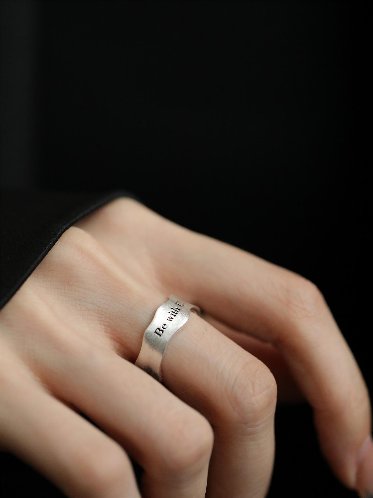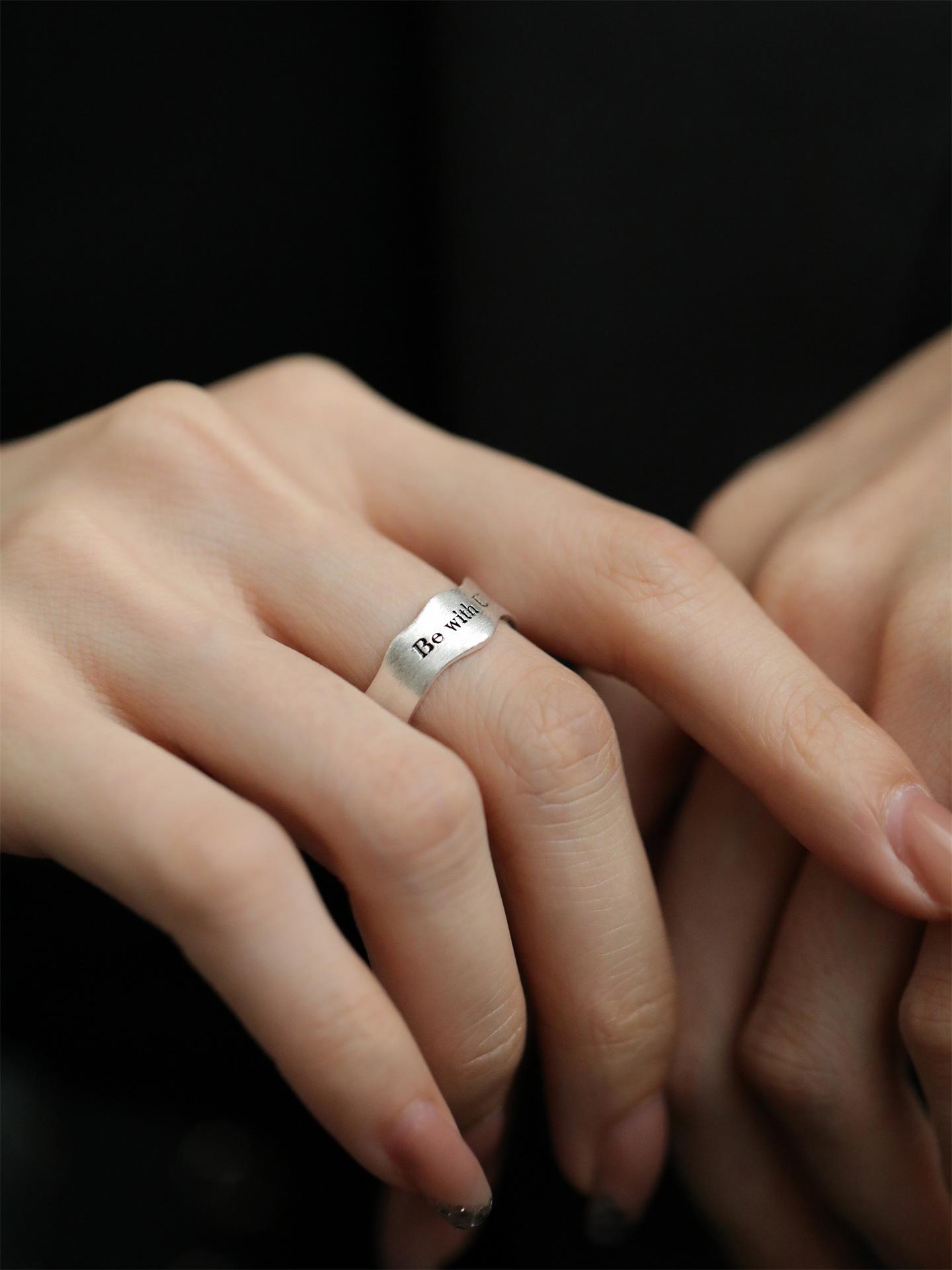 Anillo Simple de Letra Escarchada para Mujer Anillo Abierto de Plata S925 Geométrico Ondulado Estilo Frío Elegante Anillo de Dedo Hip-hop