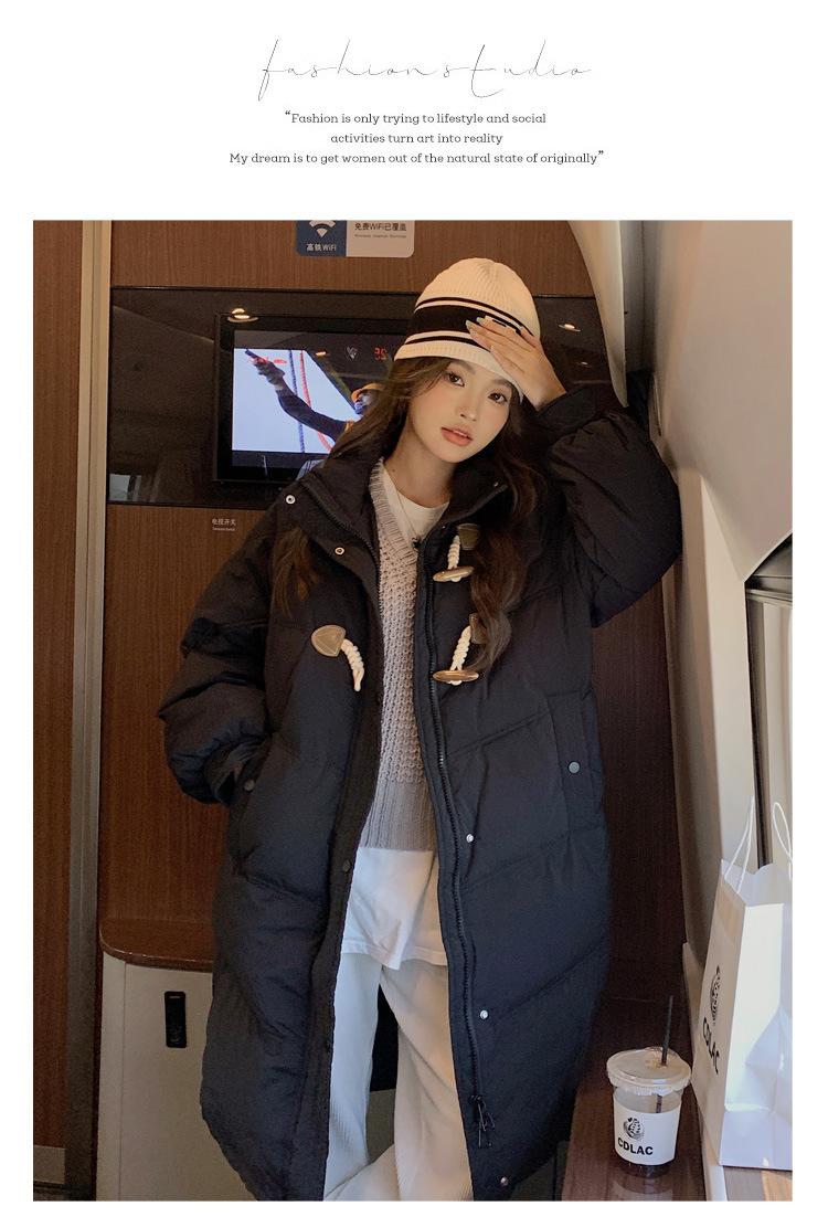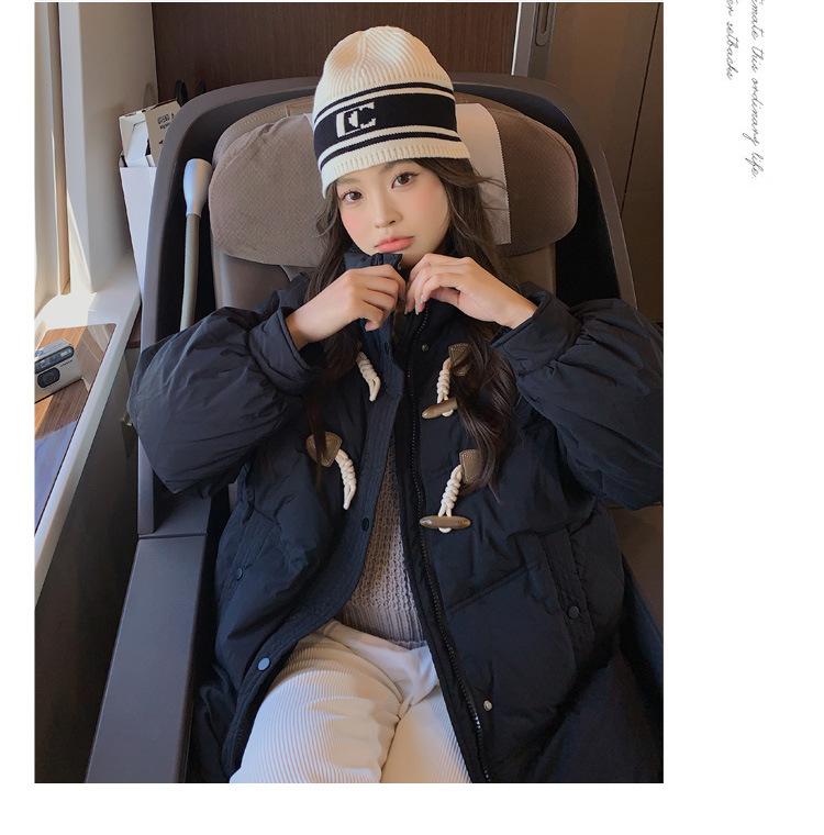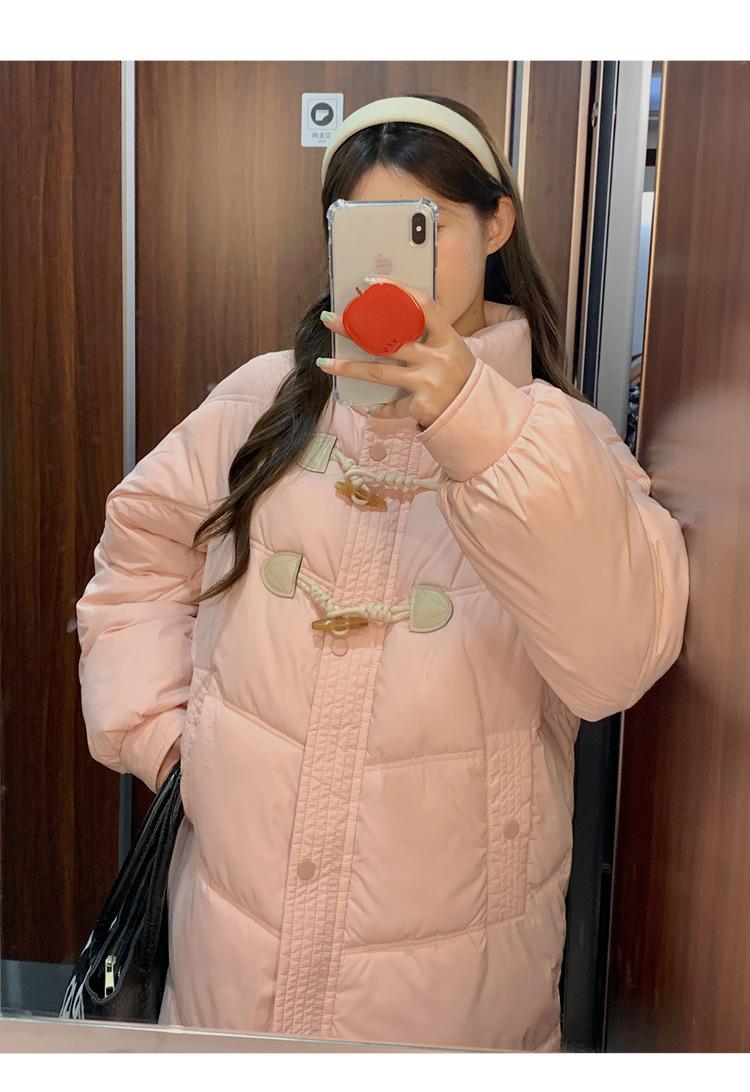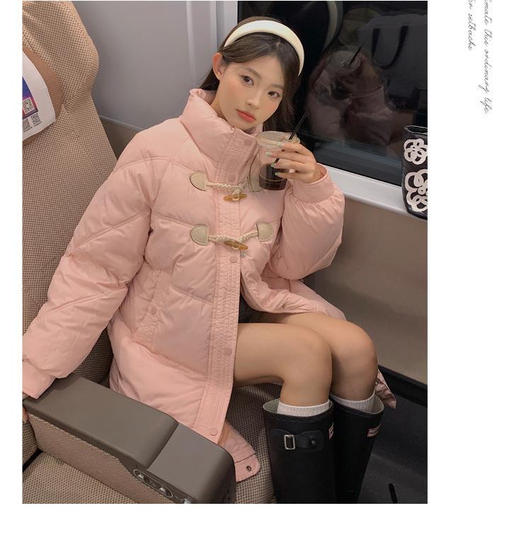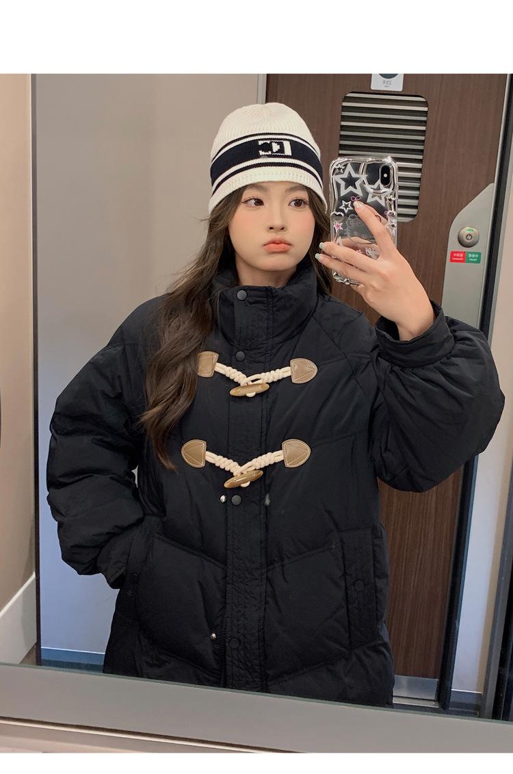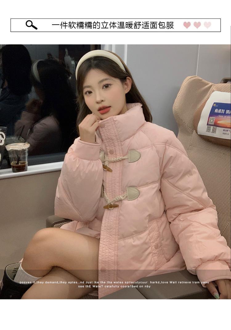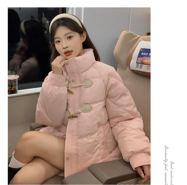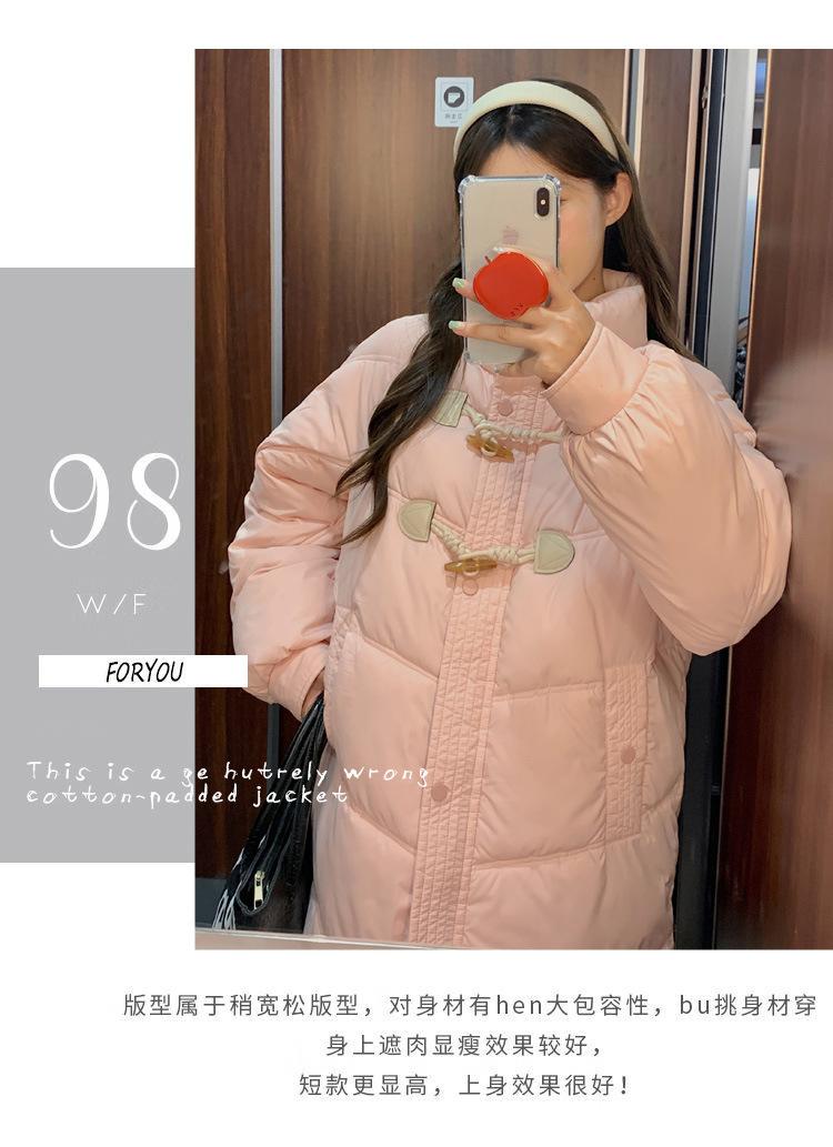 Chamarra de plumón acolchada de algodón para mujer con hebilla de cuerno oversize 2023 Invierno nuevo estilo coreano a la moda holgada adelgazante chamarra acolchada de algodón