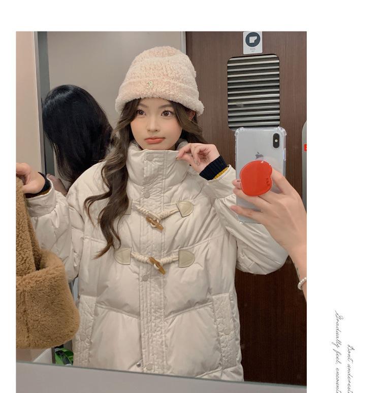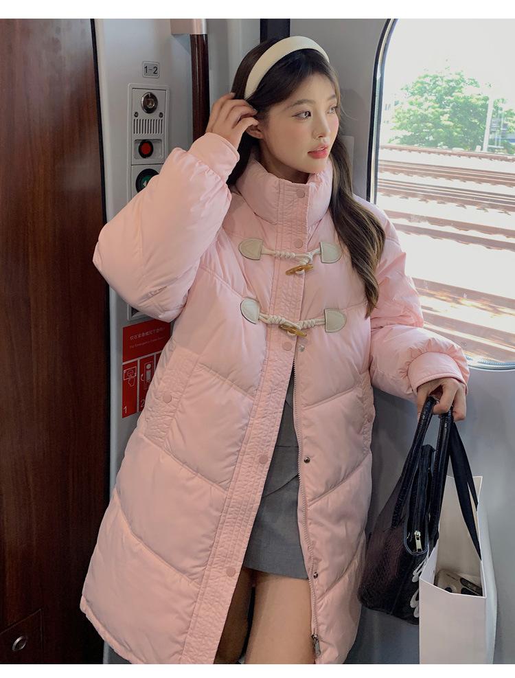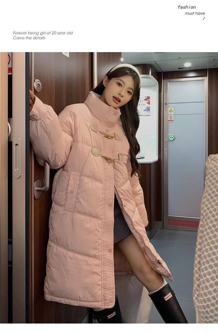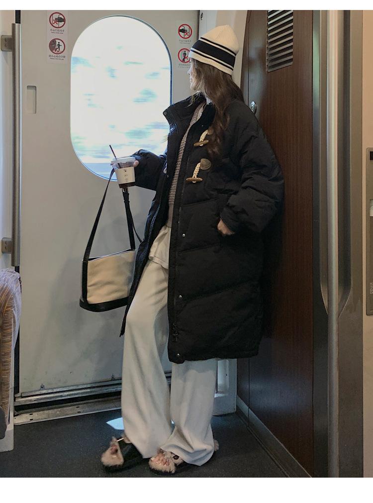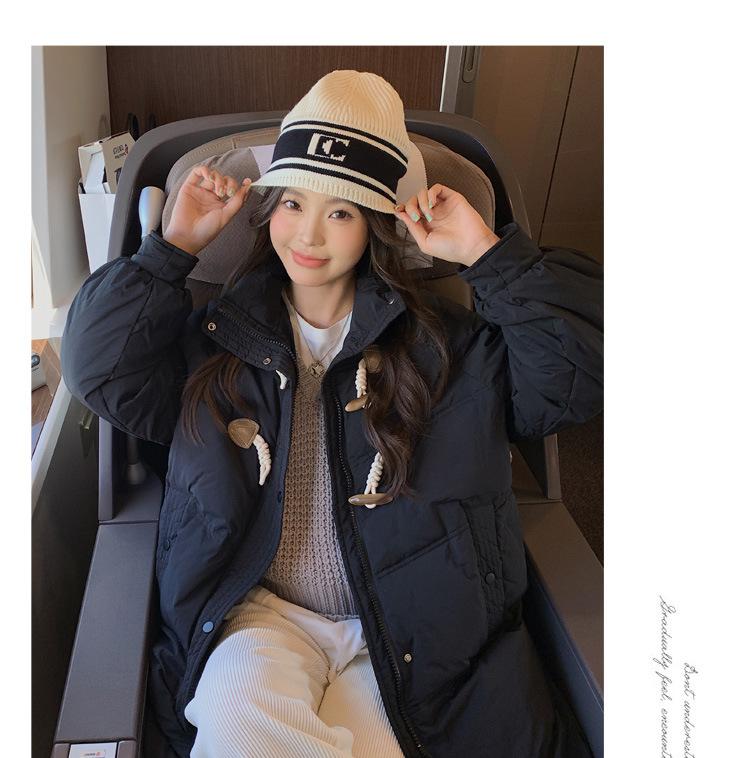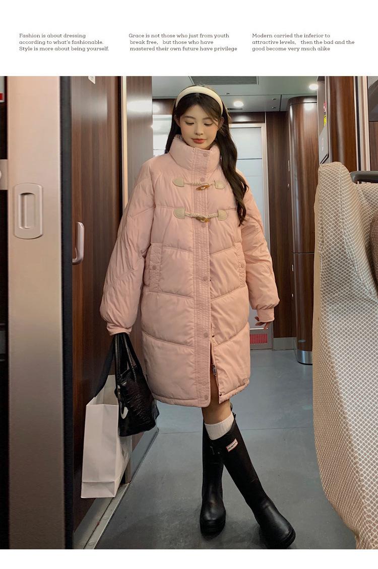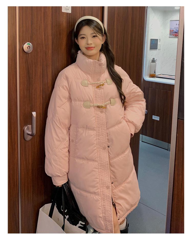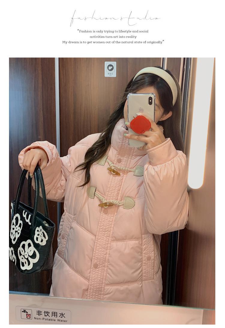 Chamarra de plumón acolchada de algodón para mujer con hebilla de cuerno oversize 2023 Invierno nuevo estilo coreano a la moda holgada adelgazante chamarra acolchada de algodón
