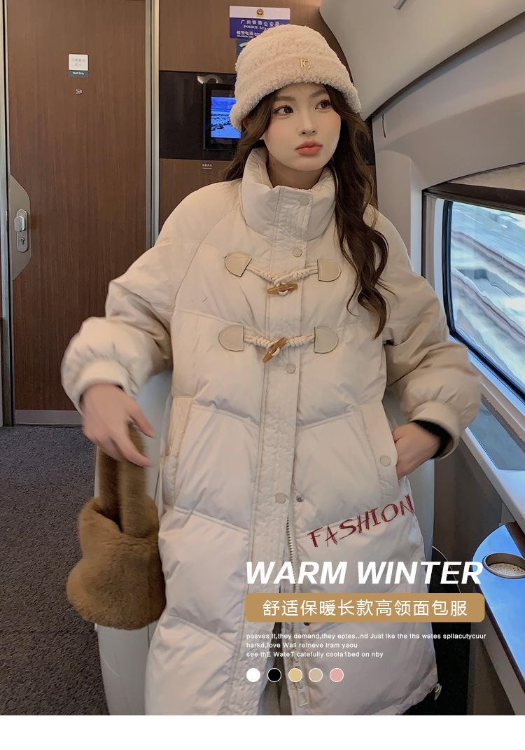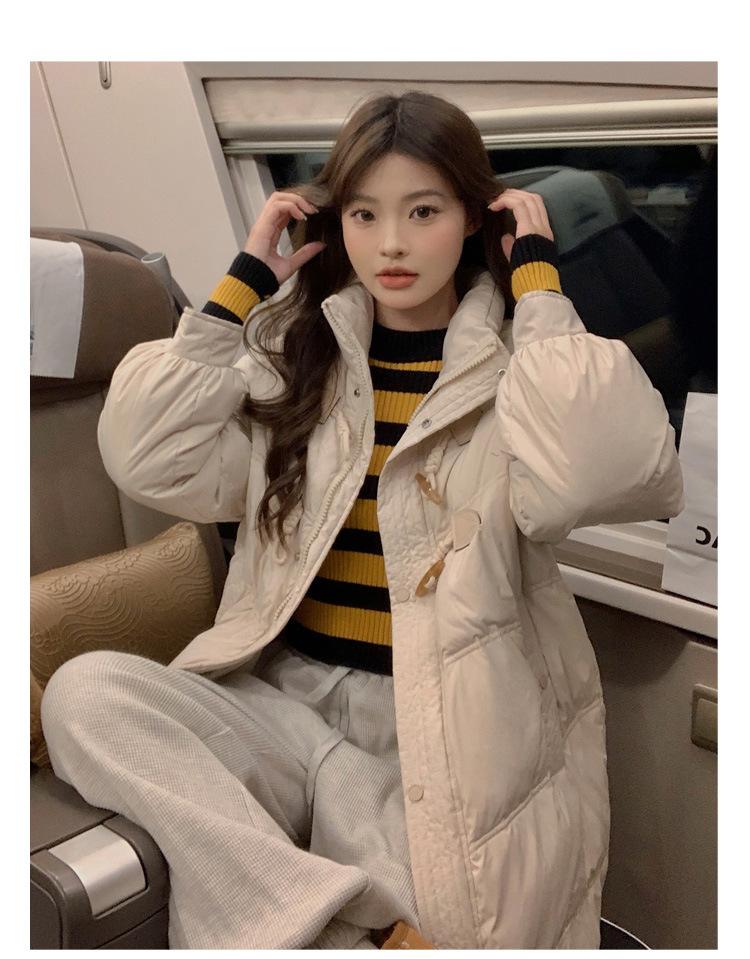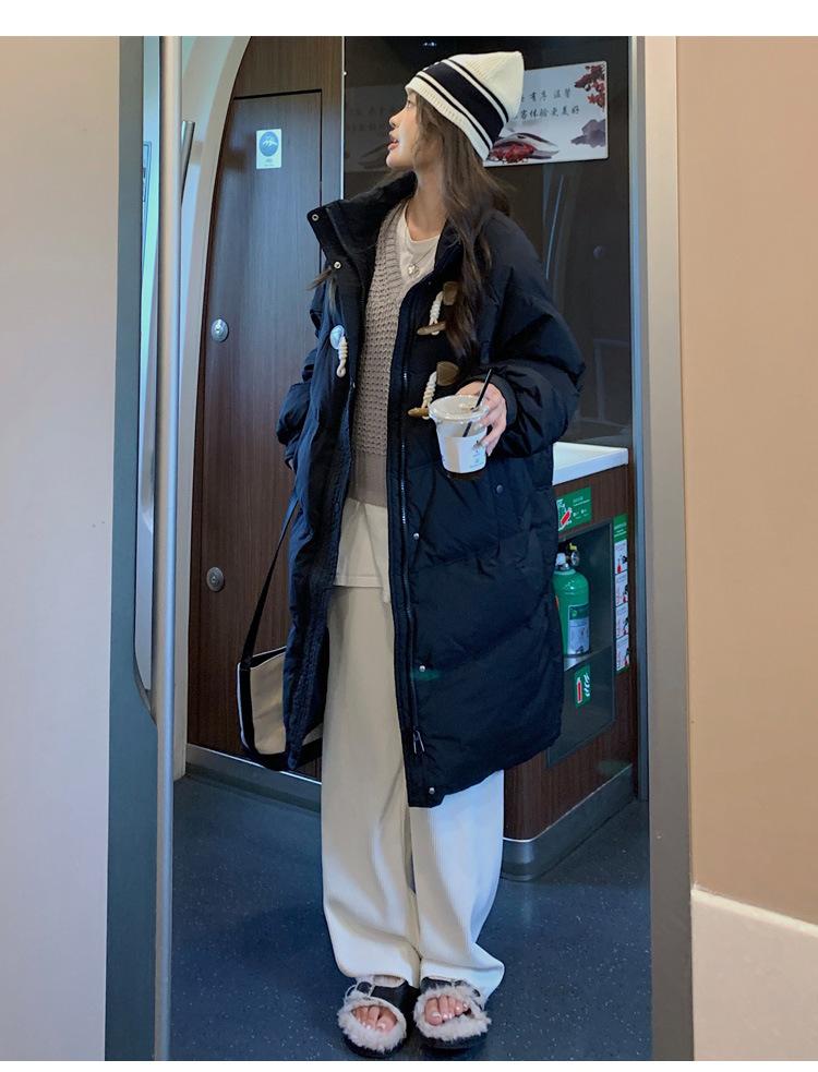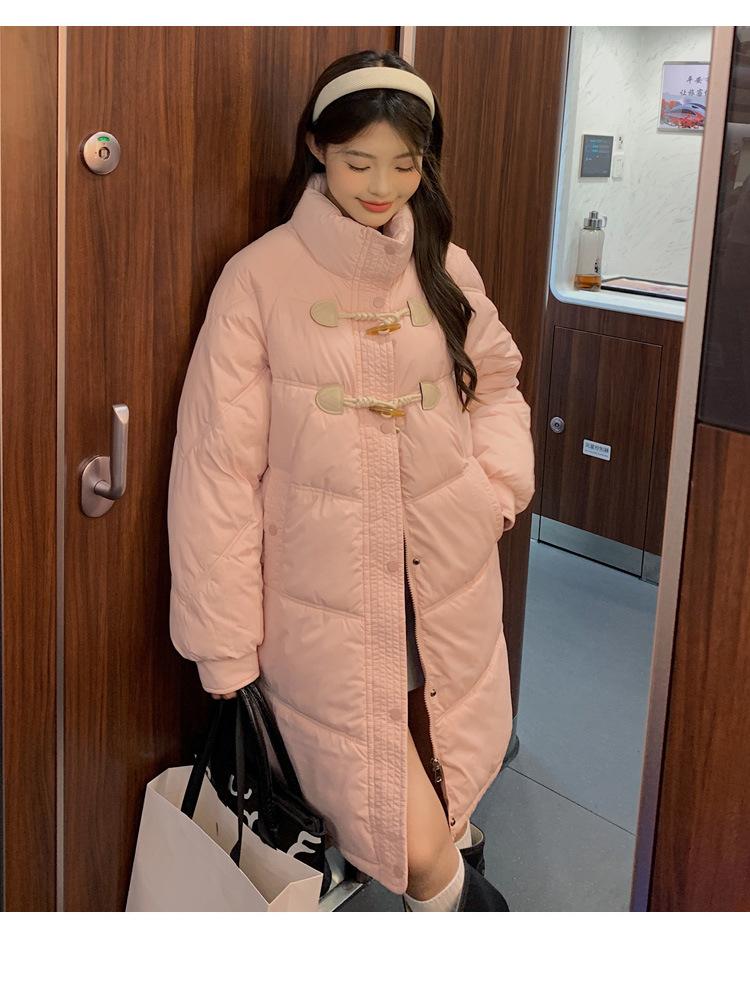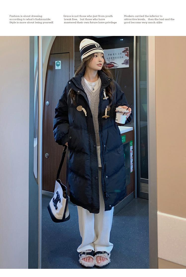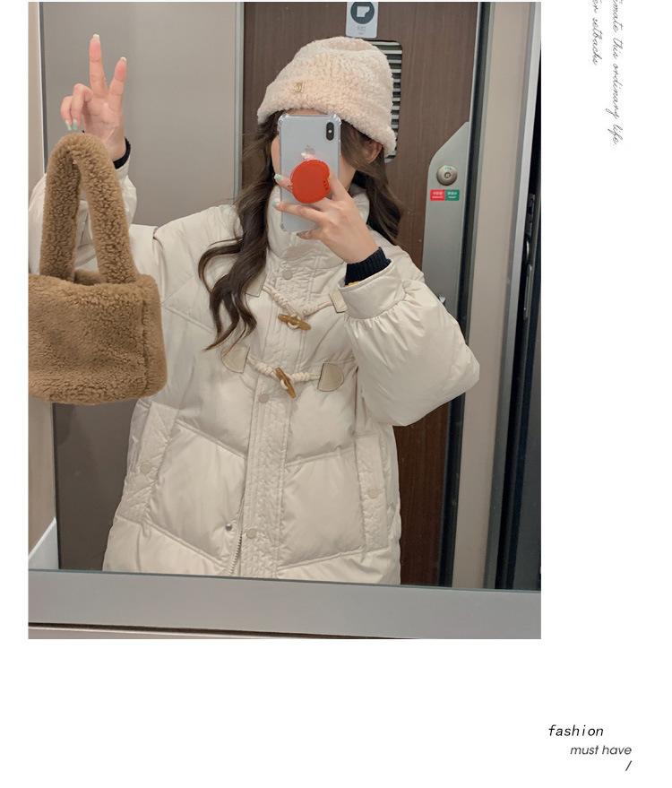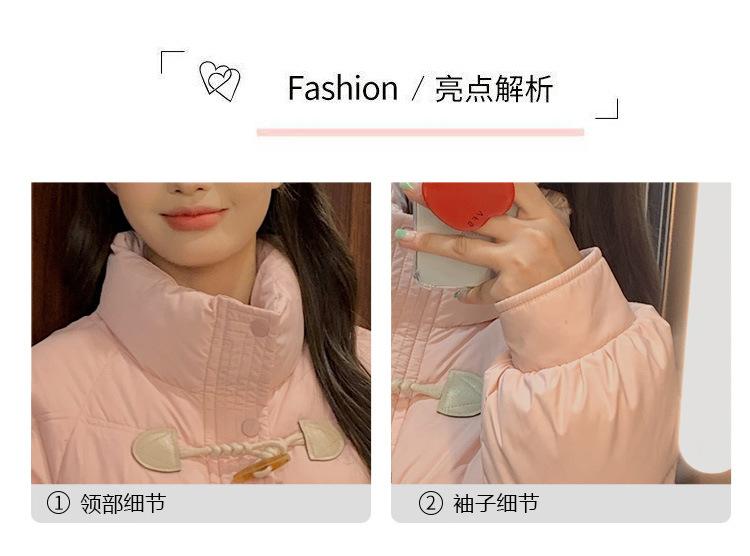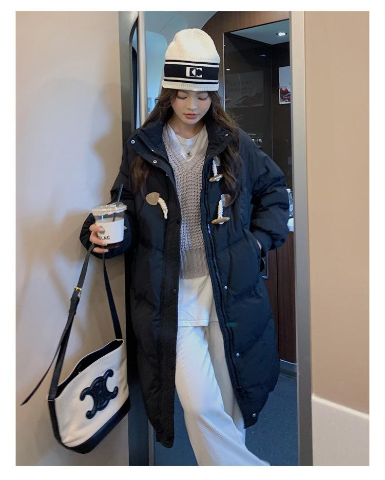 Chamarra de plumón acolchada de algodón para mujer con hebilla de cuerno oversize 2023 Invierno nuevo estilo coreano a la moda holgada adelgazante chamarra acolchada de algodón
