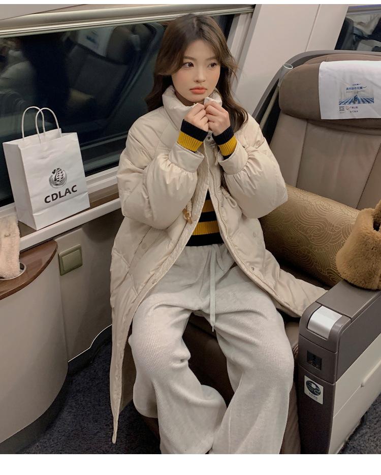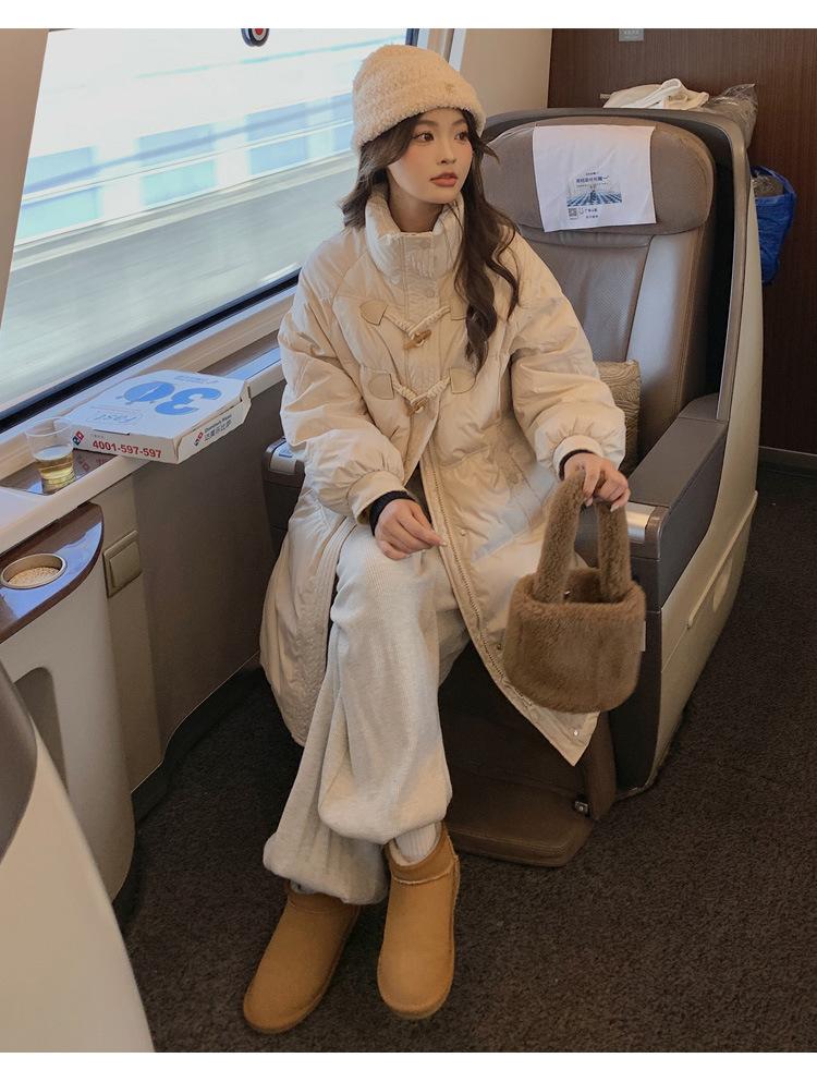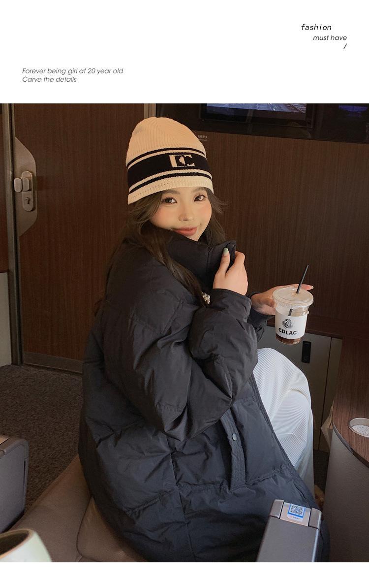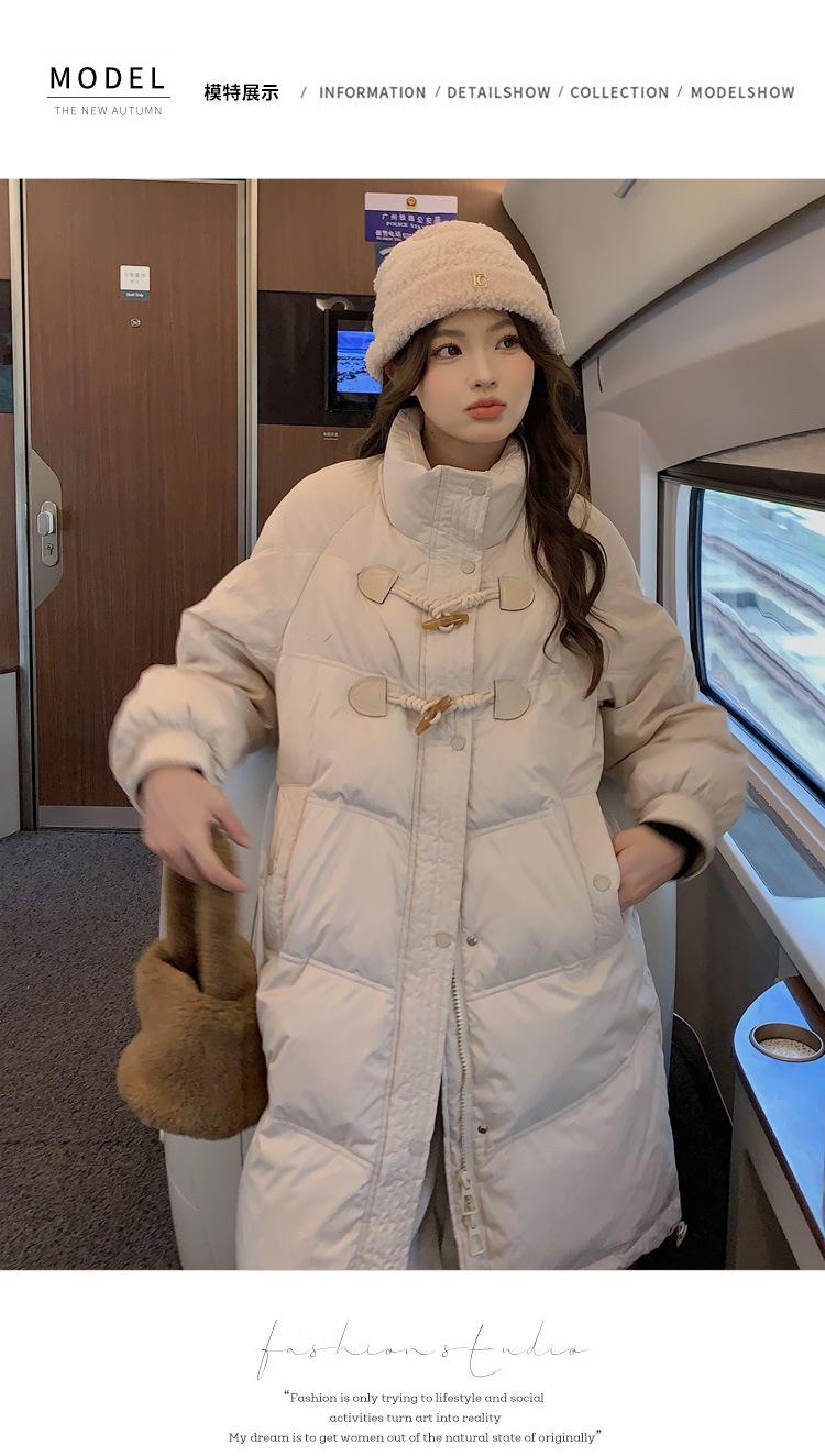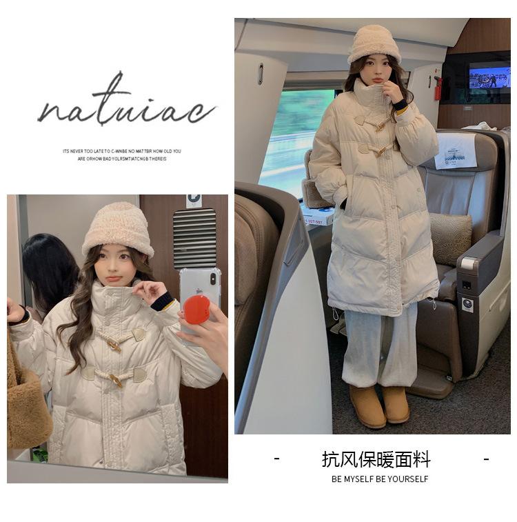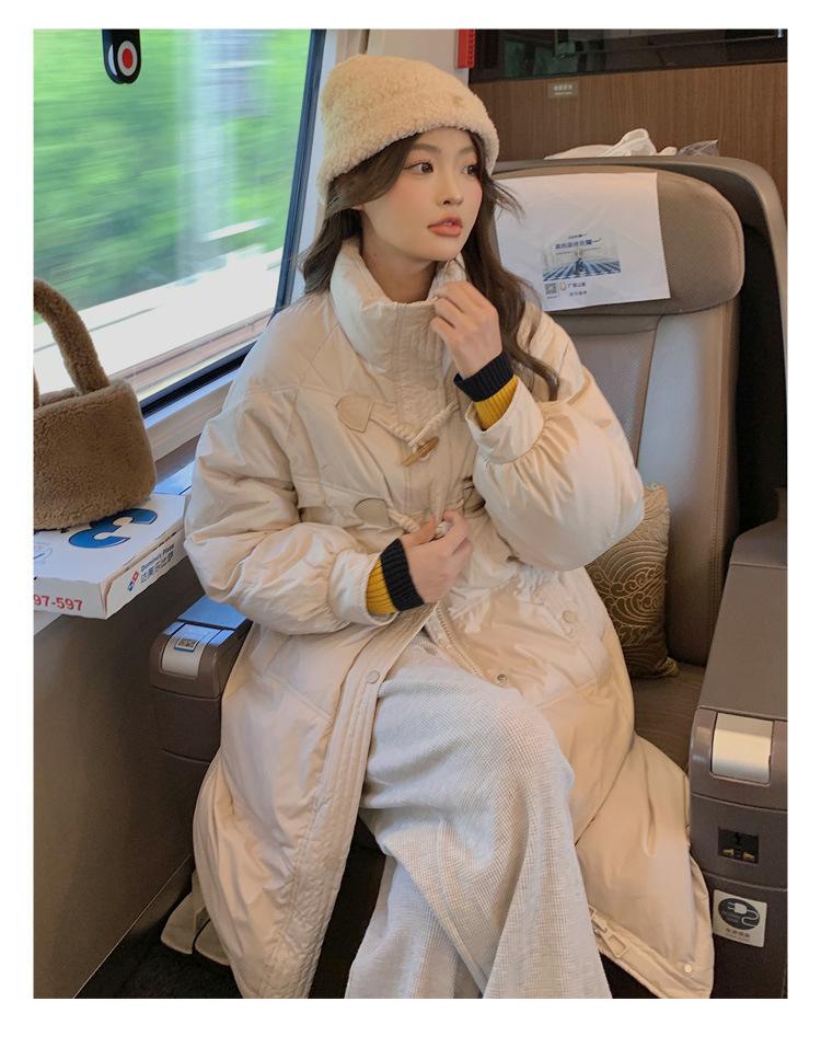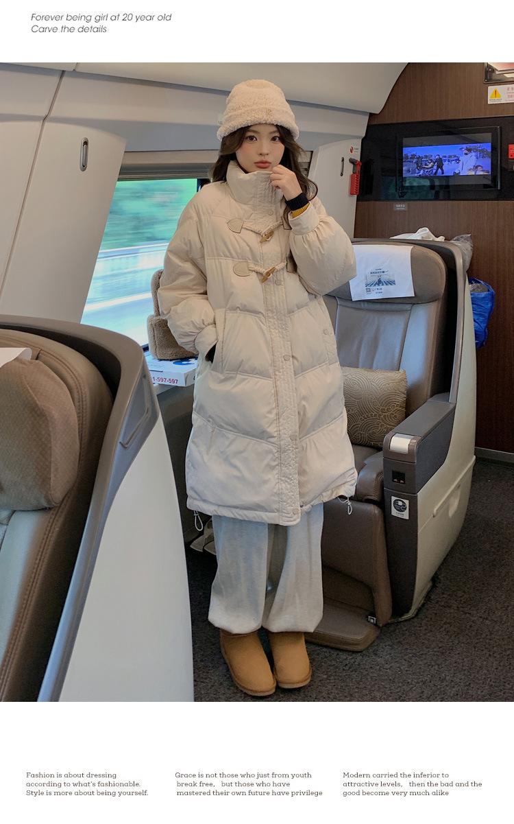 Chamarra de plumón acolchada de algodón para mujer con hebilla de cuerno oversize 2023 Invierno nuevo estilo coreano a la moda holgada adelgazante chamarra acolchada de algodón