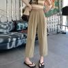 Pantalones Harlan caqui para mujer, novedad de verano 2024, pantalones casuales de cintura alta, pantalones anchos recortados, pantalones zanahoria sueltos de talla grande