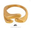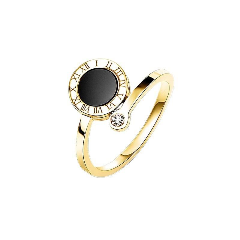 Anillo abierto de acero de titanio con concha de estrella y número romano europeo, anillo anillo anillo anillo joyería de oro de 18 quilates