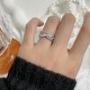 Anillo de dedo índice abierto con fila de diamantes microincrustados, estilo frío, lujo ligero de nicho, diseño exquisito, moda, personalidad, sentido de alta gama