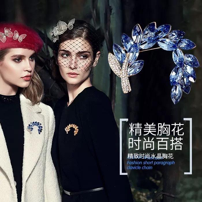 Broche de luna de cristal de alta calidad, diseño de nicho femenino, pin Joker, ramillete de cristal de imitación, accesorios para traje, venta al por mayor