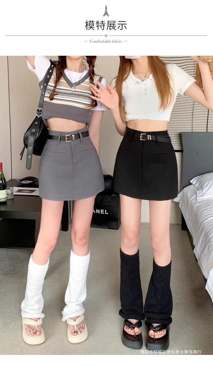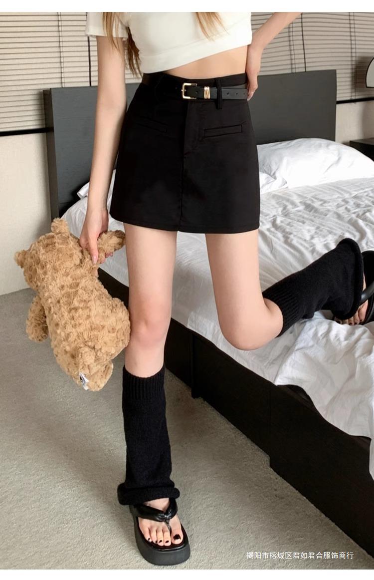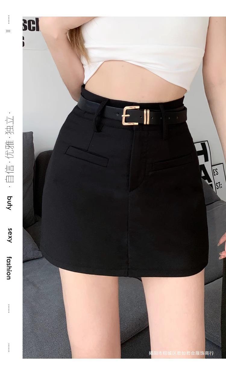 Falda de mujer, primavera 2024, nueva, estilo coreano, negra, de cintura alta, adelgazante, línea A, falda sexy a la cadera, falda Ins de moda