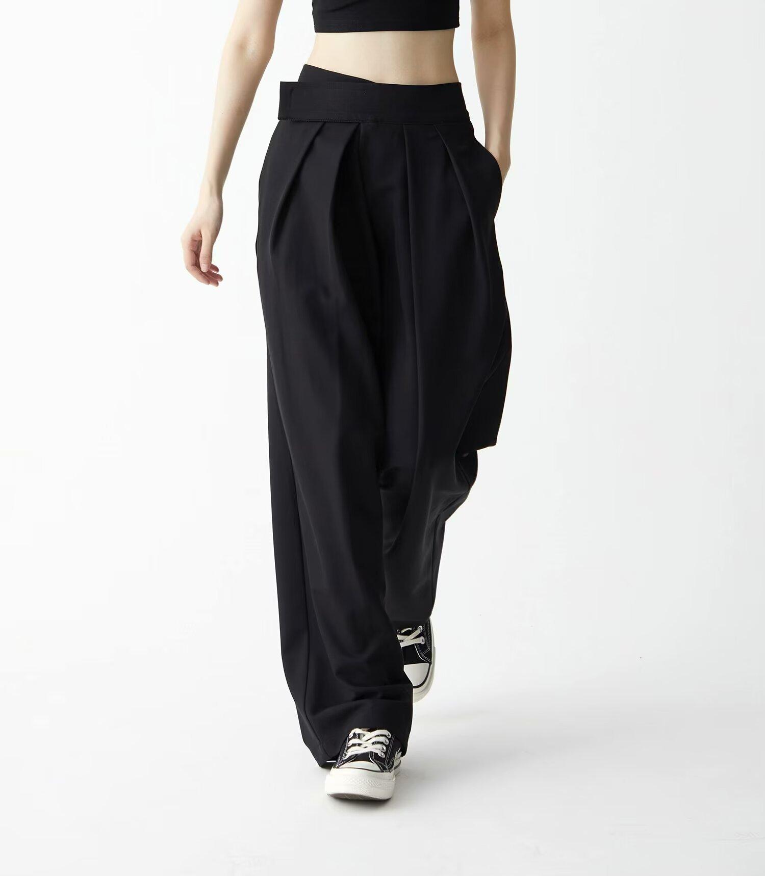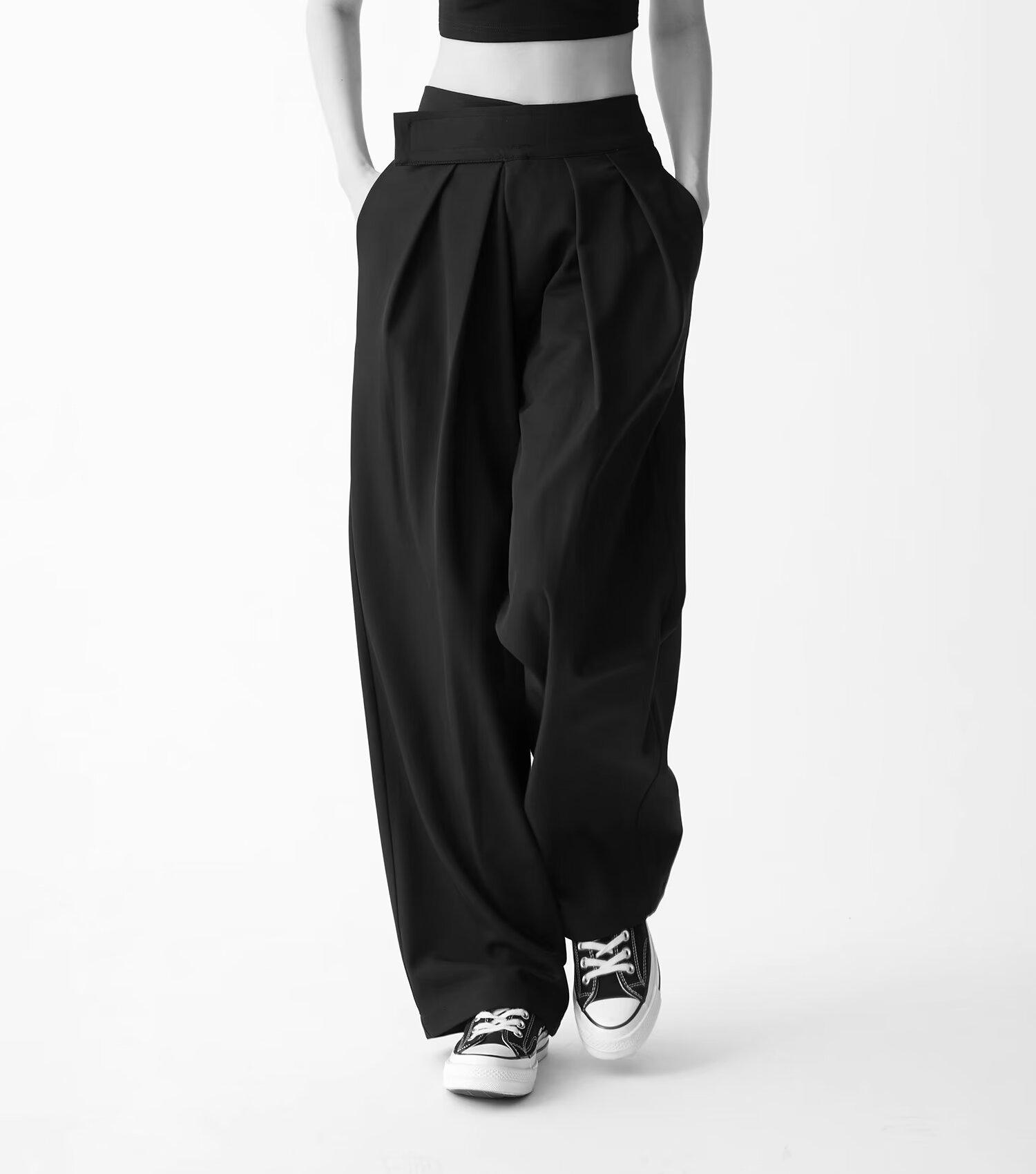 Pantalones anchos de traje negro para mujer primavera 2024 nuevas explosiones versión estrecha del sentido vertical de los pantalones casuales sueltos