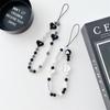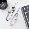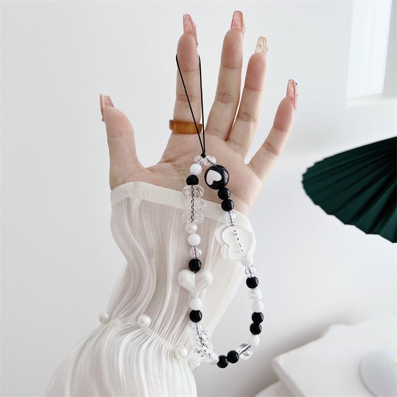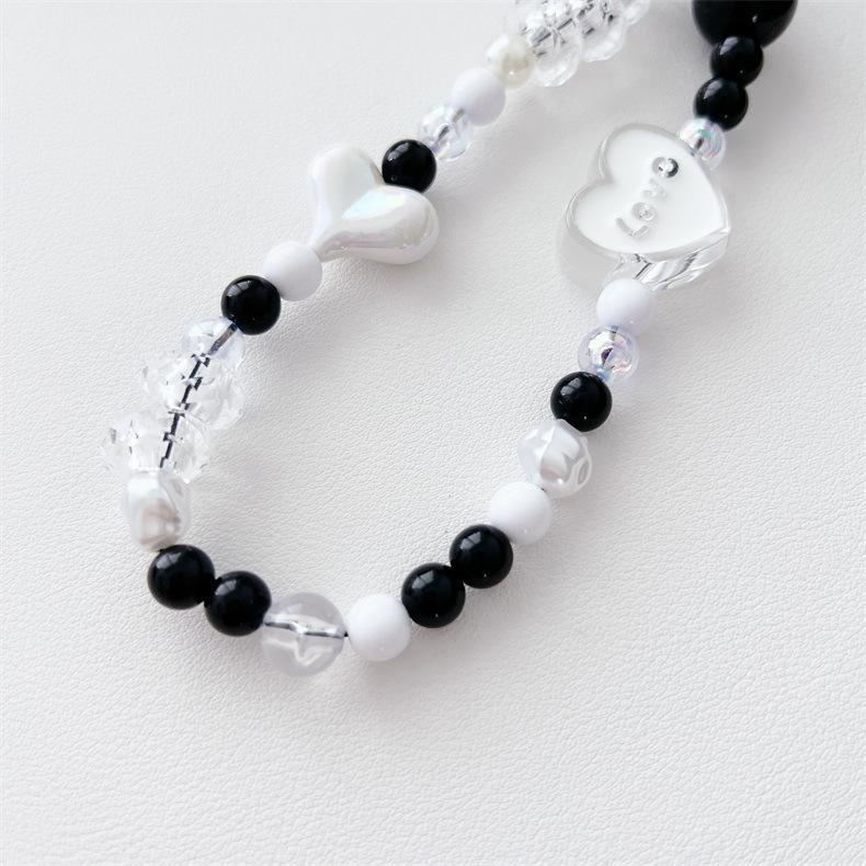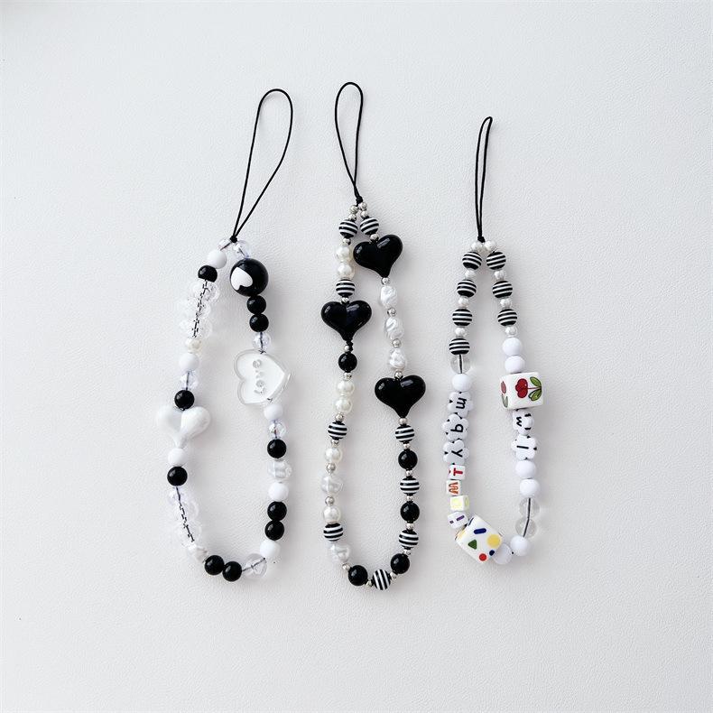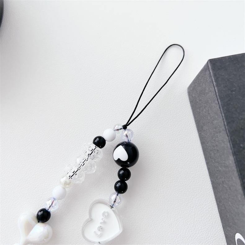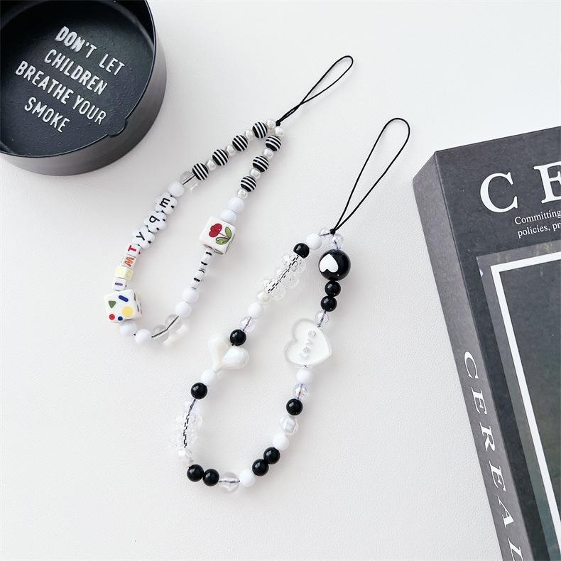 Cadena para teléfono móvil con cuentas blancas y negras estilo ins, cordón DIY con carta de amor, funda antipérdida y resistente a caídas, colgante al por mayor