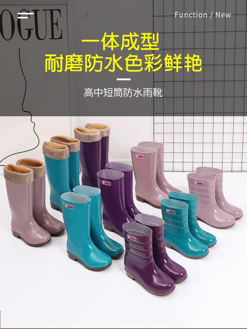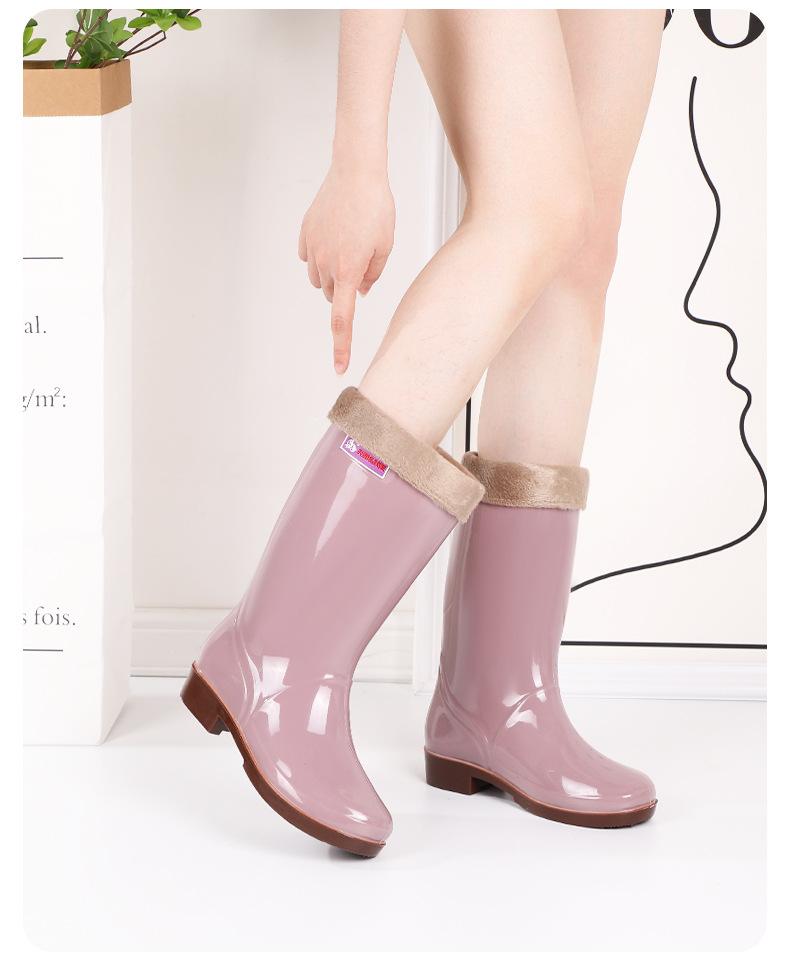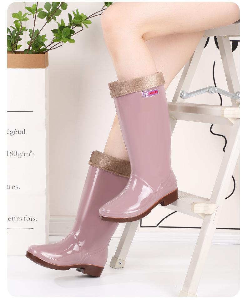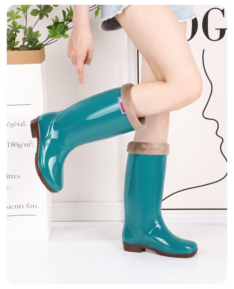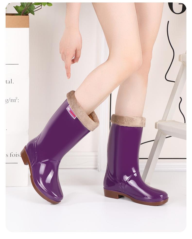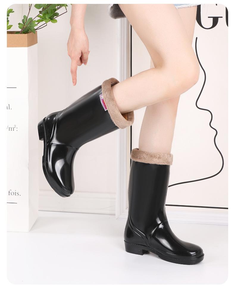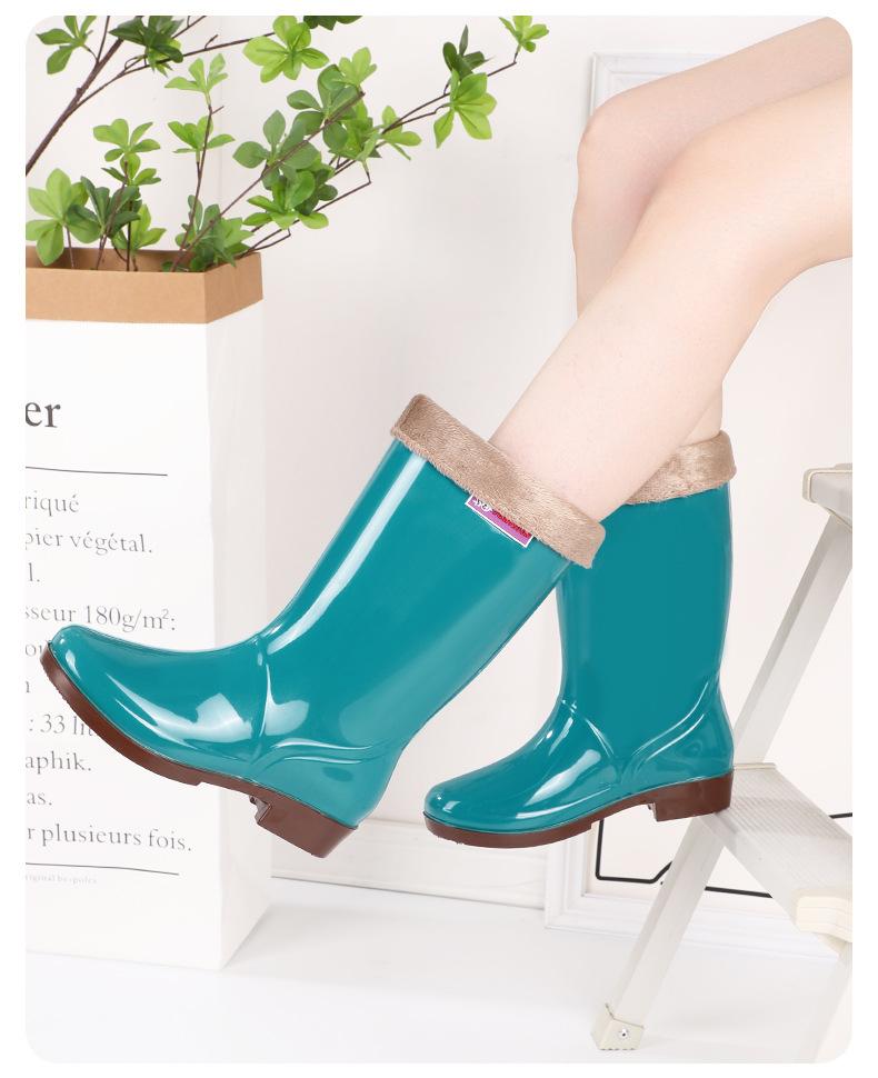 Botas de lluvia de media caña, botas de lluvia para mujer, zapatos de agua de terciopelo, antideslizantes, impermeables, de goma PVC, resistentes a ácidos y álcalis, zapatos de trabajo, botas de agua de color liso